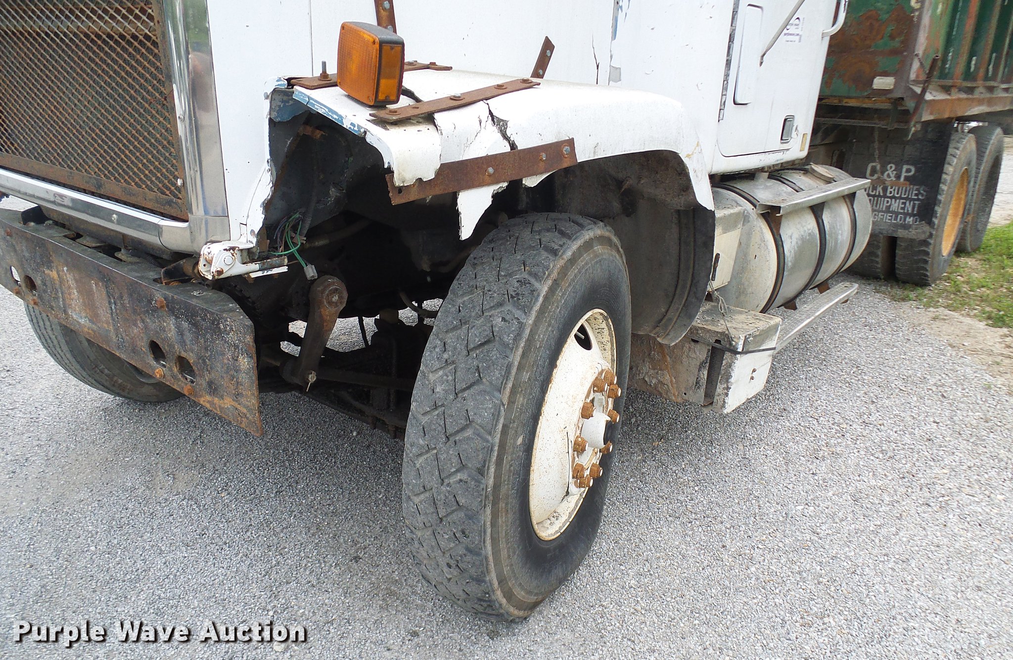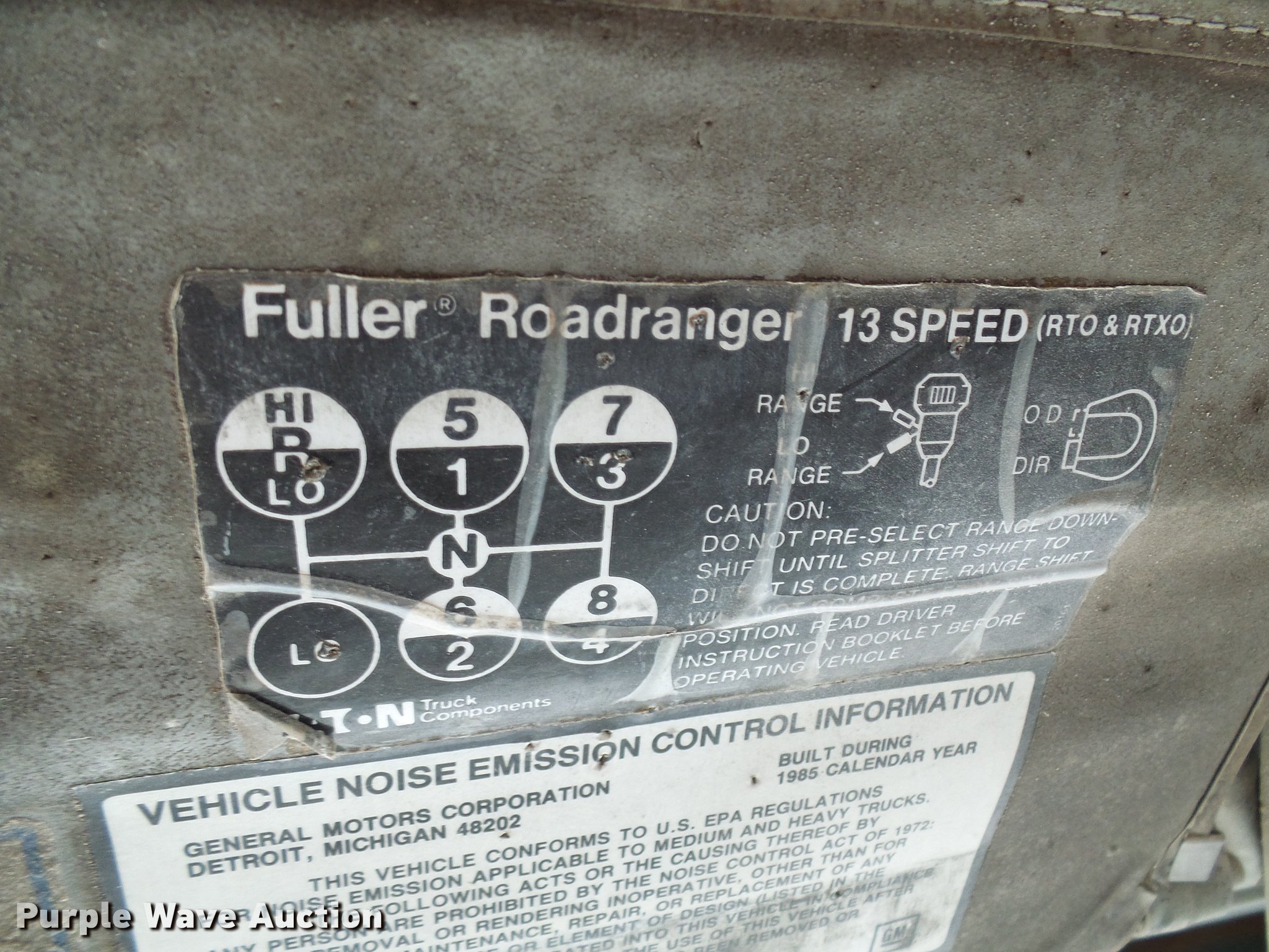 1985 GMC General dump truck. 919,005 miles on odometer, 8,139 hours on meter, Detroit Diesel six cylinder diesel engine, Eaton Fuller Road Ranger 13 speed manual transmission, Tandem axle, Inter-axle differential lock, Heat, Air suspension seat, PTO, Heil 13'L x 8'W steel dump bed 48" side height, Single ram hoist, Manual operated end gate, Spring suspension, Air brakes, 11R24.5 tires, GVWR 57,500 lbs, Unit# 02-0021. Missouri title. Title distribution may be delayed up to 30 days from verification of funds. Complete VIN could not be found on the asset. This asset may not pass a VIN inspection outside of the state of Missouri. Consult your local DMV with registration questions prior to bidding. 1GTT9F4J1FV610963. Emery Sapp & Sons. 16200 MO-37 Bus. Cassville, MO 65625