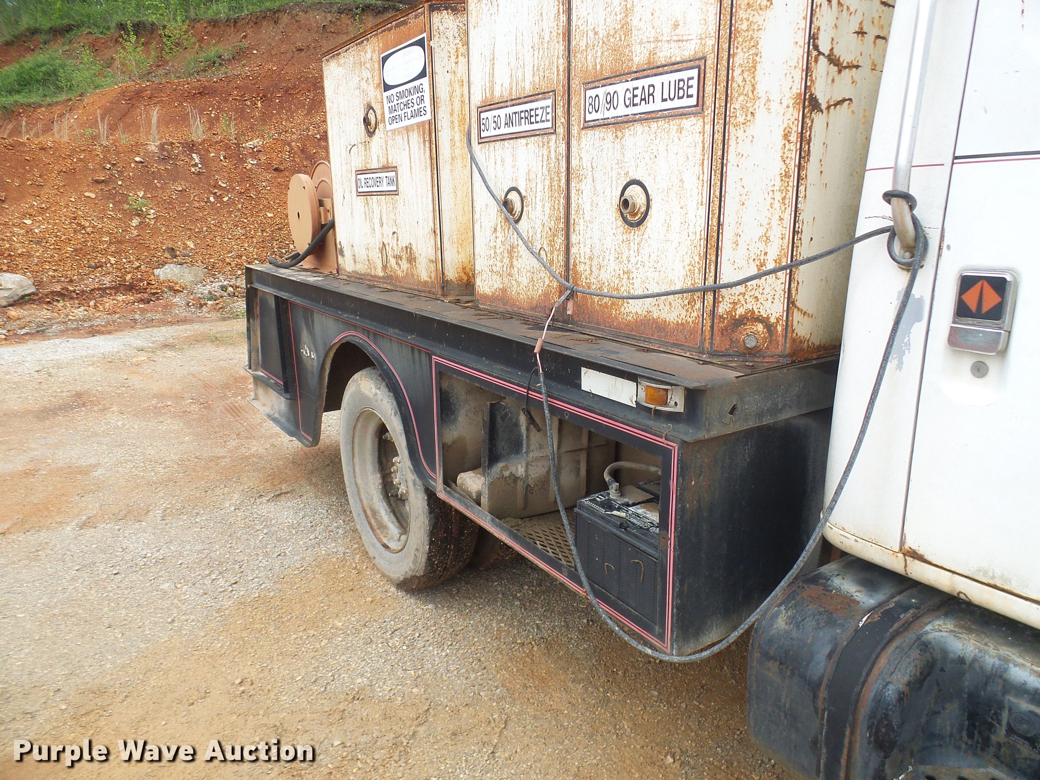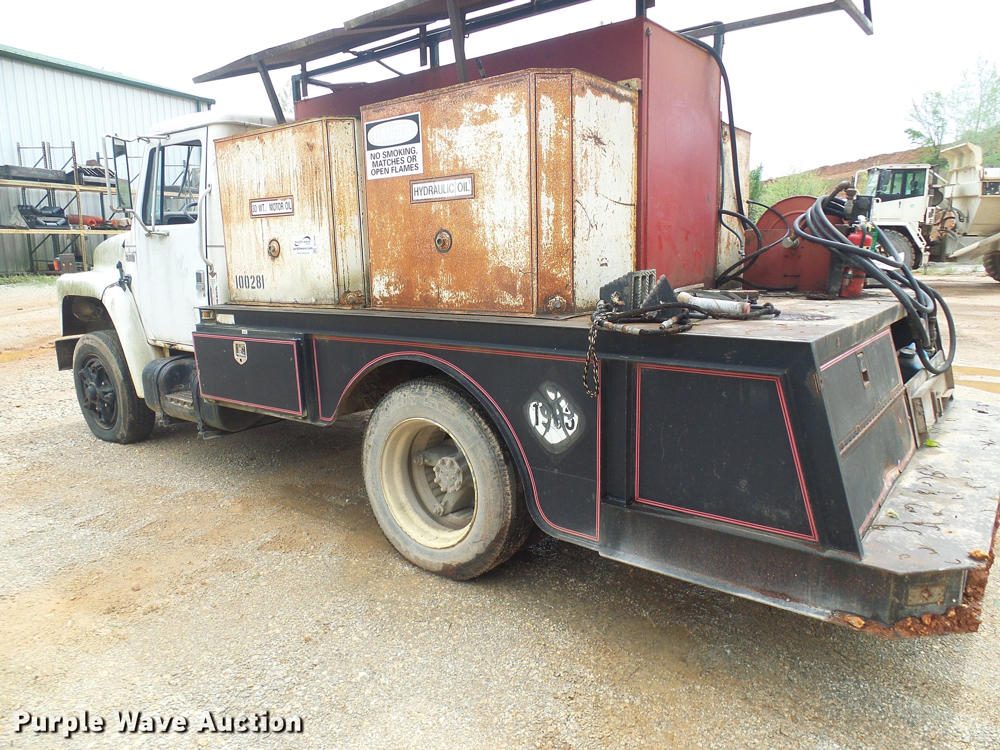 Purple Wave is selling a used Fuel Truck in Missouri. This item is a 1988 International 1754 tank truck with the following: 263,221 miles on odometer, 5.9L L6 diesel engine, Five speed manual transmission, Single axle, Heat, Suspension seat, 11'L tank, (5) compartments, Hose reel, Spring suspension, Hydraulic brakes, 255/70R22.5 tires, Unit# 2-56