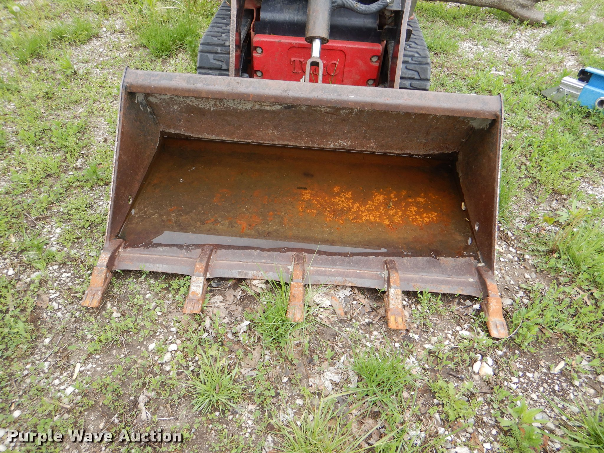 Toro Dingo TX420 compact utility loader. 807 hours on meter, Kohler gas engine, Bradco bucket 42"W, Weld-on cutting edge, (5) weld-on teeth, Hydraulic remote set, Sulkey, 6"W rubber tracks, Left motor removed, Serial 260000590. Lawrence, KS 66044