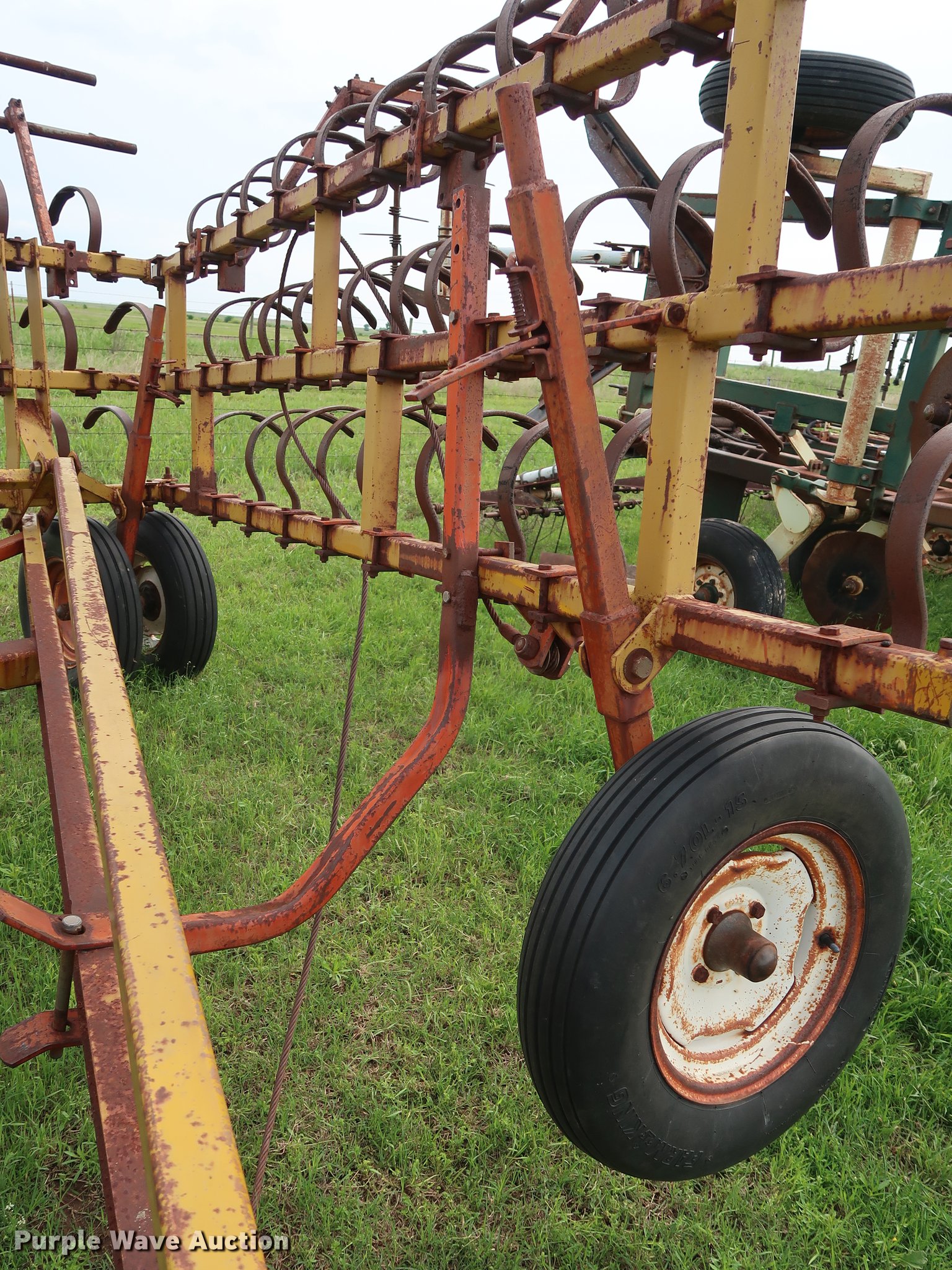 Purple Wave is selling a used Tillage Other in Oklahoma. This item is a Kent 336 hydra-cultivator spring tooth harrow with the following: (3) shank rows, Two bar spike tooth harrow, Hydraulic lift, 6.70L-15 tires, 7.60-15 tires, Serial 6956