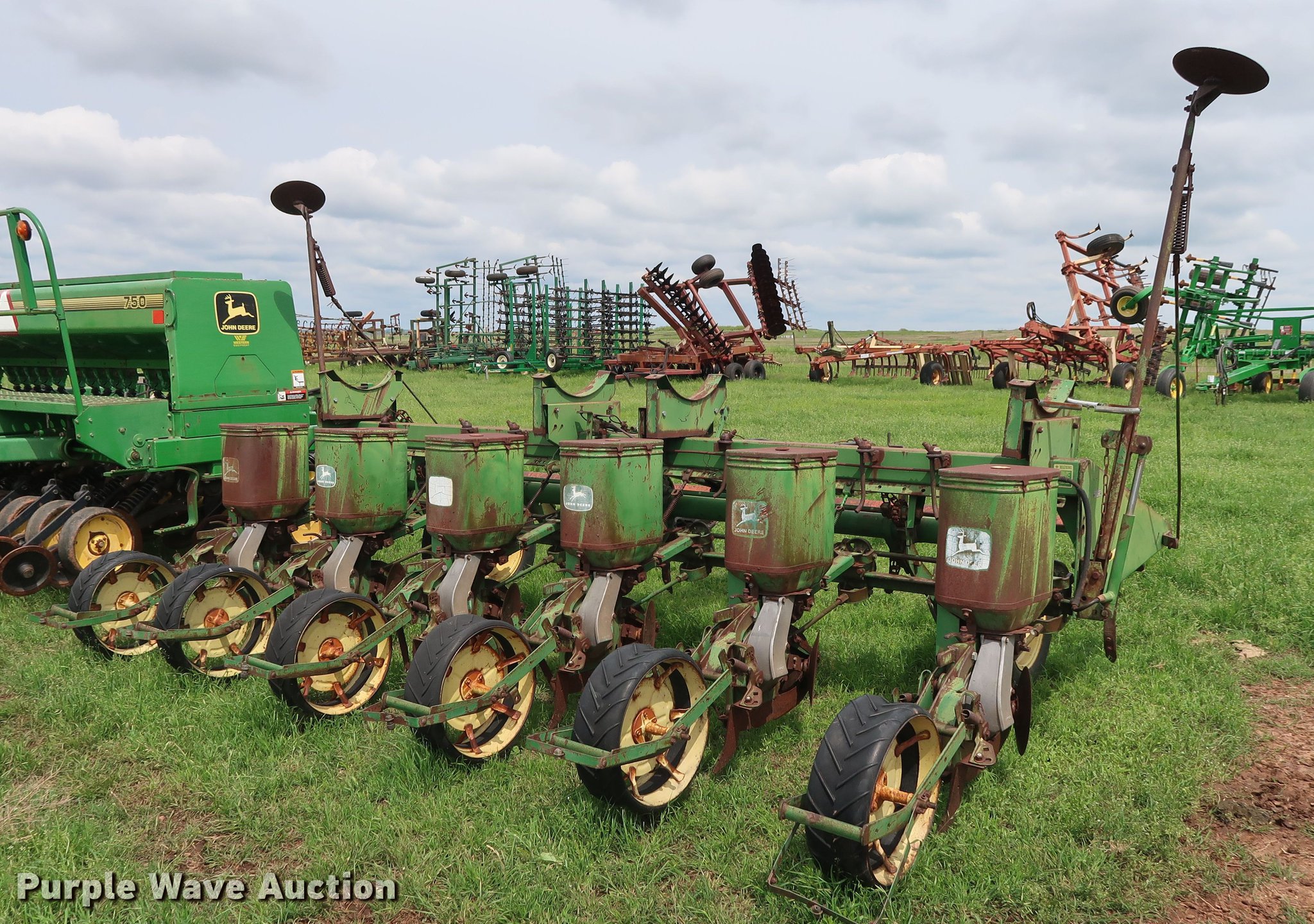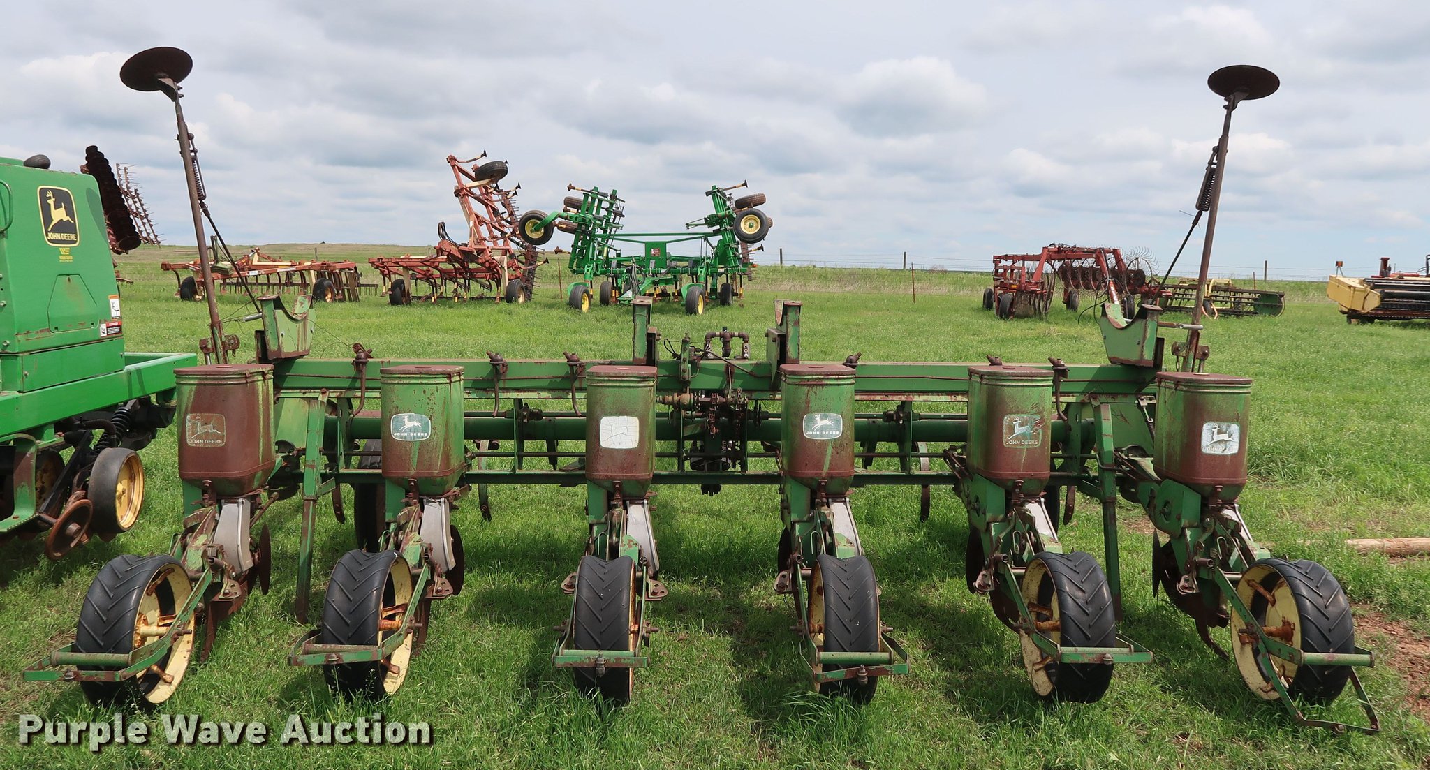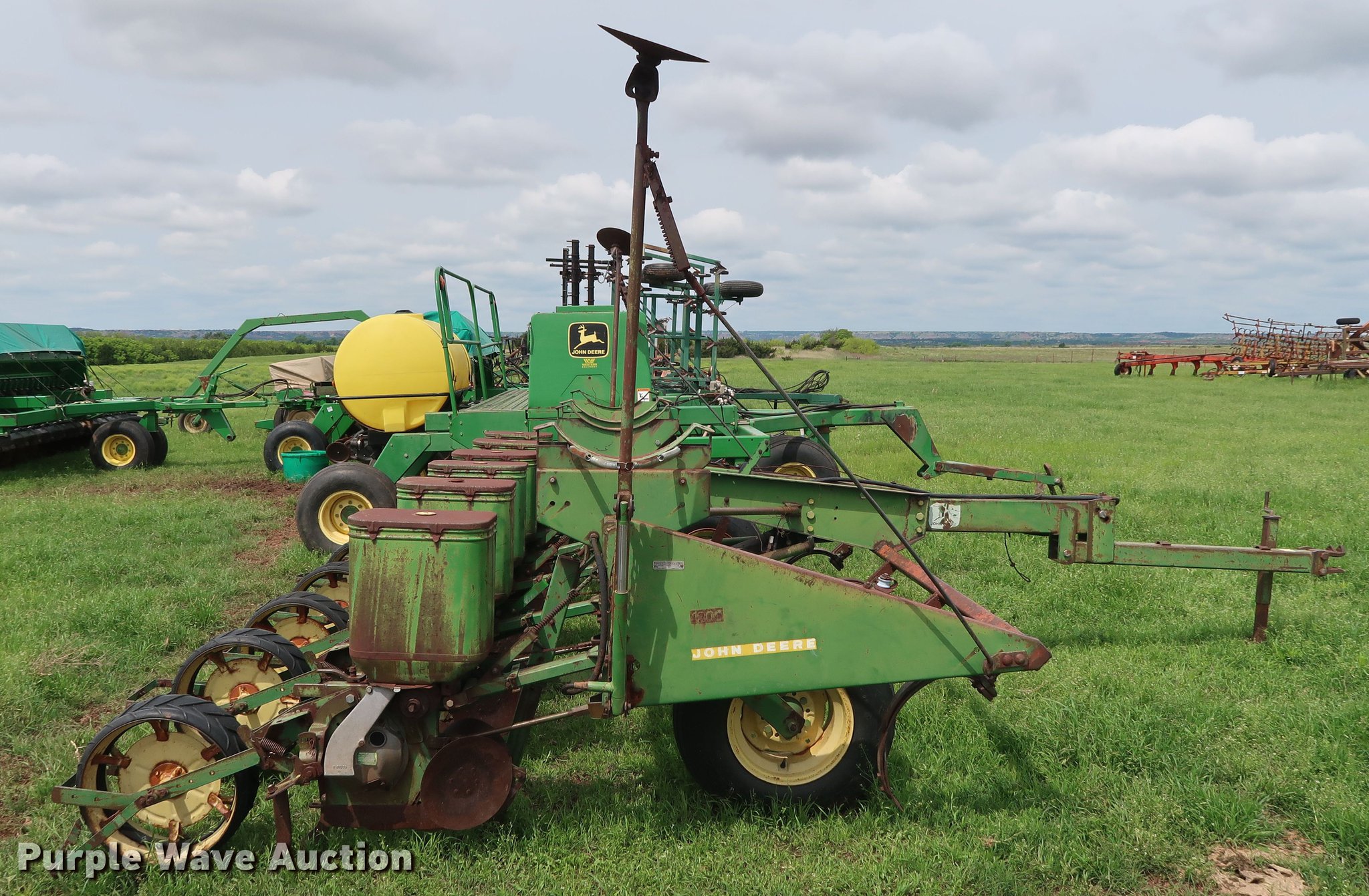 Purple Wave is selling a used Planter in Oklahoma. This item is a John Deere 1300 planter with the following: 15'W, Six row units, 30" row spacing, Marker arms, Individual seed hoppers, Ground meter drive, Double disk openers, Single rubber closing system, (2) 11L-15 transport tires, Serial 011236B