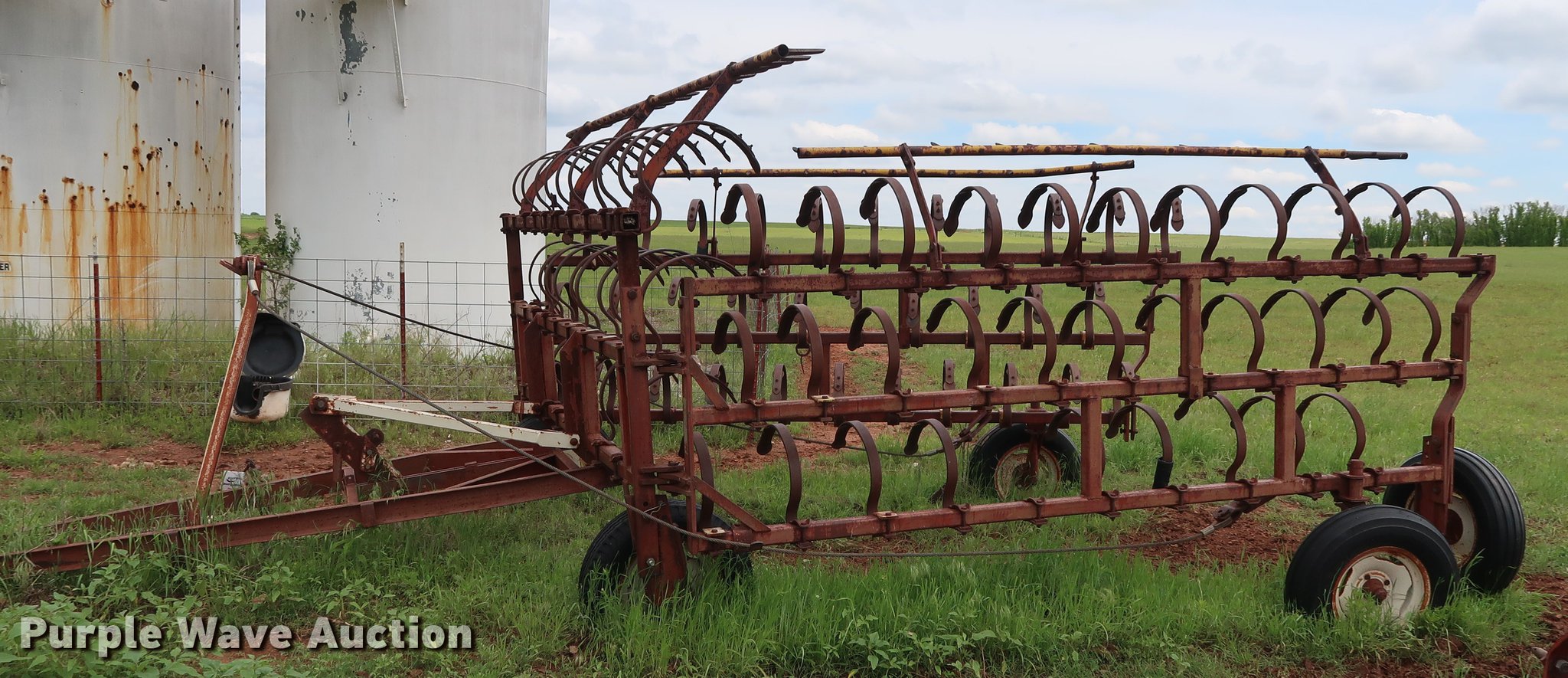 Purple Wave is selling a used Tillage Other in Oklahoma. This item is a Noble Culti-Matic spring tooth harrow with the following: 34'W, Three bar shank rows, One bar spike tooth harrow, Hydraulic lift, 9.5-15 tires, Hydraulic cylinder and lines missing