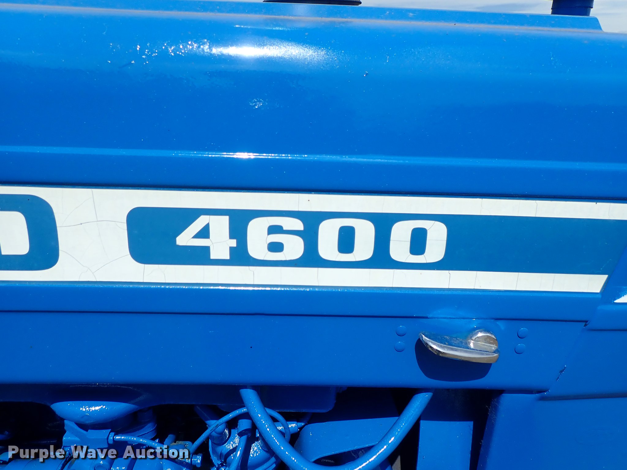 Purple Wave is selling a used Tractor in Kansas. This item is a Ford 4600 tractor with the following: 1,862 hours on meter, Ford 3.3L three cylinder gas engine, Manual transmission, 8F-2R gears, Work lights, Three point, 540 PTO, (2) rear hydraulic remote sets, 7.50-16 front tires, 16.9-30 rear tires