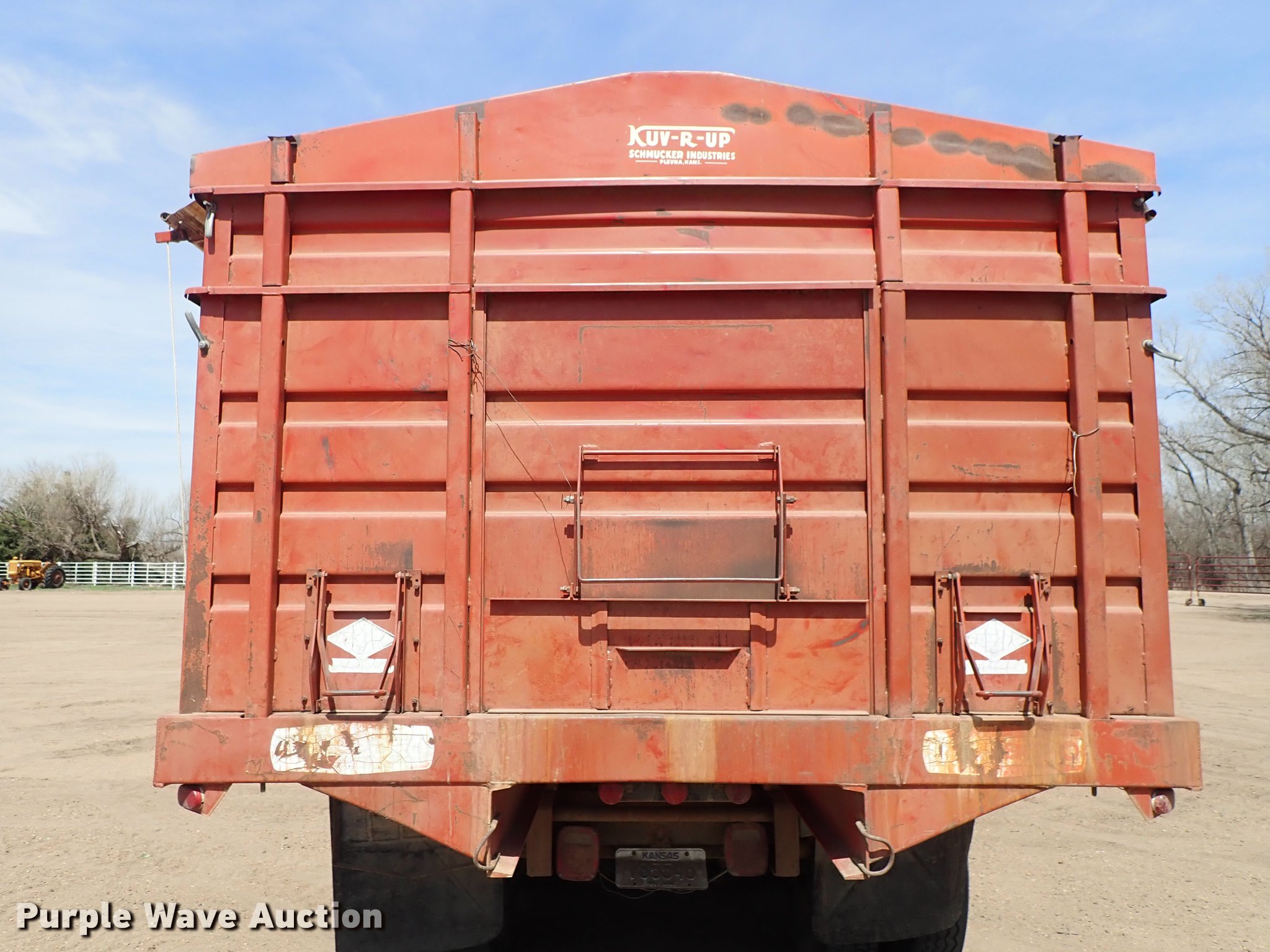 Purple Wave is selling a used Grain Truck in Kansas. This item is a 1976 Chevrolet C65 grain truck with the following: 81,536 miles on odometer, Gas engine, Five speed manual transmission, Two speed rear end, Tandem axle, AC and heat, PTO, Hillsboro grain bed, 20'L x 92"W, 48" side height, Hoist, Spring suspension, Air brakes, 10.00R20 tires