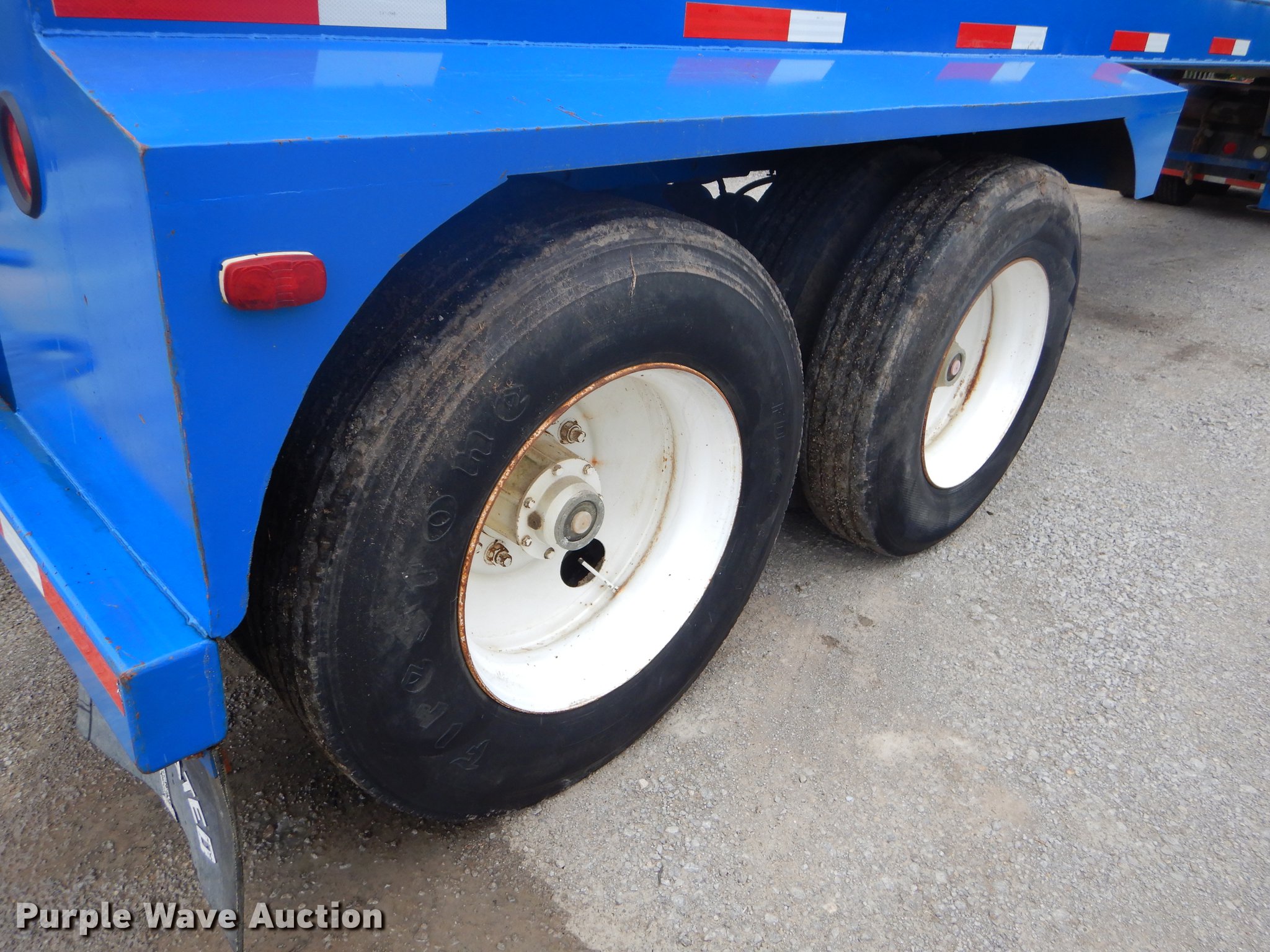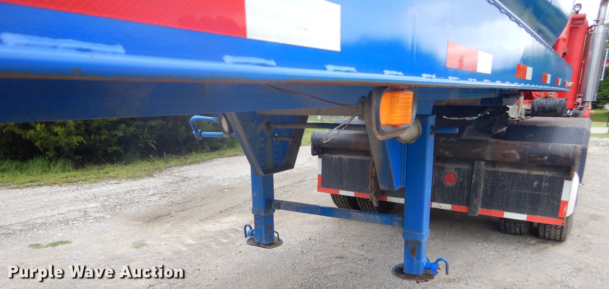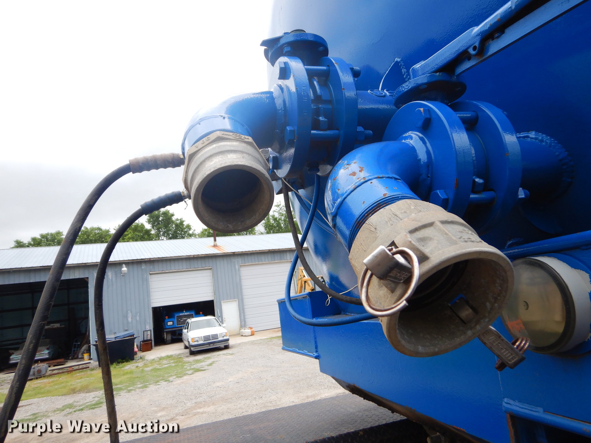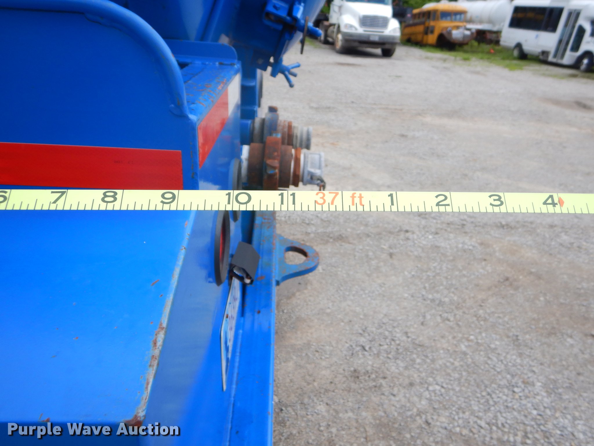 Purple Wave is selling a used Tank Trailer in Oklahoma. This item is a 1980 Tiger tank trailer with the following: 37'L x 8'W overall, 6' diameter steel tank, (4) baffles, 180 barrel capacity, 0.250" thickness, Tank coating, Rebarreled in 2010, Certification no. 10078, Serial 5523, (2) 3.5" outlet valves, (2) 20.5"W manways/manholes, 15'L hose, 20'L hose, Two speed landing gear, Spring suspension, Air brakes, Tandem axle, Steel wheels, 11R24.5 tires