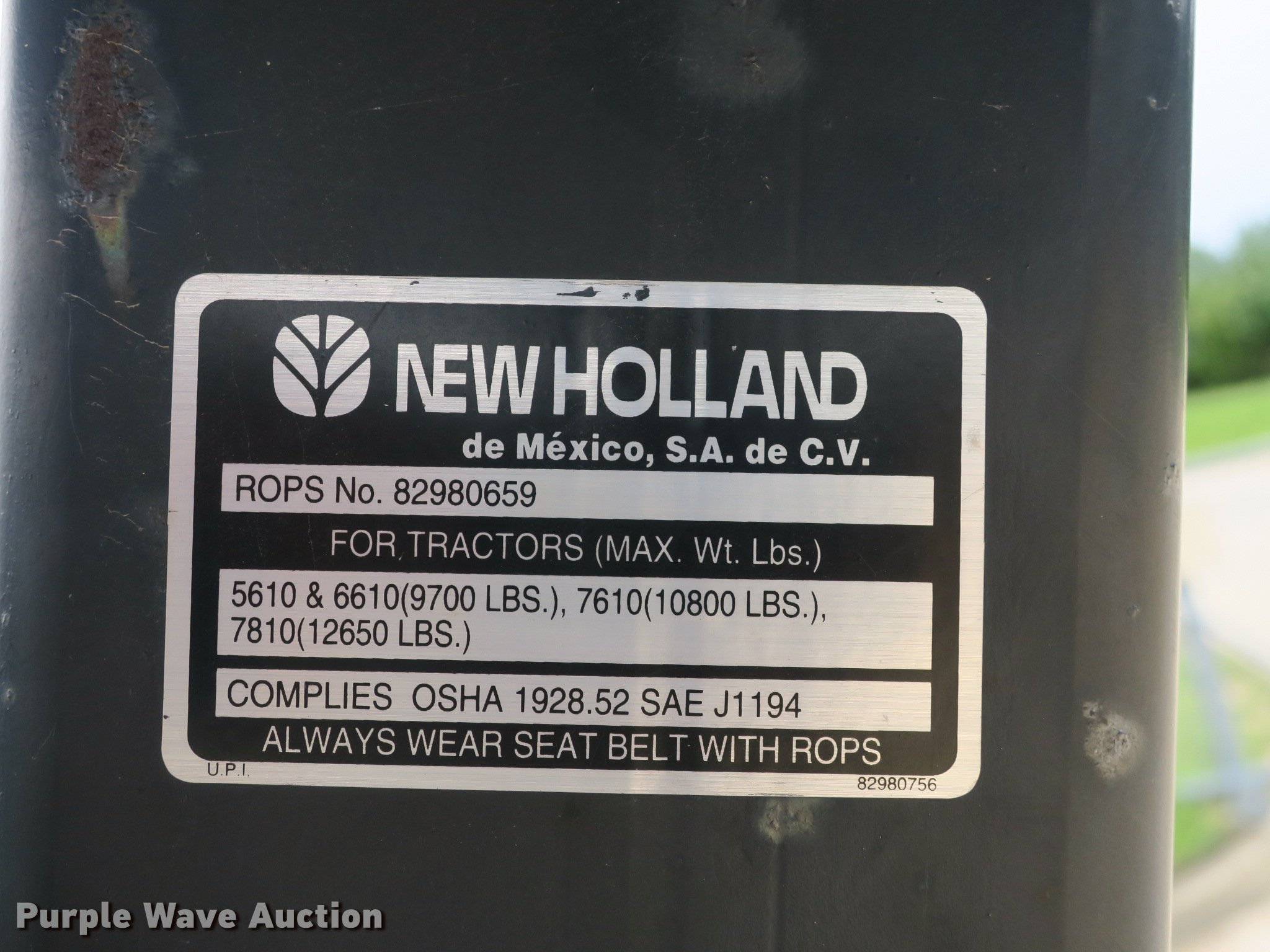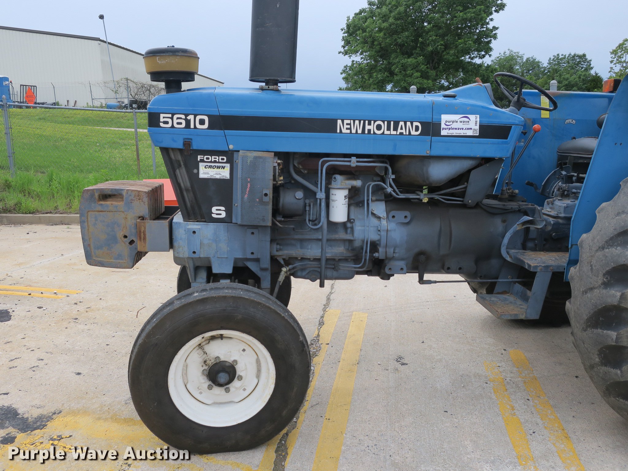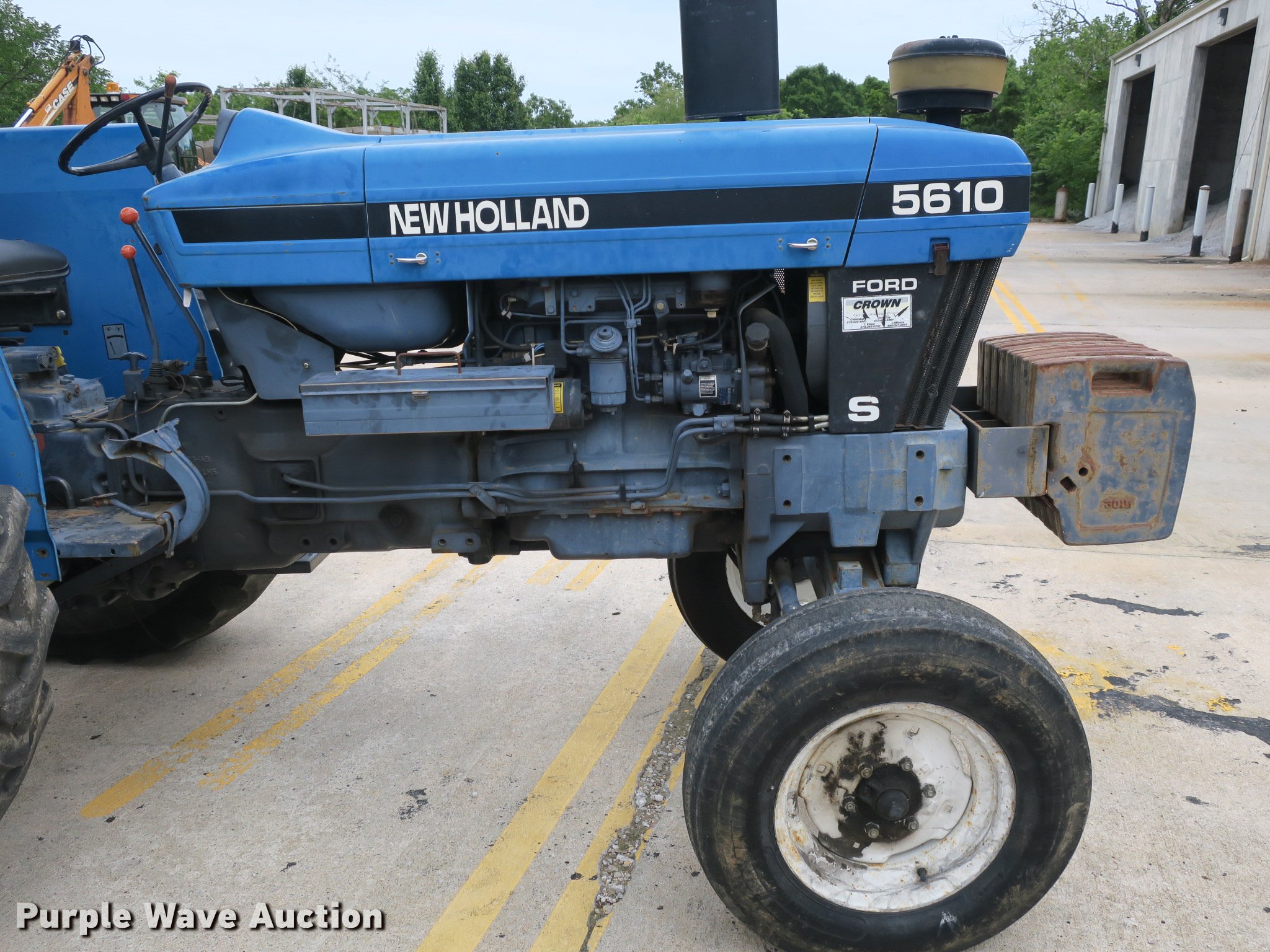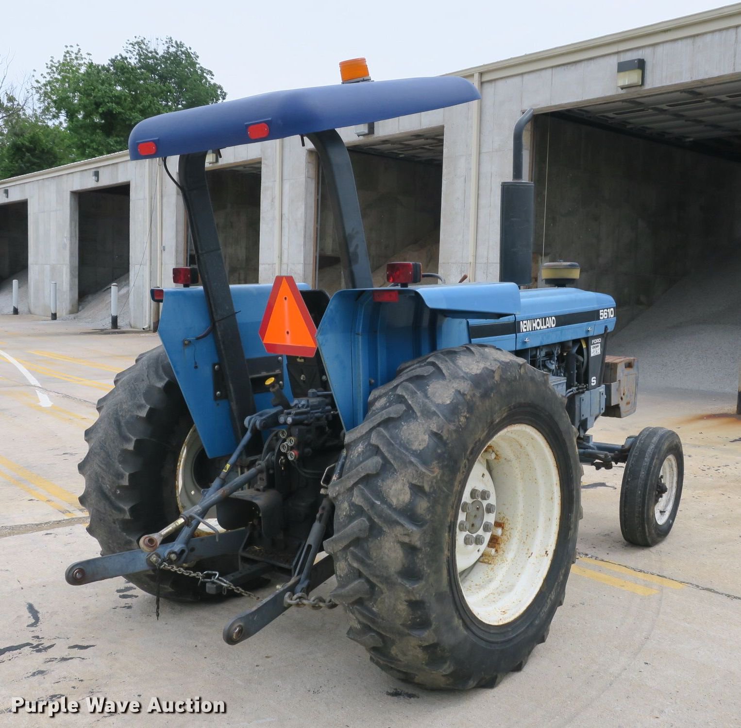 Purple Wave is selling a used Tractor in Missouri. This item is a 1998 New Holland 5610 tractor with the following: 1,066 hours on meter, New Holland EA707106 four cylinder engine, Manual transmission, 8F-8R gears, Differential lock, ROPS canopy, Three point, Top link, 540 PTO, (2) rear hydraulic remotes, (8) suitcase weights, 7.50-16SL front tires, 16.9-30 calcium filled rear tires, Serial 308493M