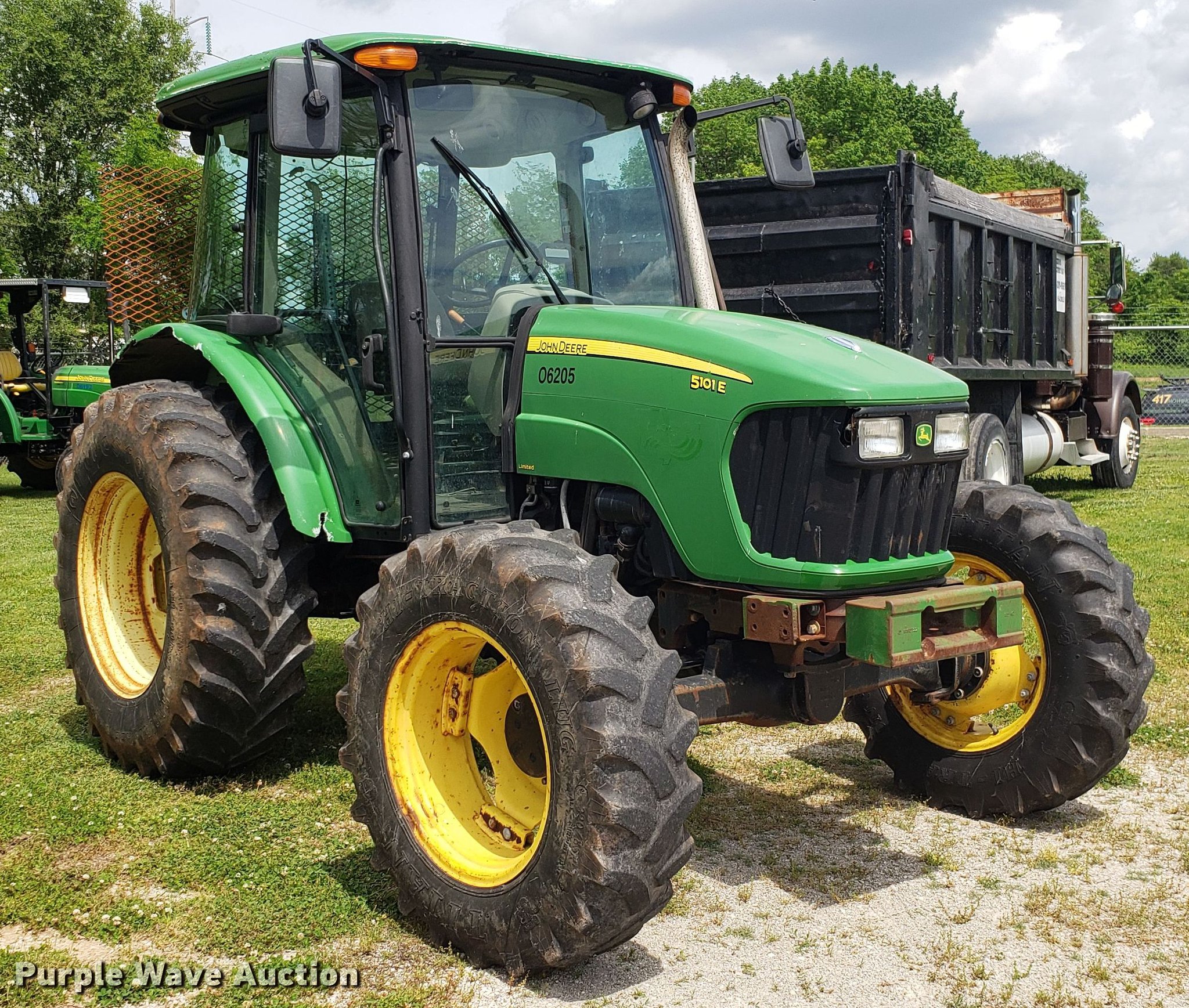 Purple Wave is selling a used Tractor in Missouri. This item is a 2009 John Deere 5101E MFWD tractor with the following: 4,320 hours on meter, John Deere four cylinder diesel engine, Powershift transmission, 12F-12R gears, Left-hand reverser, AC and heat, Three point, 540 PTO, (3) rear hydraulic remote sets, 320/85R24 front tires, 420/90R30 rear tires, Non-operational AC, Transmission issues, Steering issues, Serial LV5101E160775, MODOT ID 06205