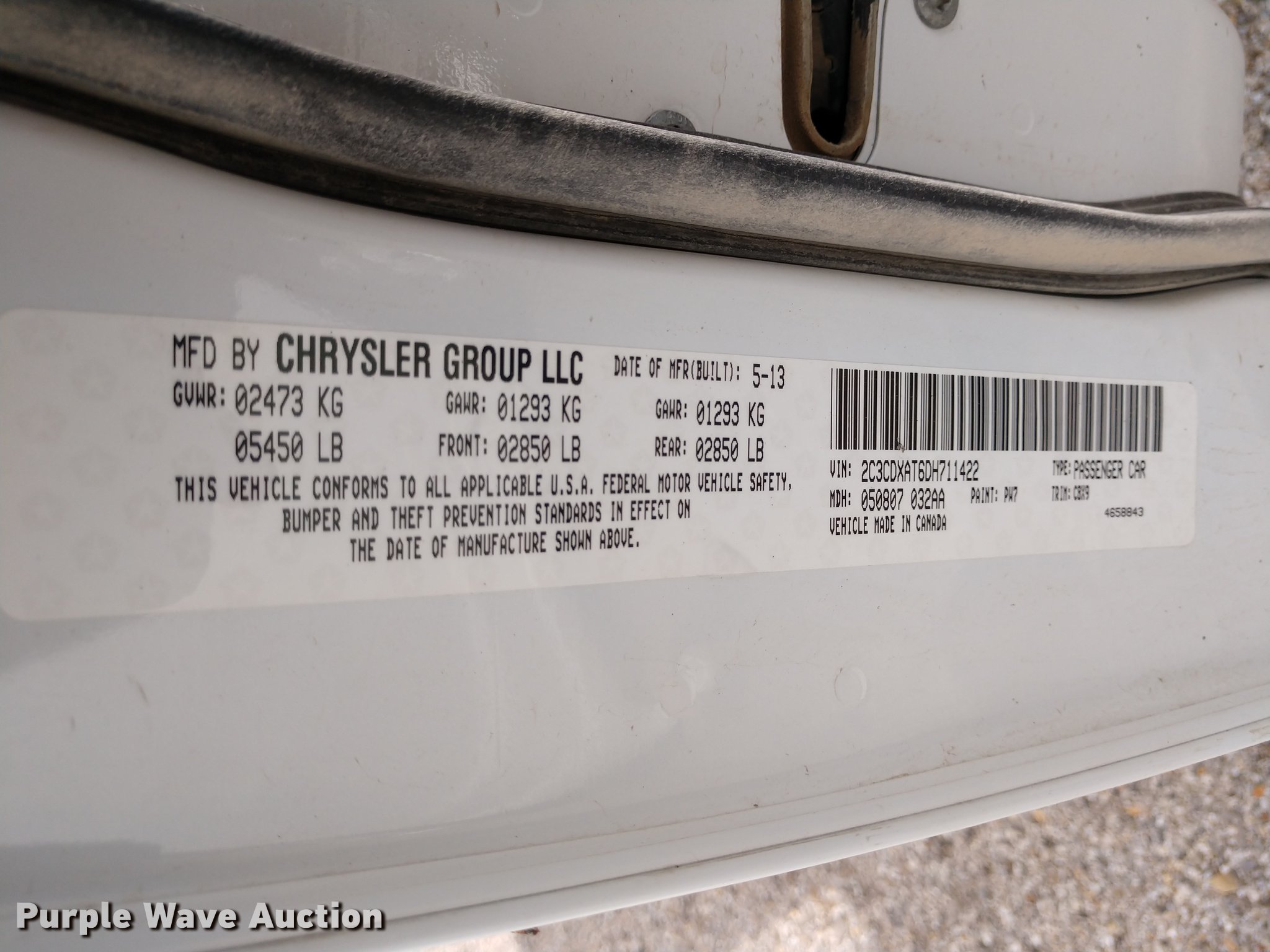 Purple Wave is selling a used Passenger Vehicle in Kansas. This item is a 2013 Dodge Charger Police with the following: 109,264 miles on odometer, 5.7L V8 OHV 16V gas engine, Automatic transmission, AC and heat, Cruise, Power windows and locks, 225/60R18 tires, Engine issues, Front end issue, loose
