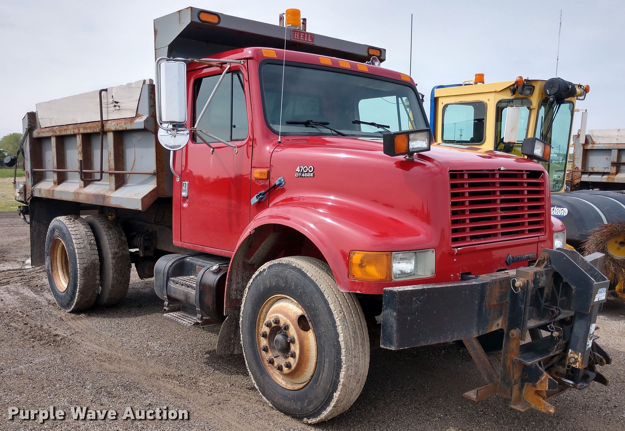 Purple Wave is selling a used Construction Dump Truck in Kansas. This item is a 1999 International 4700 dump truck with the following: 108,301 miles on odometer, Miles may vary, still in use, International DT466E 7.6L L6 diesel engine, Five speed manual transmission, Two speed rear end, Single axle, AC and heat, Cruise, Air suspension seat, PTO, Steel dump bed, Single ram hoist, Air operated end gate, Henderson tailgate spreader, Spring suspension, Air brakes, 11R22.5 tires, Rear of frame cracked, Unit# 16520
