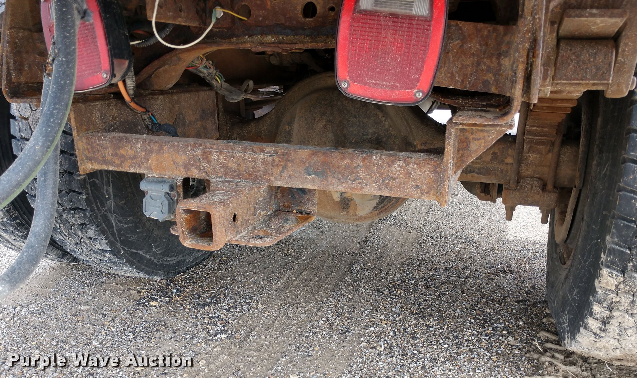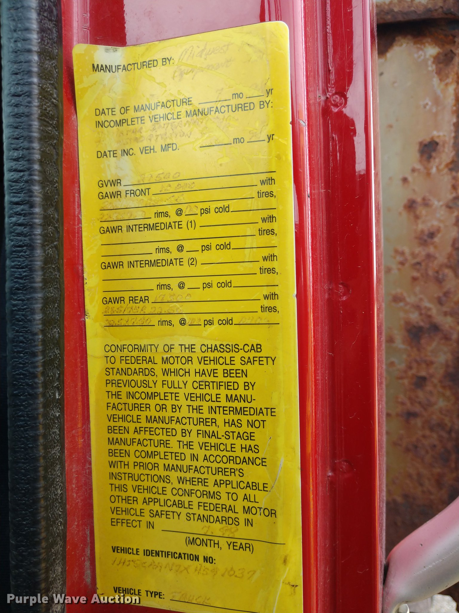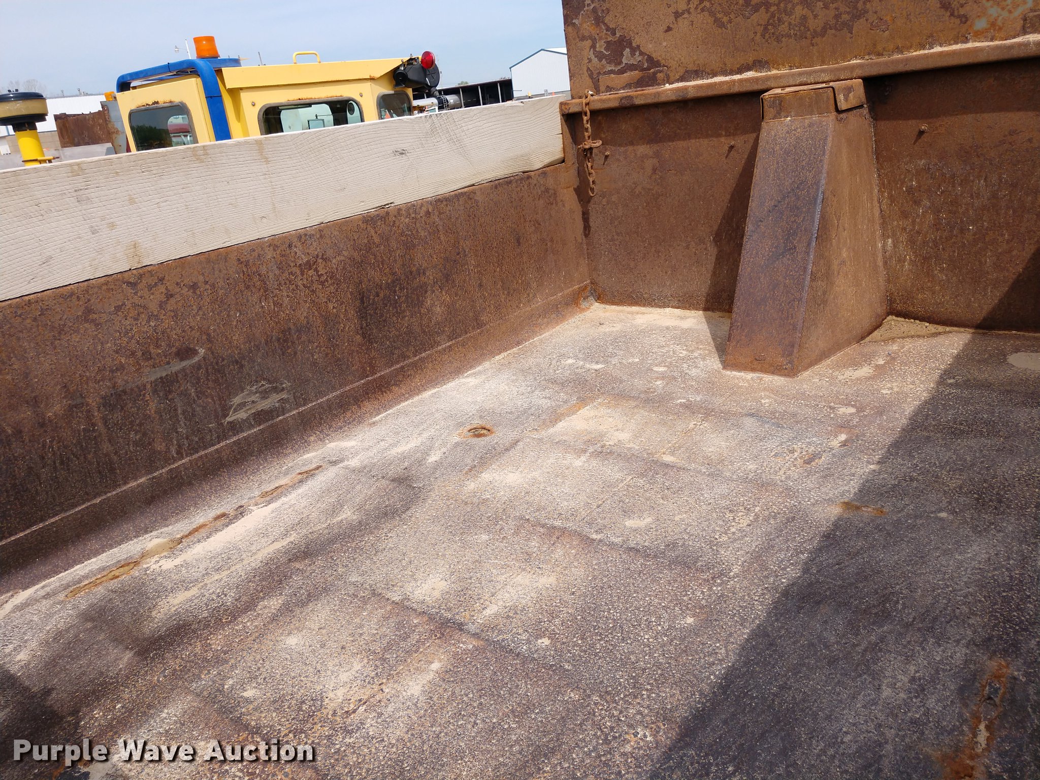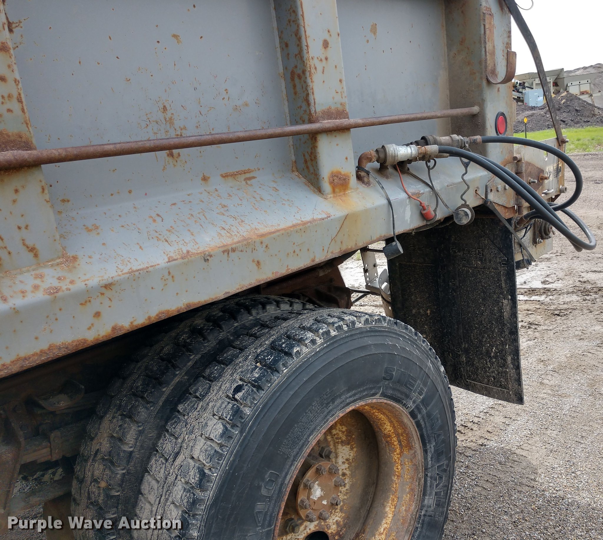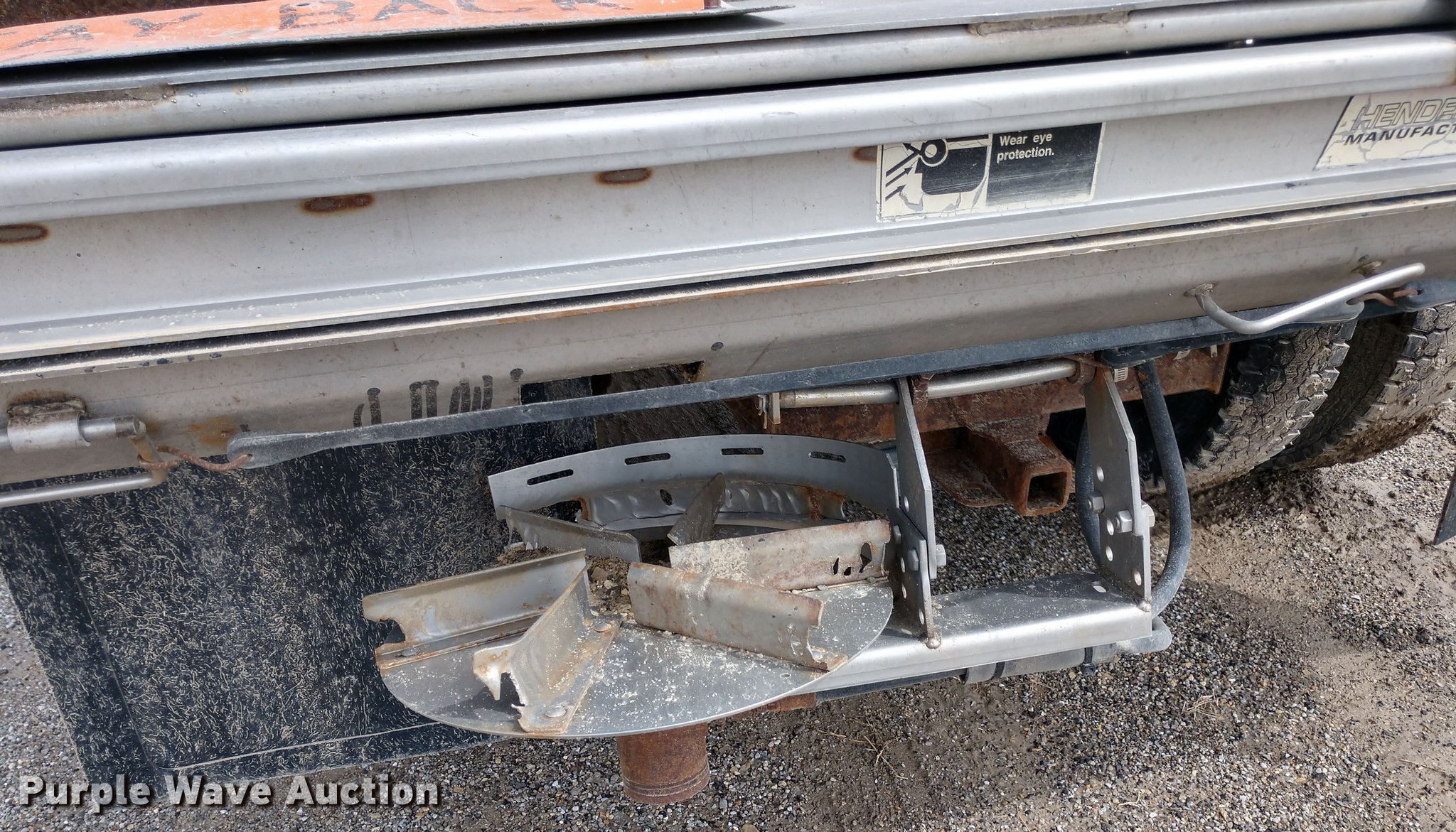 1999 International 4700 dump truck. 108,301 miles on odometer Miles may vary, still in use, International DT466E 7.6L L6 diesel engine, Five speed manual transmission, Two speed rear end, Single axle, AC and heat, Cruise, Air suspension seat, PTO, Steel dump bed Single ram hoist, Air operated end gate, Henderson tailgate spreader, Spring suspension, Air brakes, 11R22.5 tires, Rear of frame cracked, Unit# 16520. Kansas title. 1HTSCAAN7XH591037. Butler County. El Dorado, KS 67042