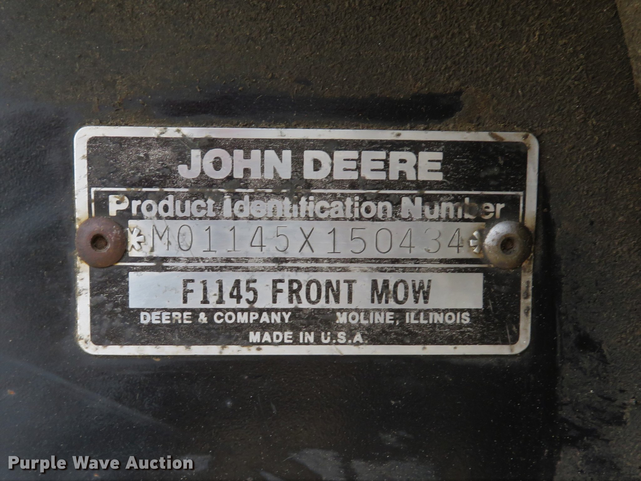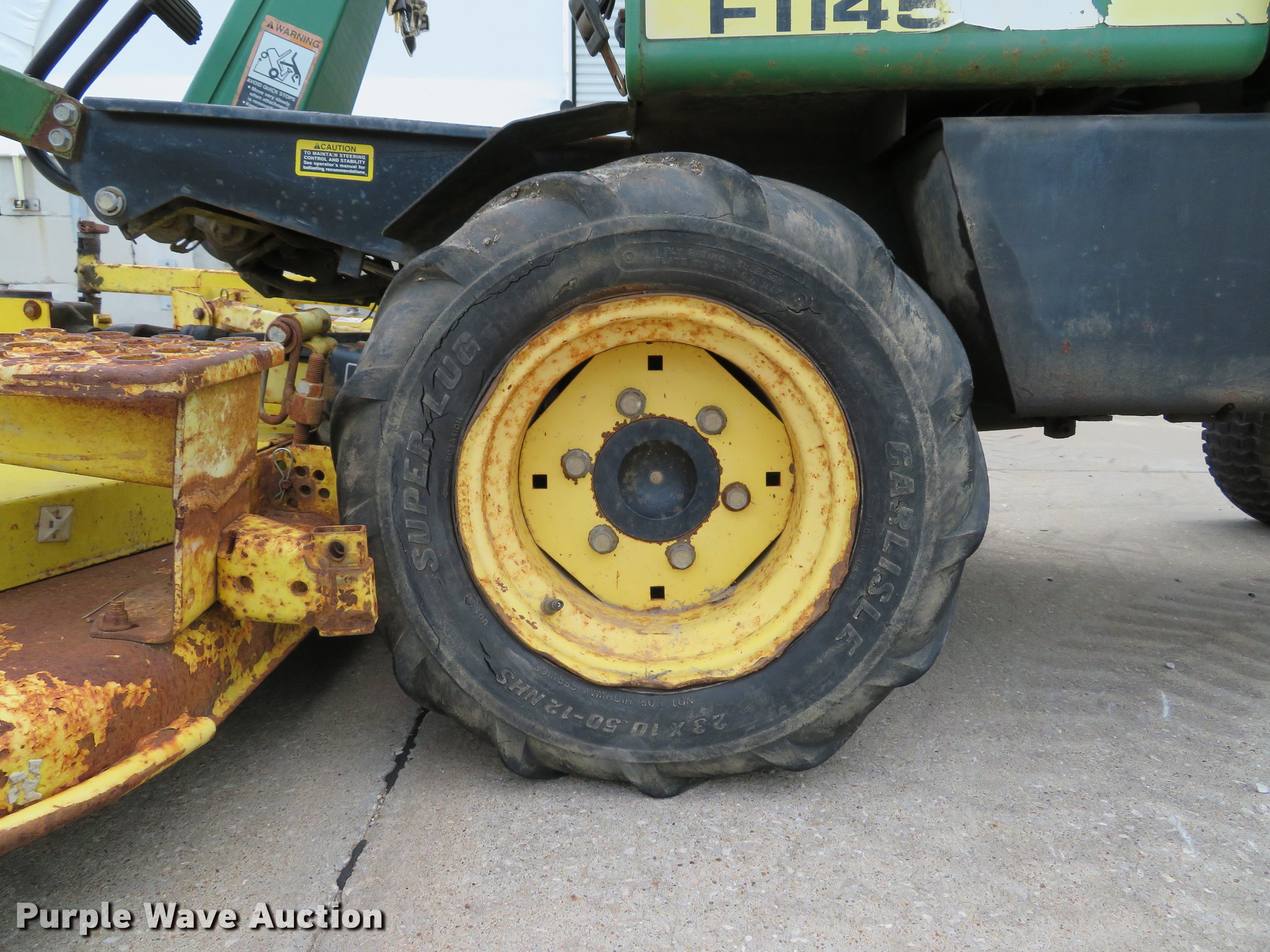 Purple Wave is selling a used Commercial Turf Mower in Missouri. This item is a 1996 John Deere F1145 lawn mower with the following: 3,495 hours on meter, 72" cut, Yanmar 3012D002 three diesel engine, 28 HP, Hydrostatic transmission, Four wheel drive, 23x10.50-12 front tires, 18x8.50-8 rear tires, Dead battery, Serial M01145X150434