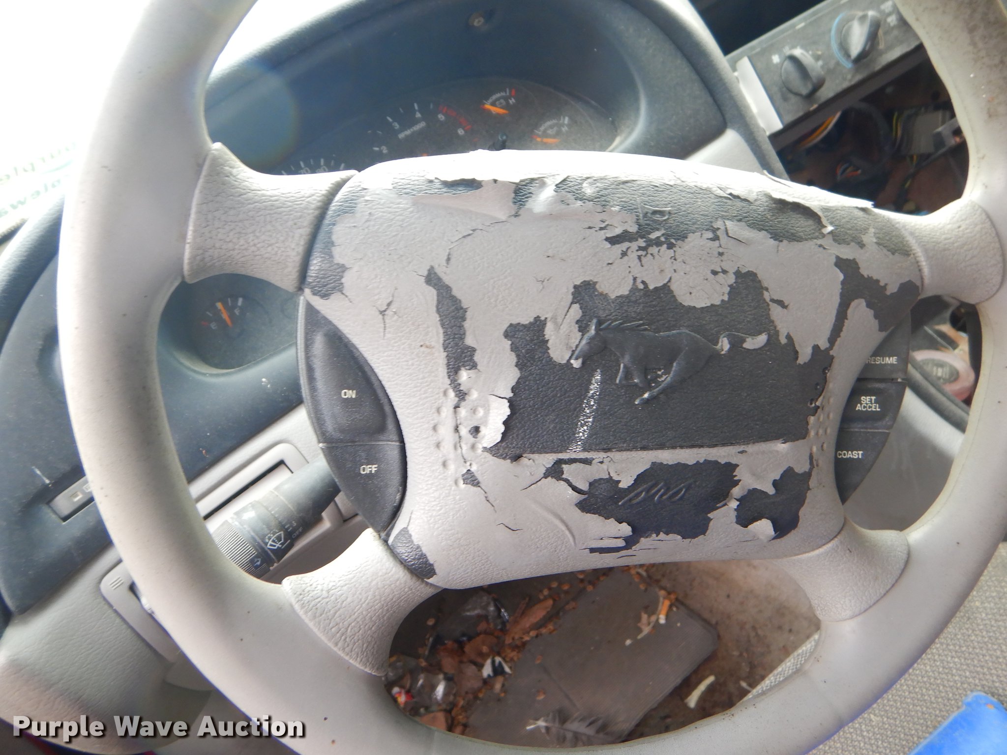 Purple Wave is selling a used Passenger Vehicle in Oklahoma. This item is a 1998 Ford Mustang with the following: 170,694 miles on odometer, 3.8L V6 OHV 12V gas engine, Automatic transmission, AC and heat, Cruise, Power windows and locks, 215/55R16 tires, Cracked windshield, Non-operational unit
