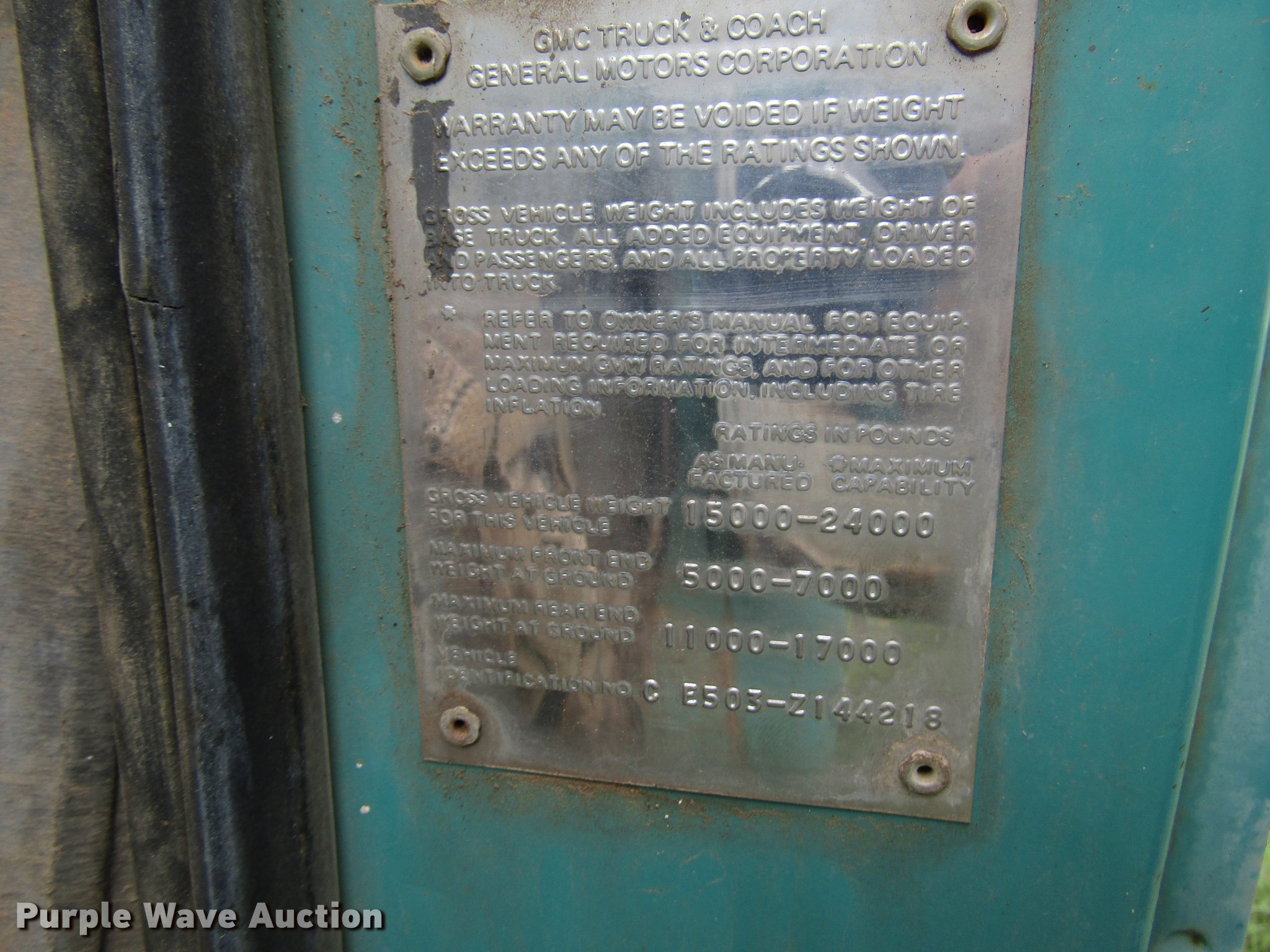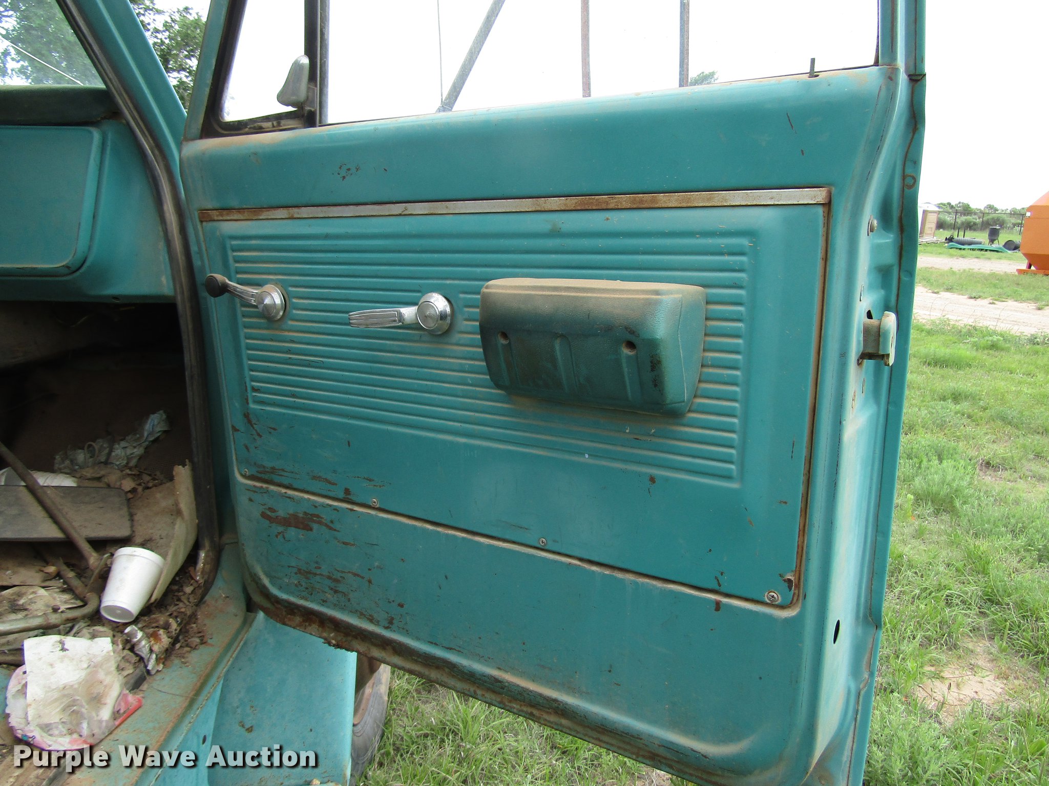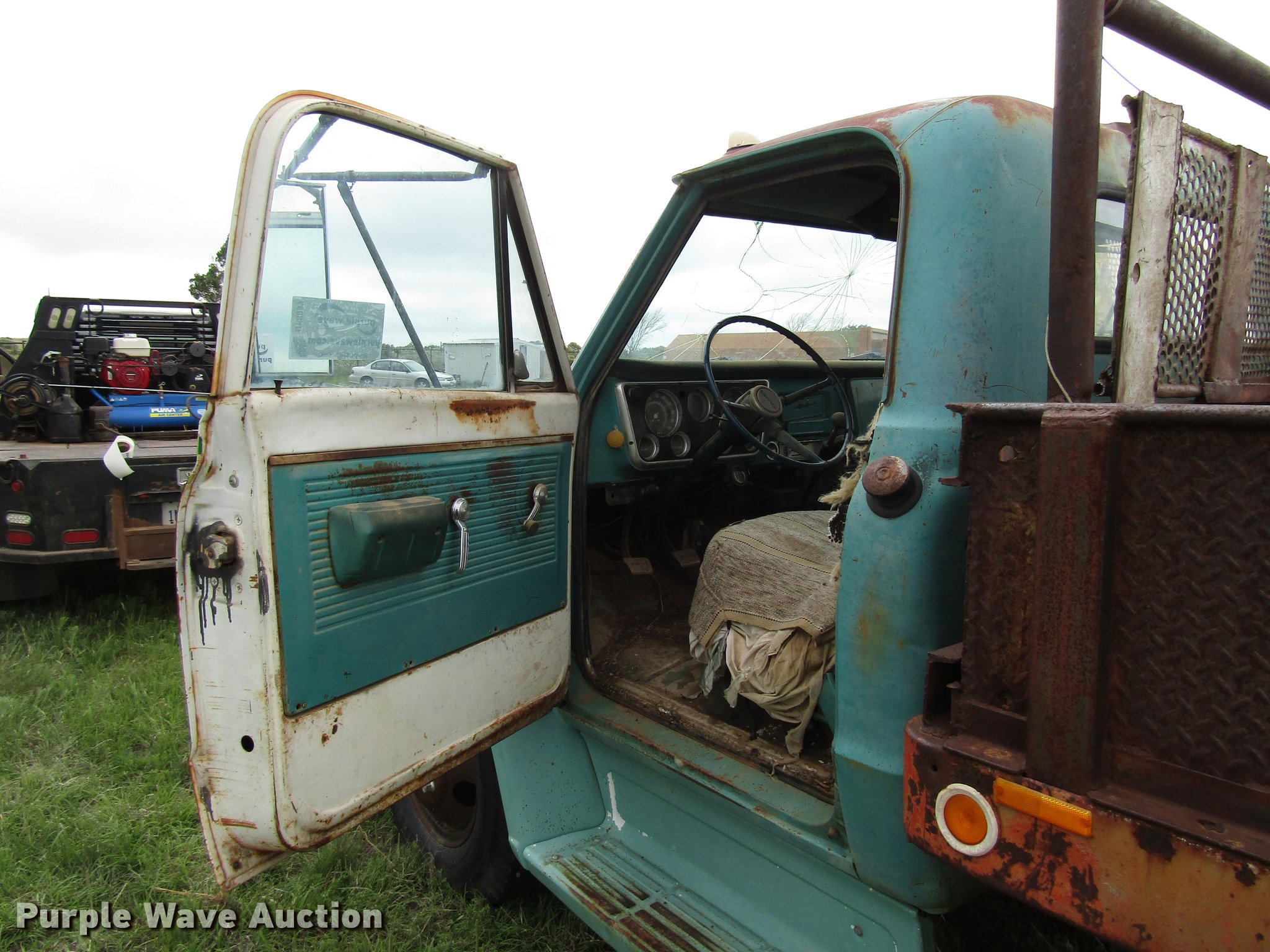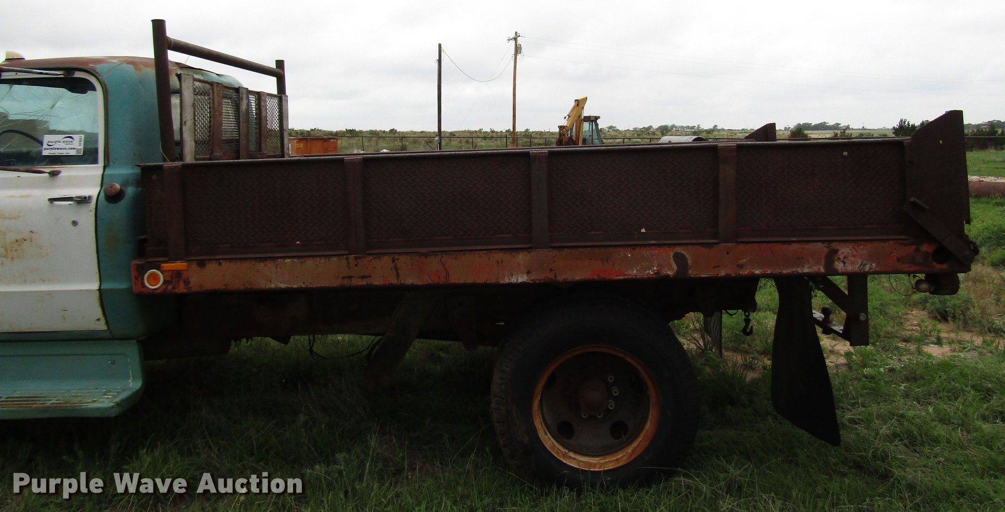 Purple Wave is selling a used Construction Dump Truck in Texas. This item is a 1970 GMC 5500 dump truck with the following: 43,813 miles on odometer, Eight cylinder gas engine, Four speed manual transmission, Two speed rear end, Single axle, Heat, 12'L x 8'W steel dump bed, 17" side height, Dual ram hoist, Single fuel tank, Spring suspension, Hydraulic brakes, 8.25-20 tires, GVWR 24,000 lbs, Cracked windshield, Non-operational unit