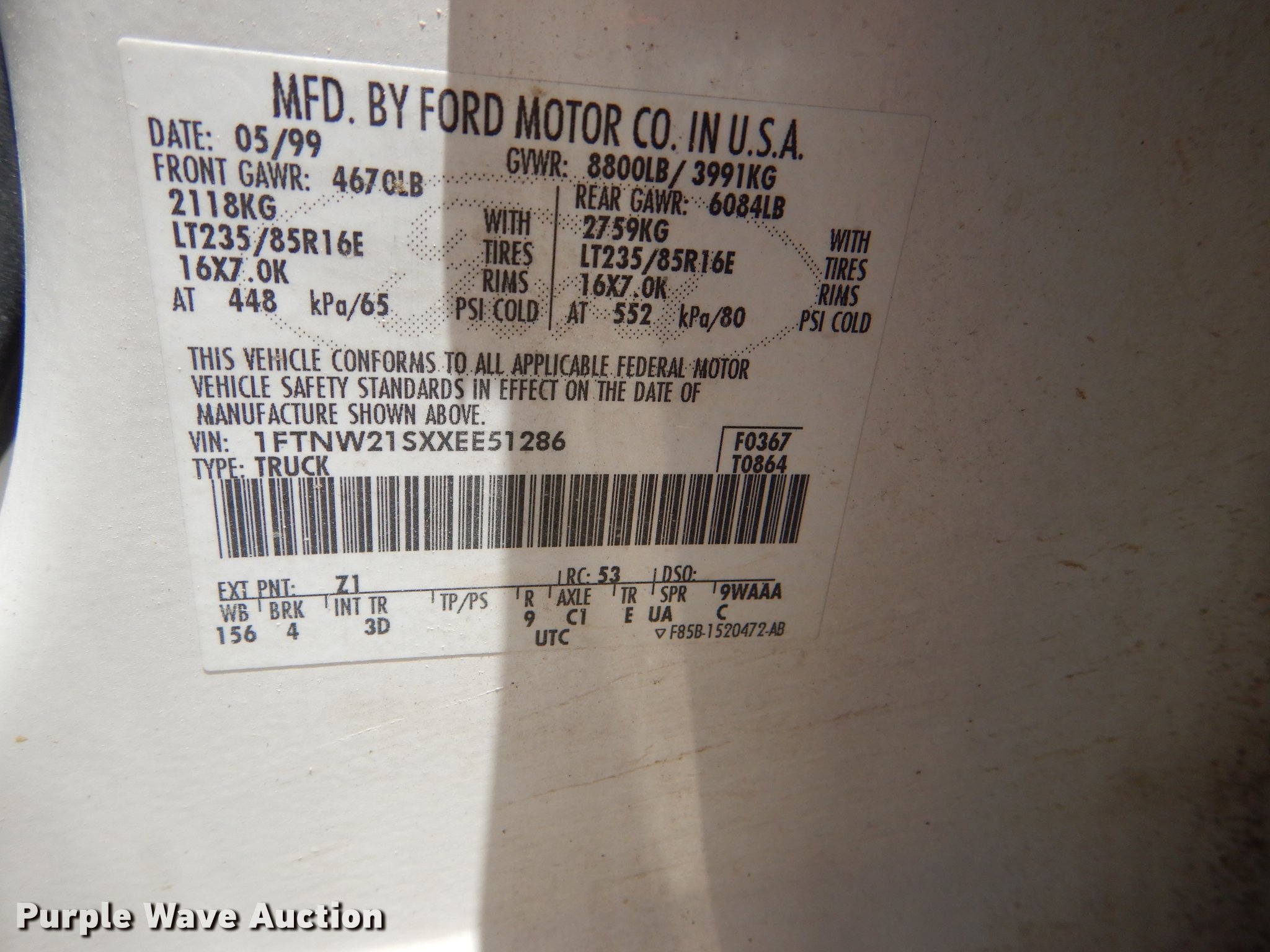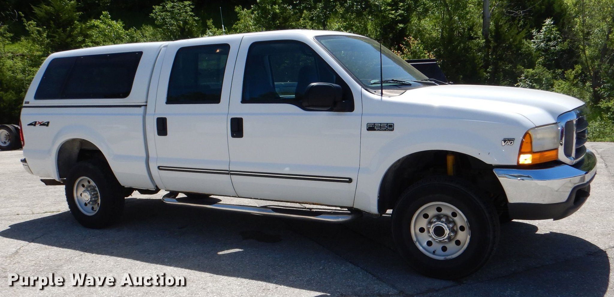 Purple Wave is selling a used 3/4 or 1 Ton Pickup or Van in Kansas. This item is a 1999 Ford F250 Super Duty XLT Crew Cab pickup truck with the following: 99,601 miles on odometer, 6.8L V10 SOHC 20V gas engine, Automatic transmission, Four wheel drive, AC and heat, Cruise, Power windows and locks, 235/85R16 tires, Unit# DD48