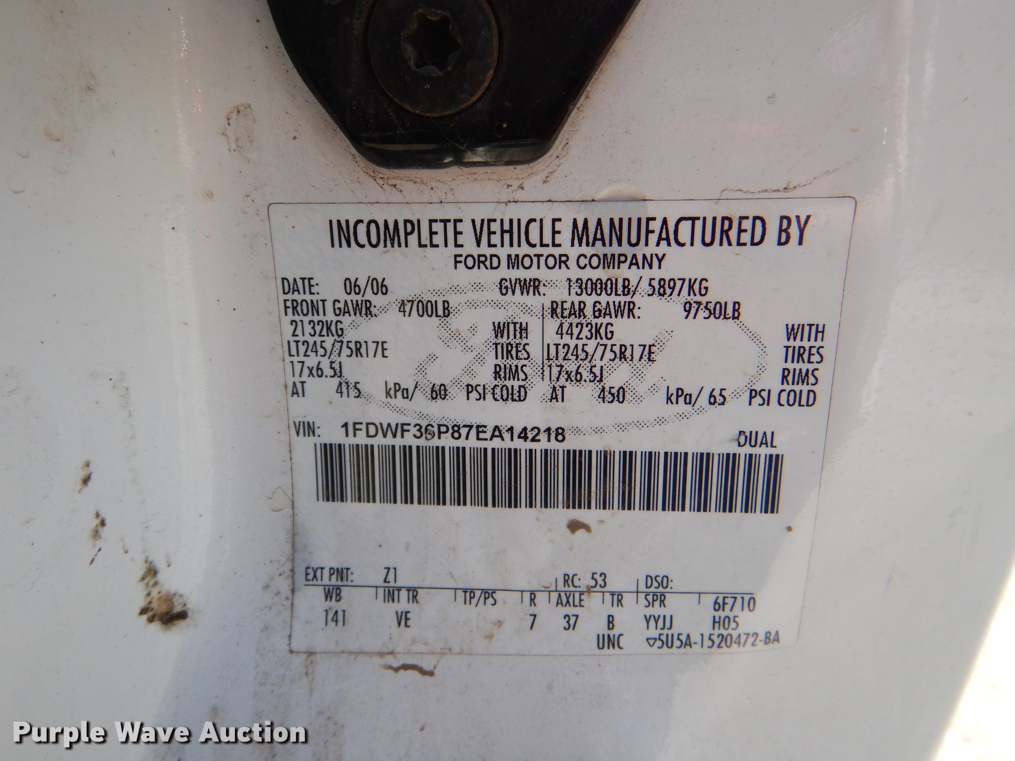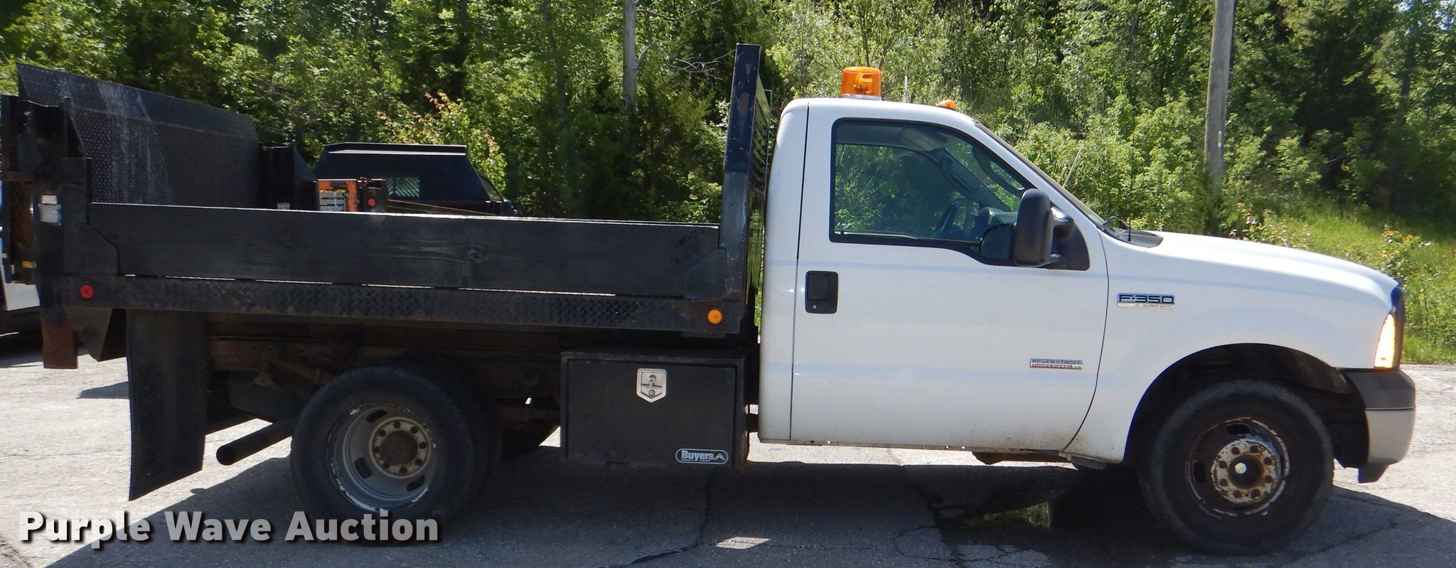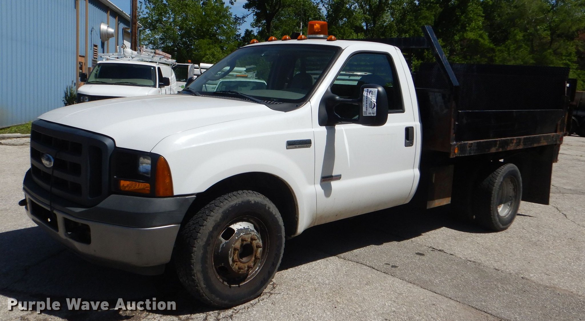 Purple Wave is selling a used 3/4 or 1 Ton Pickup or Van in Kansas. This item is a 2007 Ford F350 Super Duty XL dump bed pickup truck with the following: 83,119 miles on odometer, 6.0L V8 OHV 32V diesel engine, Automatic transmission, AC and heat, Backup alarm, 9'L x 8'W dump bed, Removable sides, Tommy Gate end gate lift, 1,300 lbs capacity,, Kevlar 245/75R17 tires, GVWR 13,000 lbs, FAWR 4,700 lbs, RAWR 9,750 lbs, Water in fuel, Unit# 3-192
