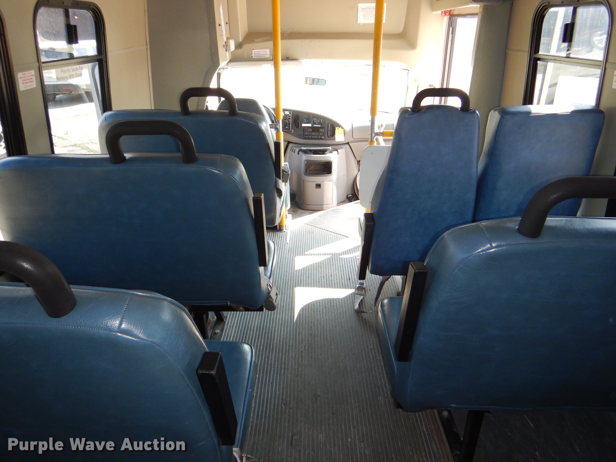 2002 Ford Econoline E350 Super Duty shuttle bus. 101,347 miles on odometer, 6.8L V10 SOHC 20V gas engine, Automatic transmission, Single axle, AC and heat, Heated mirrors, 12 passenger capacity, Child safety seat, Wheelchair lift, Spring suspension, Hydraulic brakes, 137" wheelbase, Hankook 225/75R16 tires, GVWR 10,700 lbs. Kansas title. 1FDWE35SX2HA49522. Marysville, KS 66508