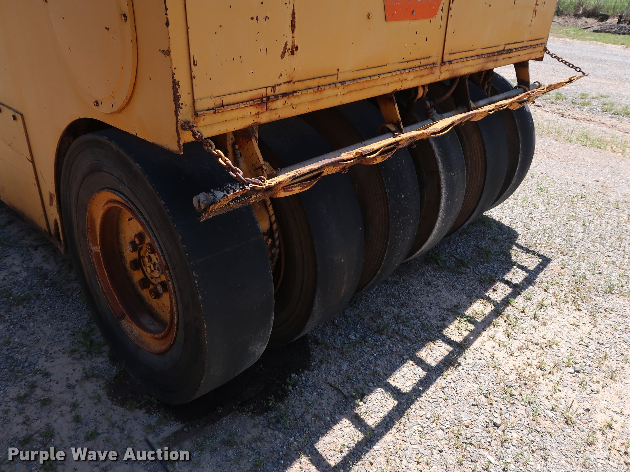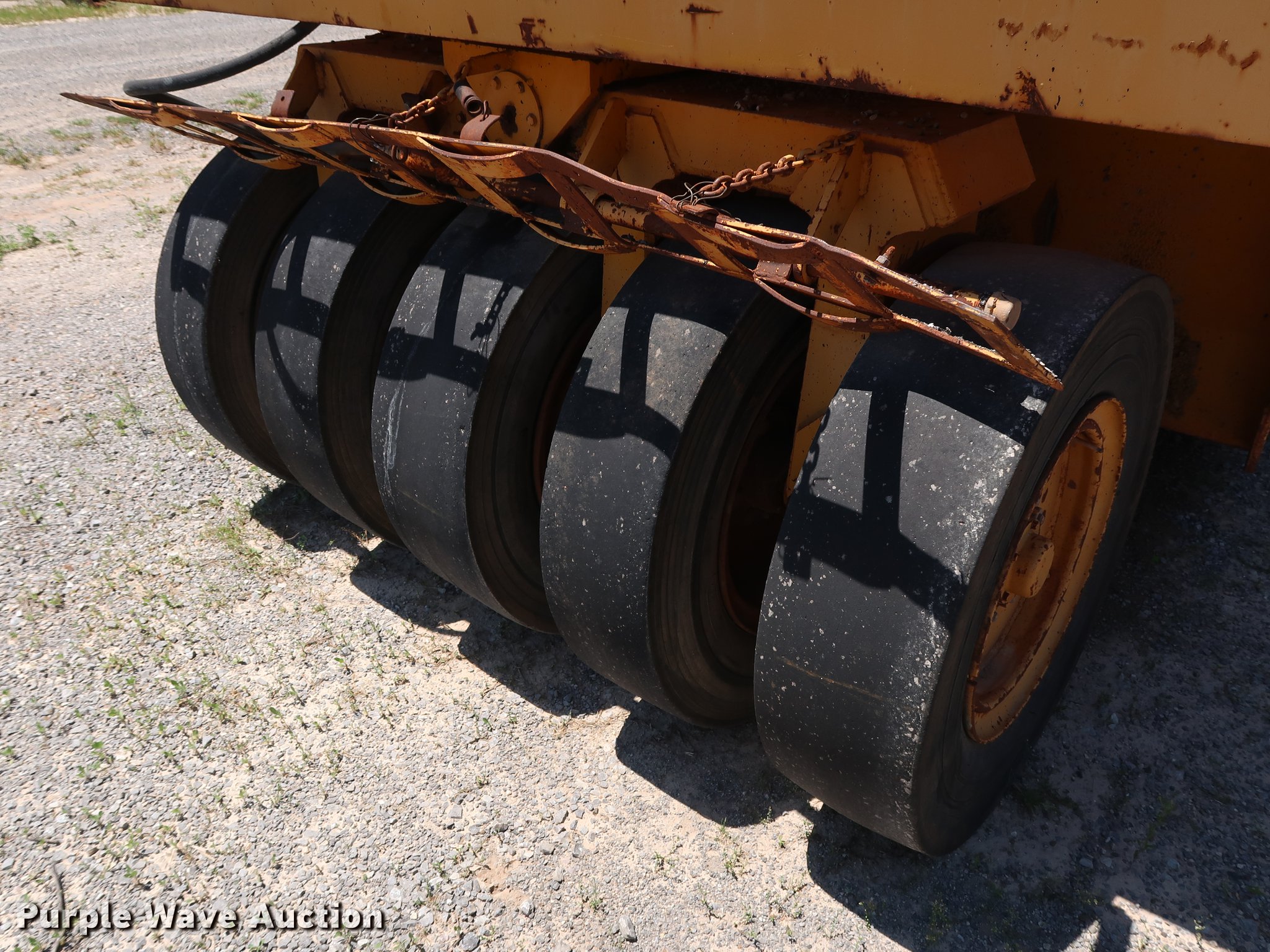 Ferguson SP1130 pneumatic roller. 645 hours on meter, 173 hours on second meter, Detroit Diesel 50437001 four cylinder diesel engine Serial 400201172, Direct drive transmission 4F-4R gears, Canopy, Dual operator stations, Front and rear water application, (11) General 7.00-20 NHS tires, Starter needs repaired, Serial 223, Unit# 320-59. Cleveland County - District 3. 9050 S US-77. Noble, OK 73068