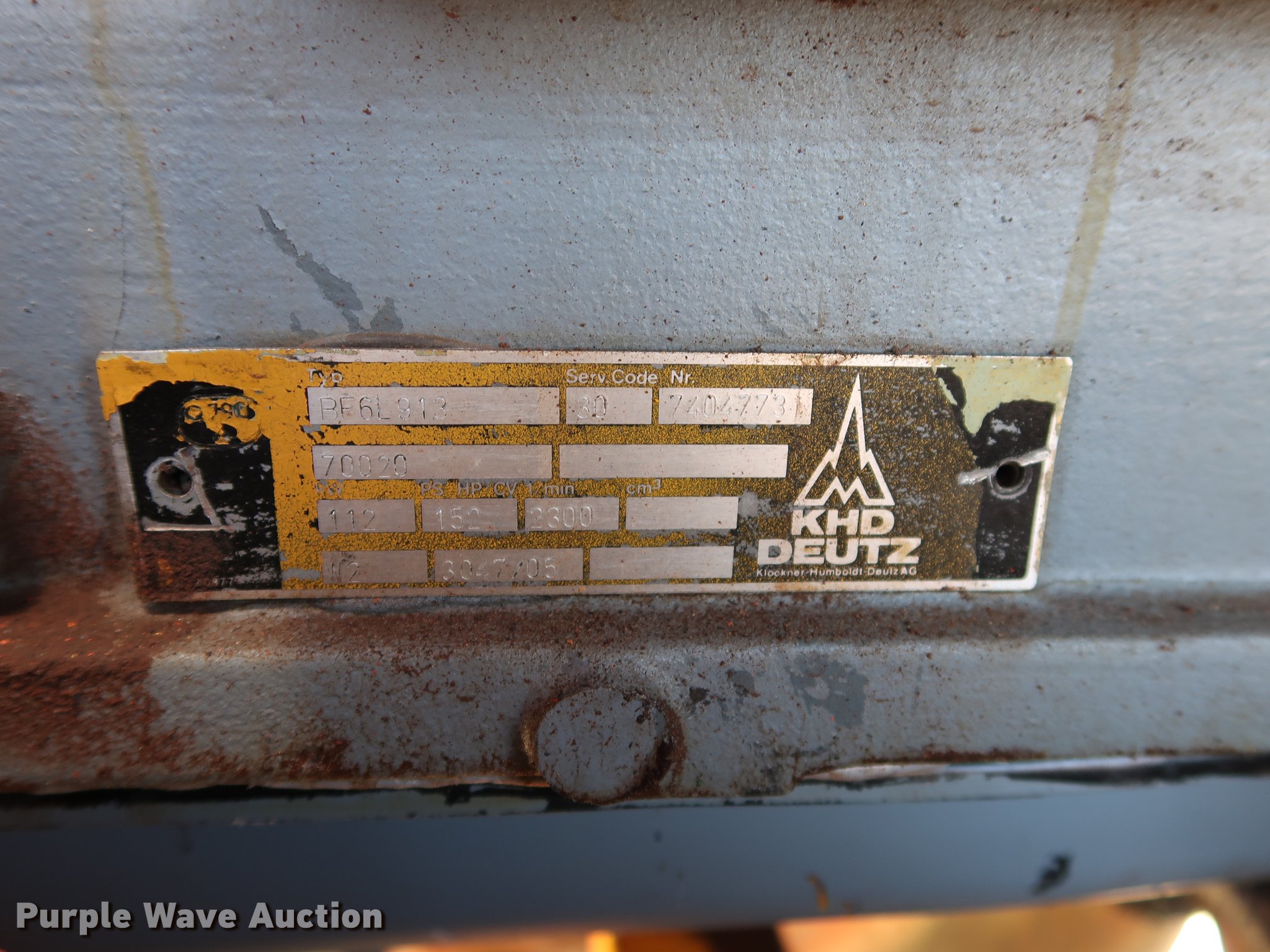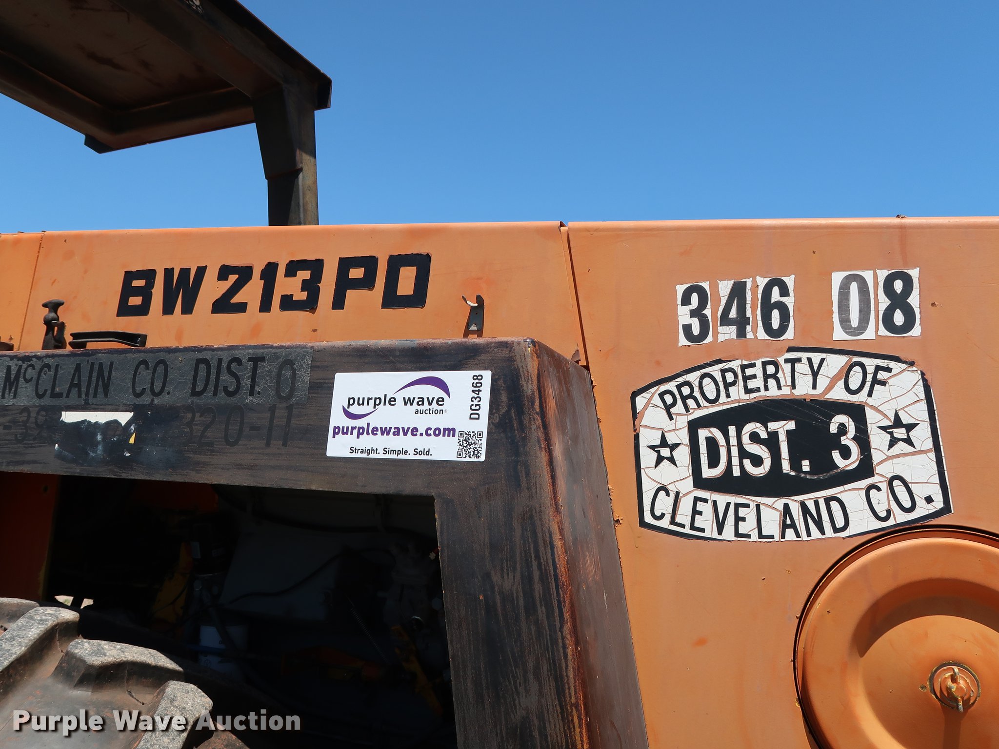 Bomag BW213PD single drum vibratory roller. 2,448 hours on meter, Deutz BF6L913 six cylinder diesel engine 150 HP, Serial 7404773, Hydrostatic transmission, Canopy, 84"W x 60" diameter padfoot drum Single vibratory system, Front drum scraper, Akuret 23.1-26 tires, Engine replaced April 2018, Serial 400115152, Unit# 316-08. View repairs. Cleveland County - District 3. 9050 S US-77. Noble, OK 73068