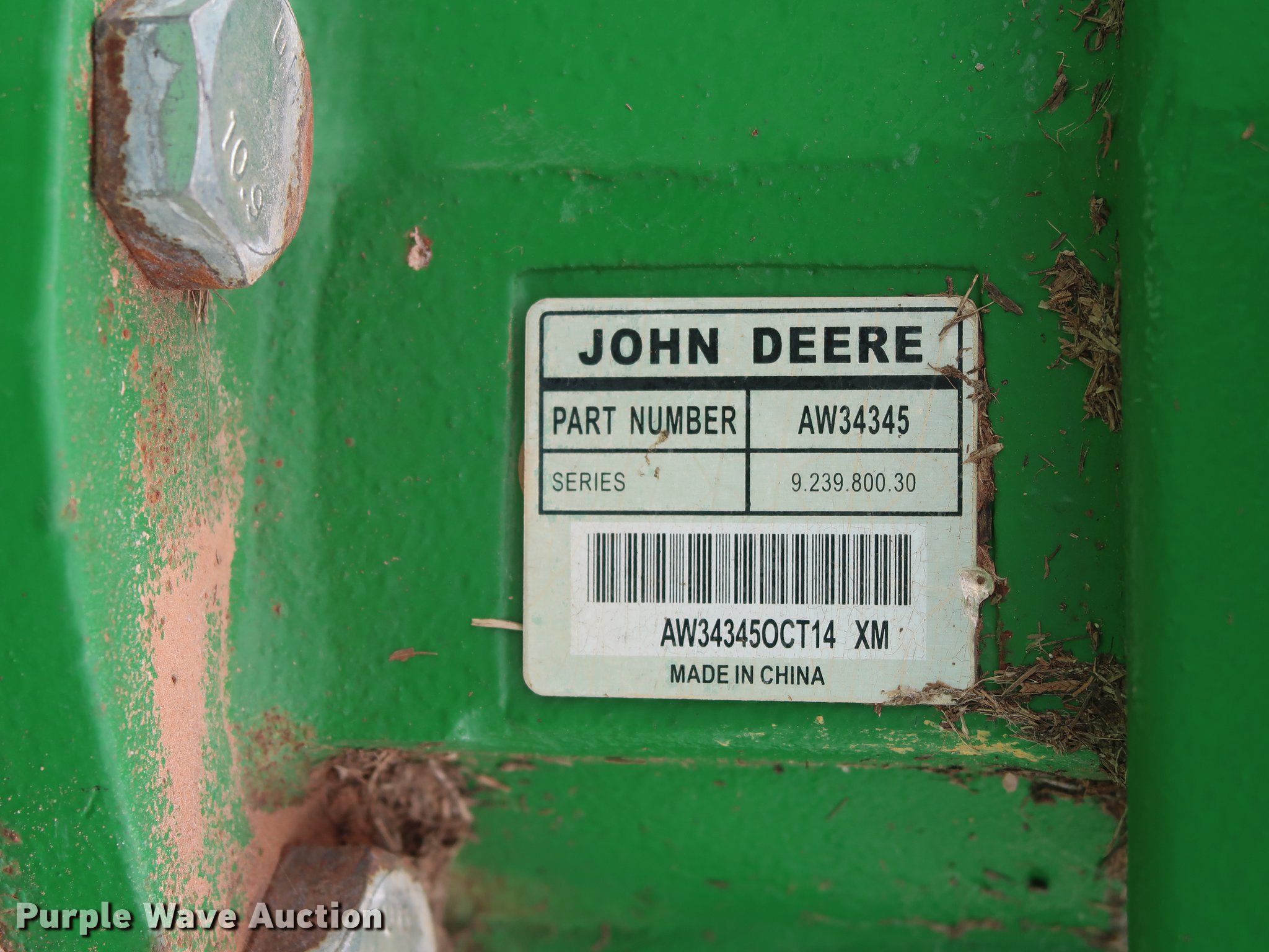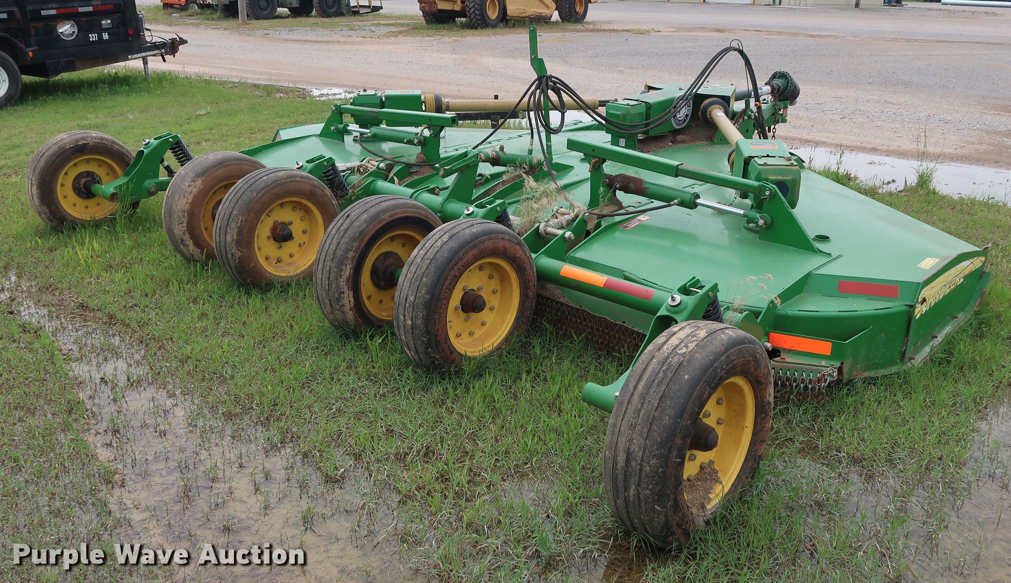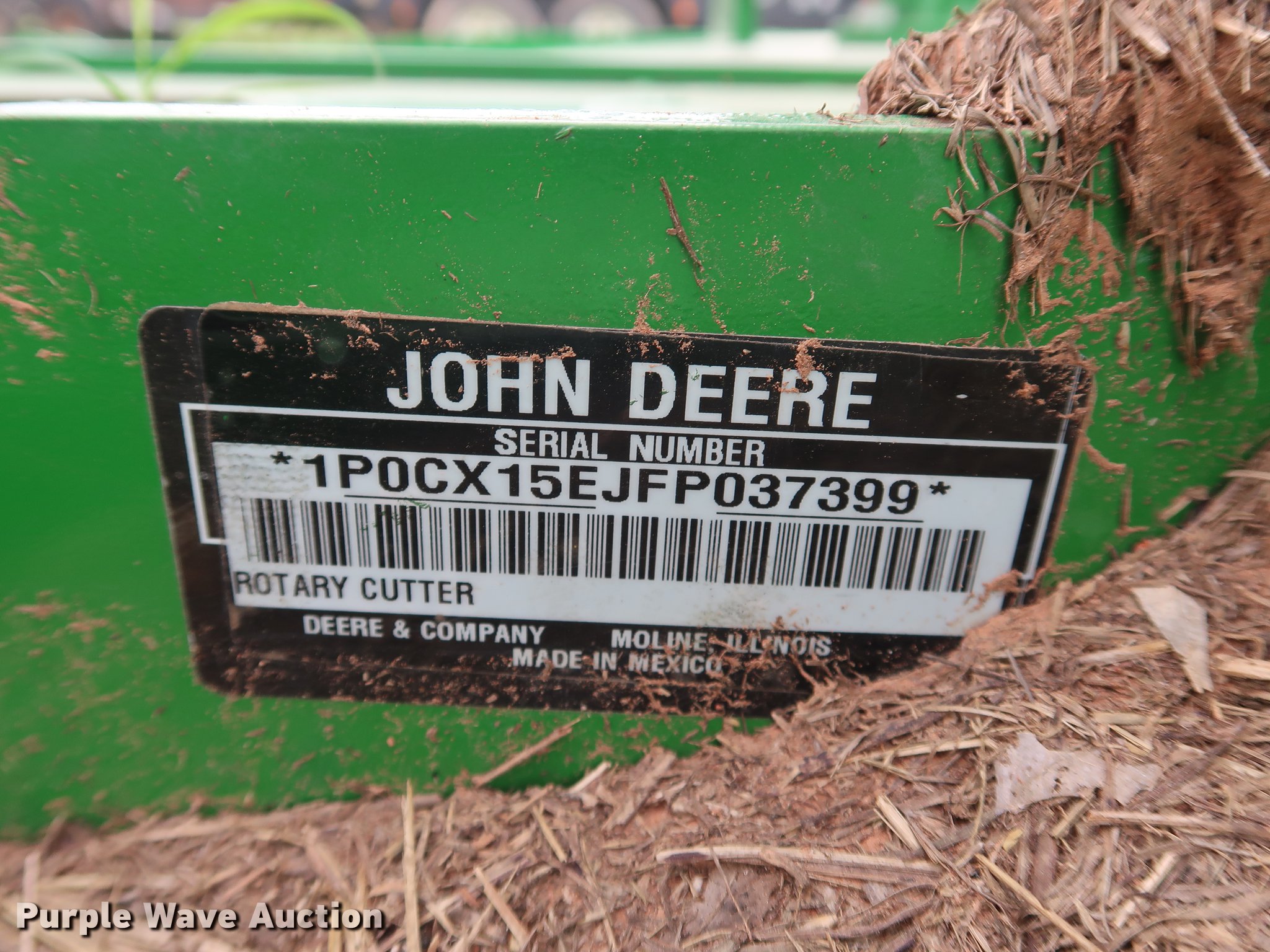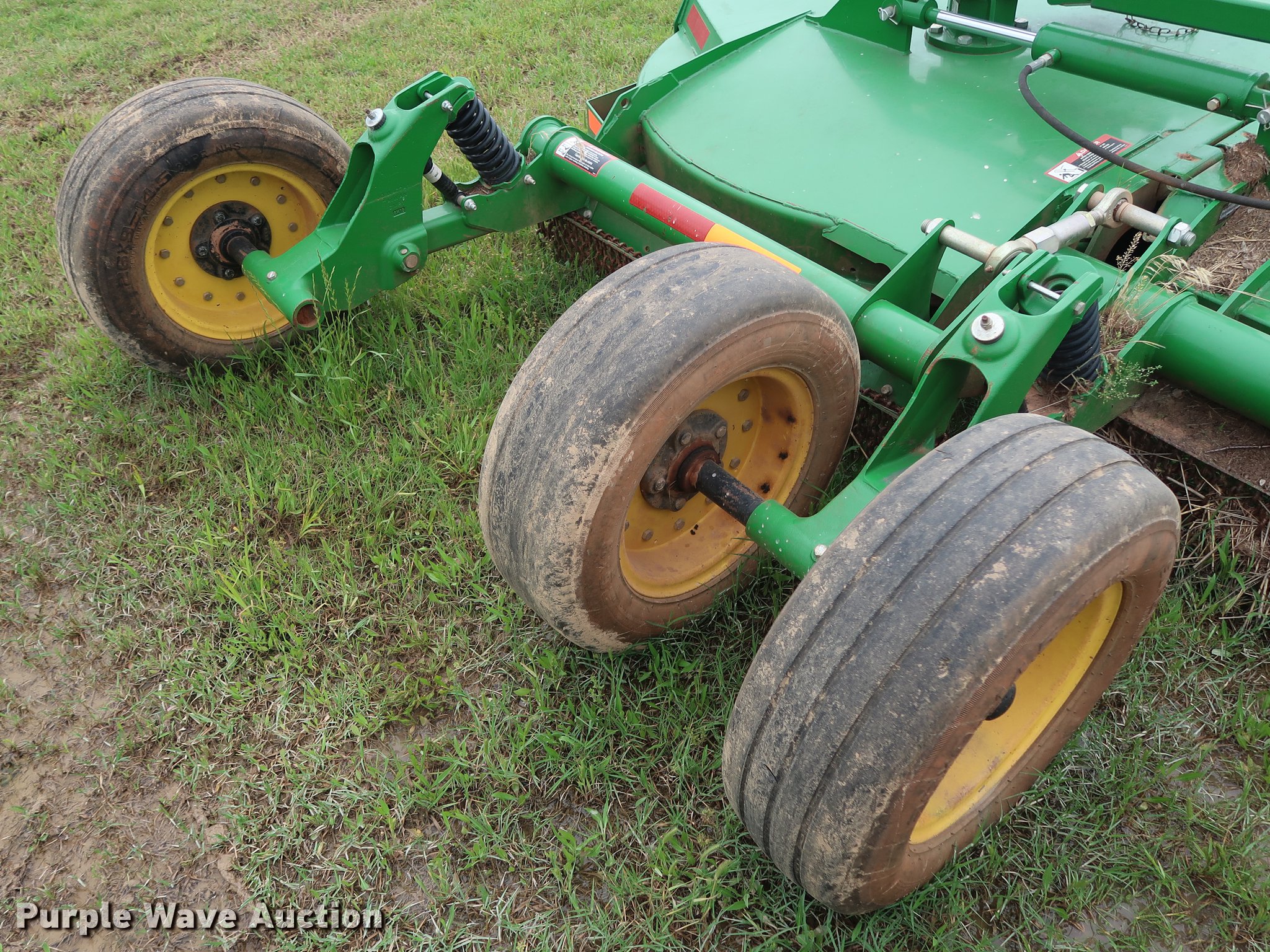 Purple Wave is selling a used Mower, Cutter, Shredder in Oklahoma. This item is a 2015 John Deere CX15 batwing rotary mower with the following: 15'W, Hydraulic lift and fold, Safety chains, 540 PTO, Pin hitch, Jack stand, Super Grip 26x9-14.5 tires, Serial 1P0CX15EJFP037399, Unit# 430-83