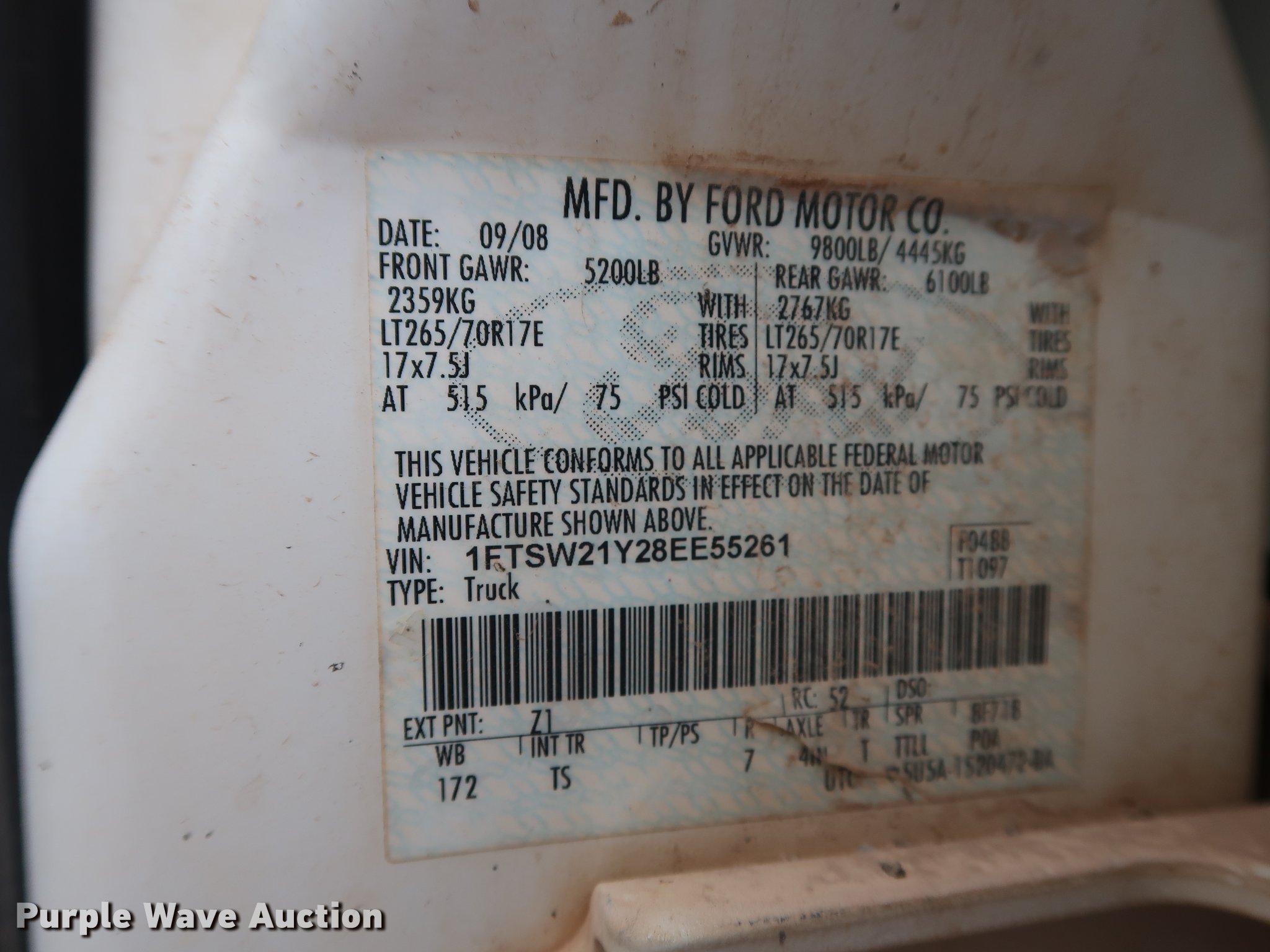 Purple Wave is selling a used 3/4 or 1 Ton Pickup or Van in Oklahoma. This item is a 2008 Ford F250 Super Duty XL Crew Cab pickup truck with the following: 129,286 miles on odometer, 6.8L V10 SOHC 30V gas engine, Automatic transmission, Four wheel drive, AC and heat, Cruise, Power windows and locks, Wild Trail All Terrain LT265/70R17 tires, Unit# 301-88