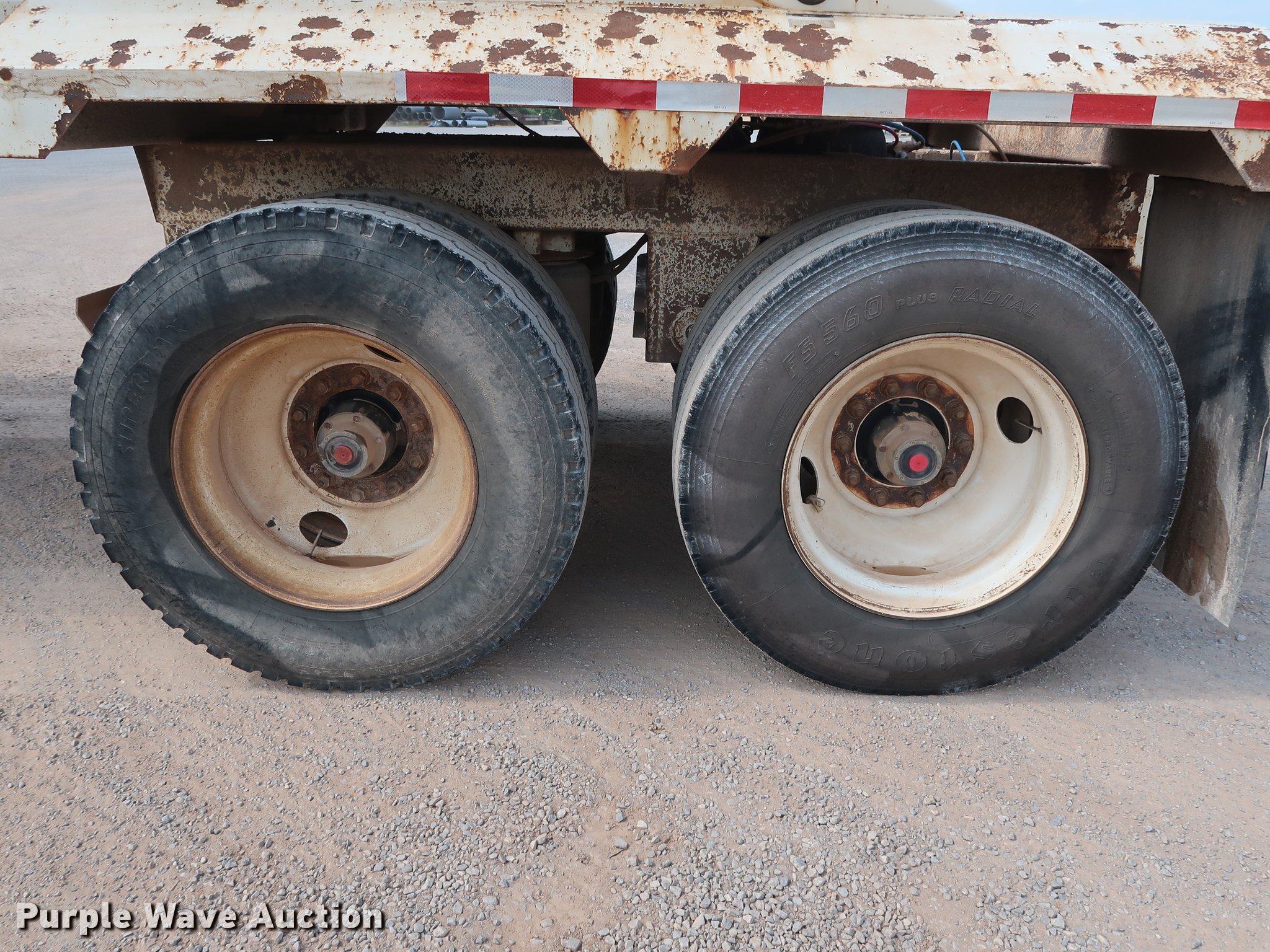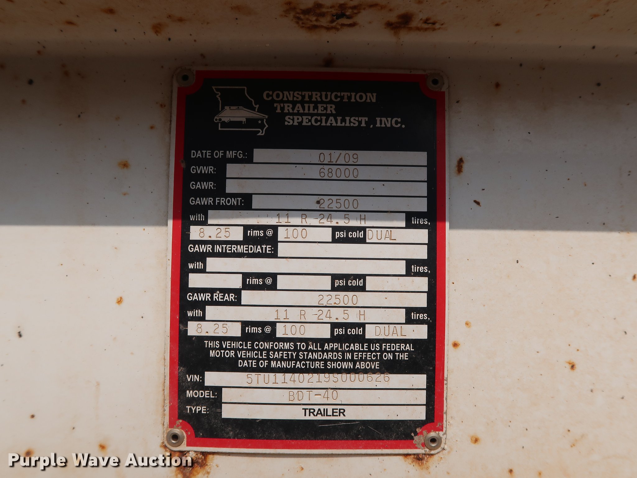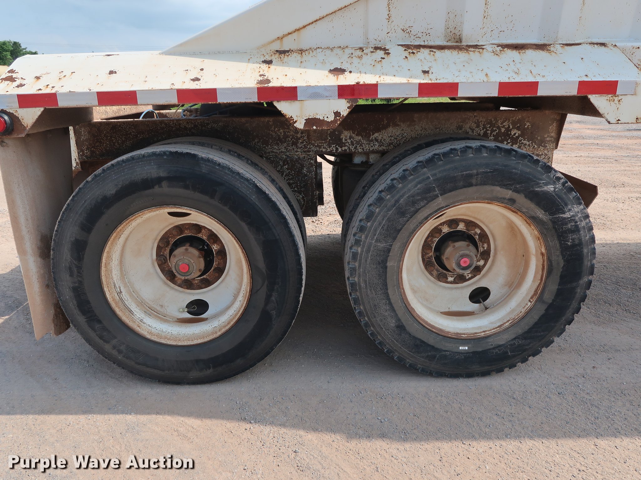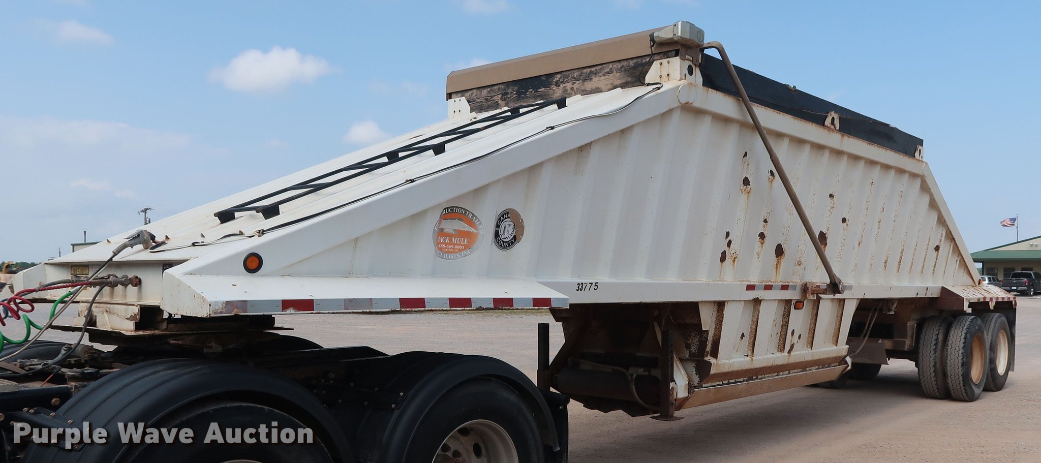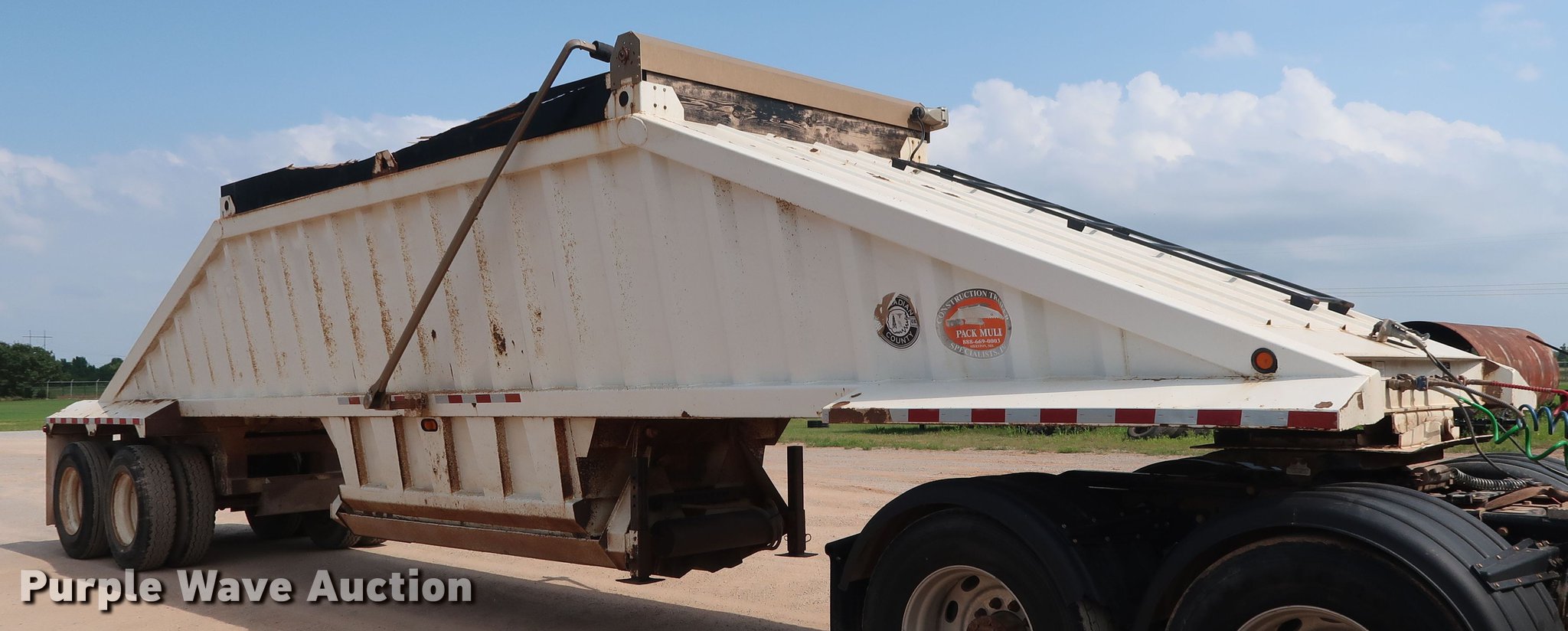 Purple Wave is selling a used Bottom Dump Trailer in Oklahoma. This item is a 2009 CTS BDT-40 bottom dump trailer with the following: 40'L x 96"W overall, 54" side height, 12" side board height, Single hydraulic cylinder, Air operated clamshell gate, Trailer controls, Rear push block, Electric roller tarp, Steel construction, Dual leg landing gear, Air suspension, Air brakes, Tandem axle, Steel wheels, 11R24.5 tires, GVWR 68,000 lbs, GAWR 22,500 lbs, Unit# 337-75