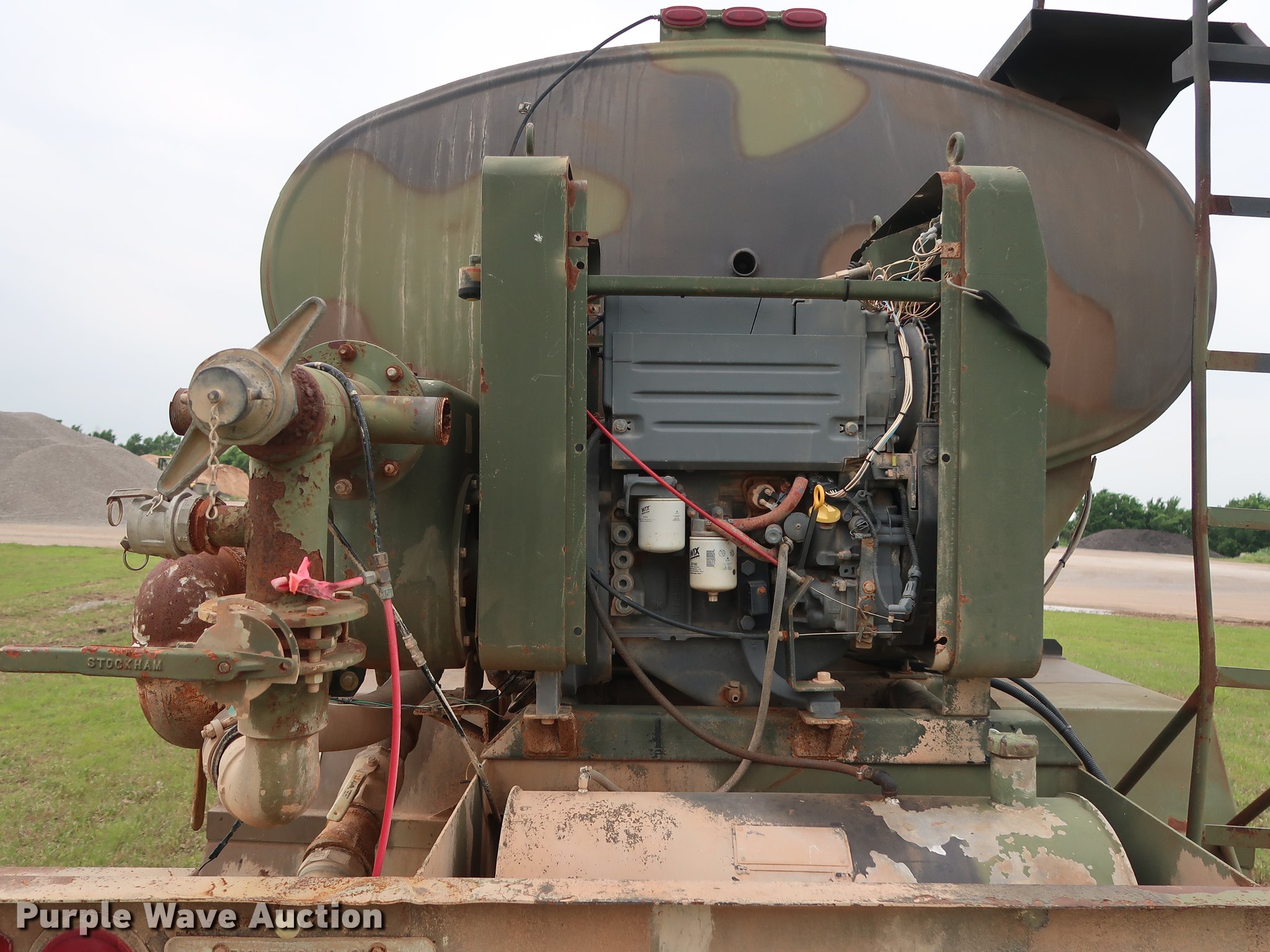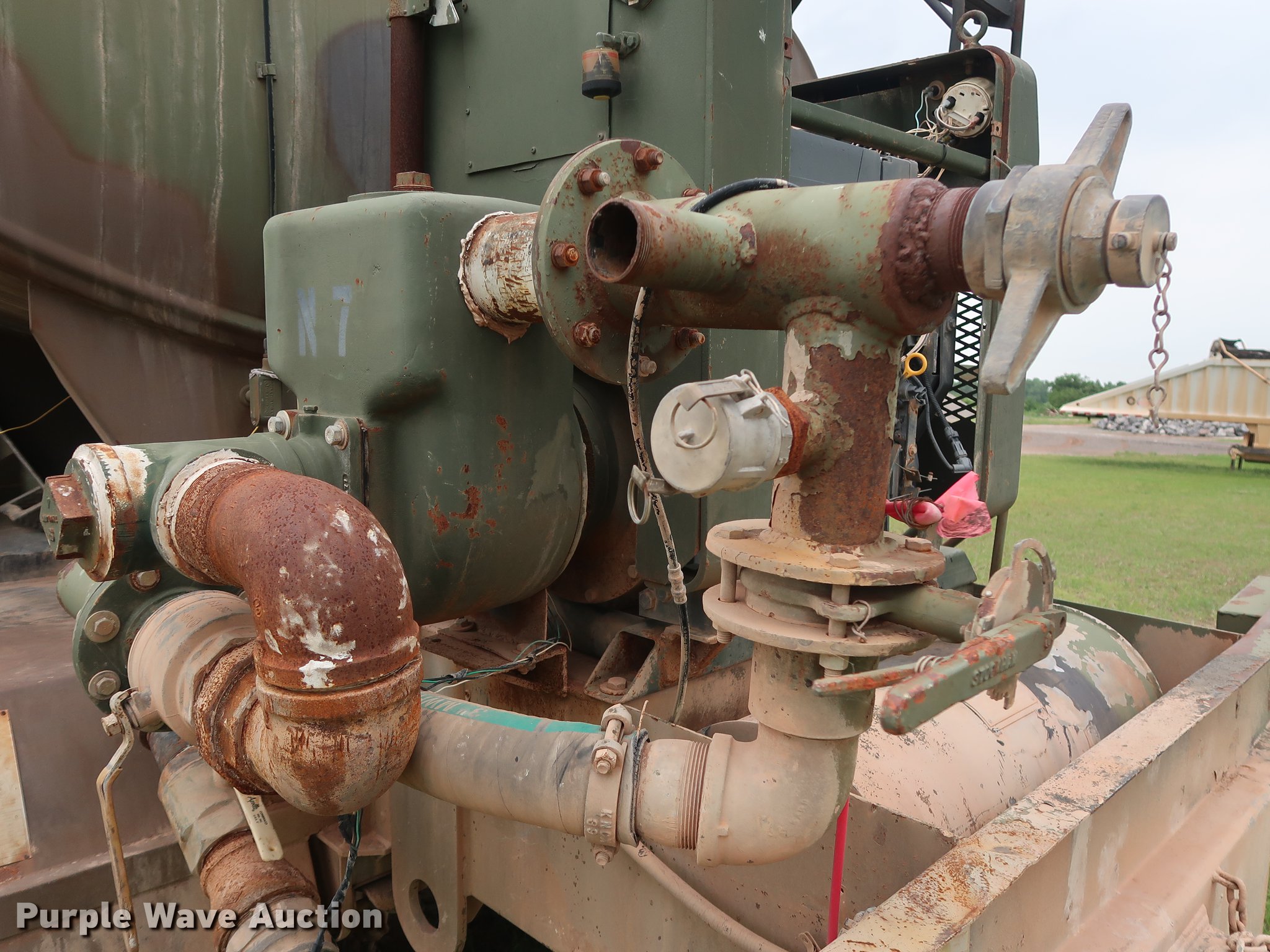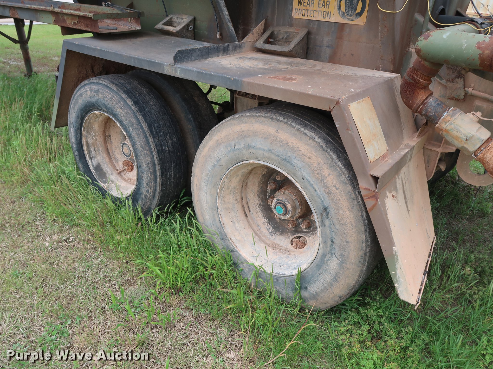 1990 Etnyre 60PRS tank trailer. 38'L x 96"W overall, 6,000 gallon steel tank (6) baffles, 4" outlet valve, (7) 20"W manways/manholes, Macleod pump Deutz D2011L031 2.33L three cylinder diesel engine, 46 HP, 4" outlet, Serial 11309394, Rear pin hitch, Dual leg landing gear, Spring suspension, Air brakes, Steel wheels, 295/75R22.5 front tires, 11R22.5 rear tires, Unit# 377-42. Oklahoma title. Title distribution may be delayed up to 30 days from verification of funds. 1E9T38208LE007222. Canadian County. 1103 N Shepard Ave. El Reno, OK 73036