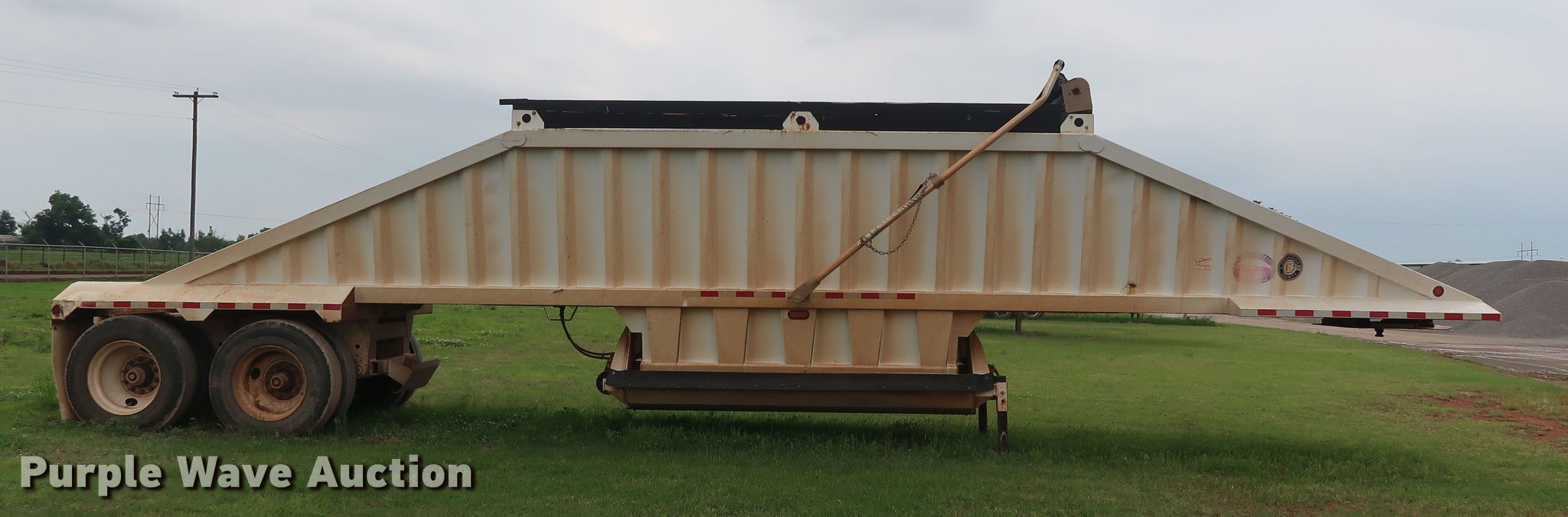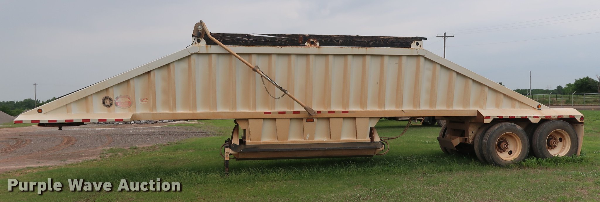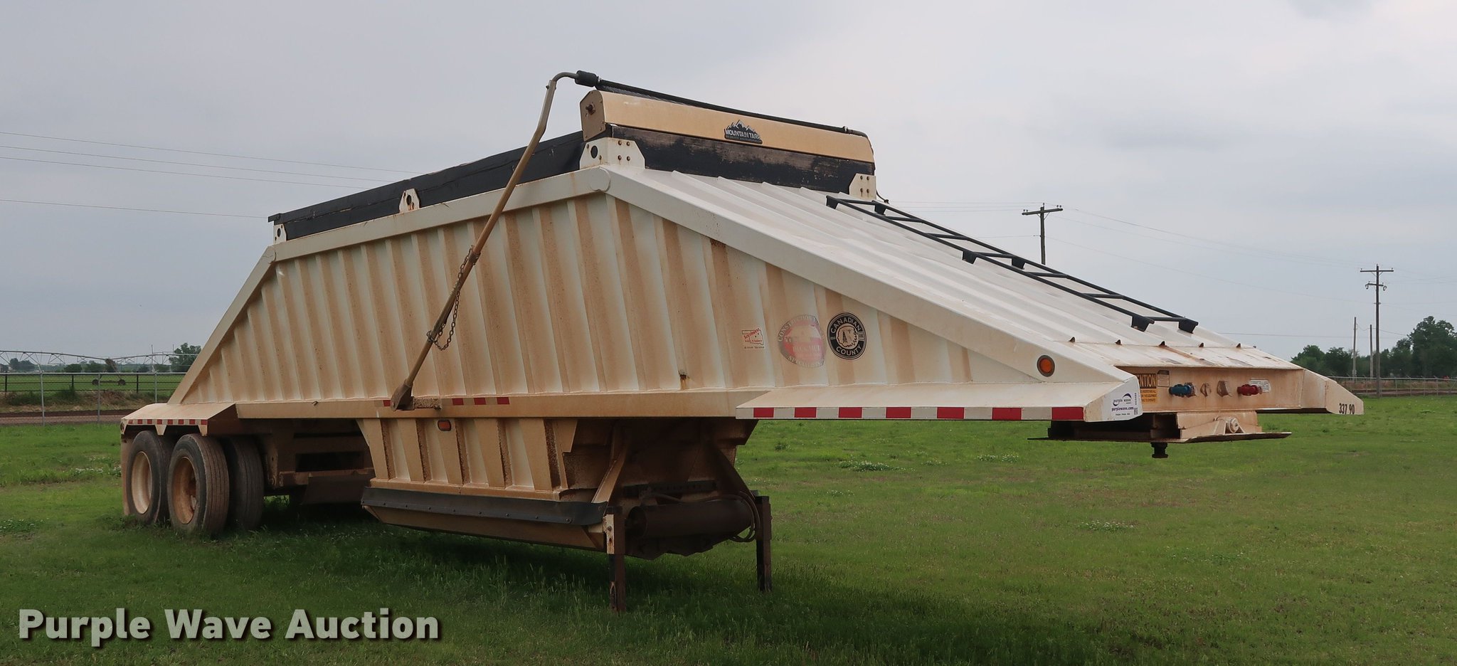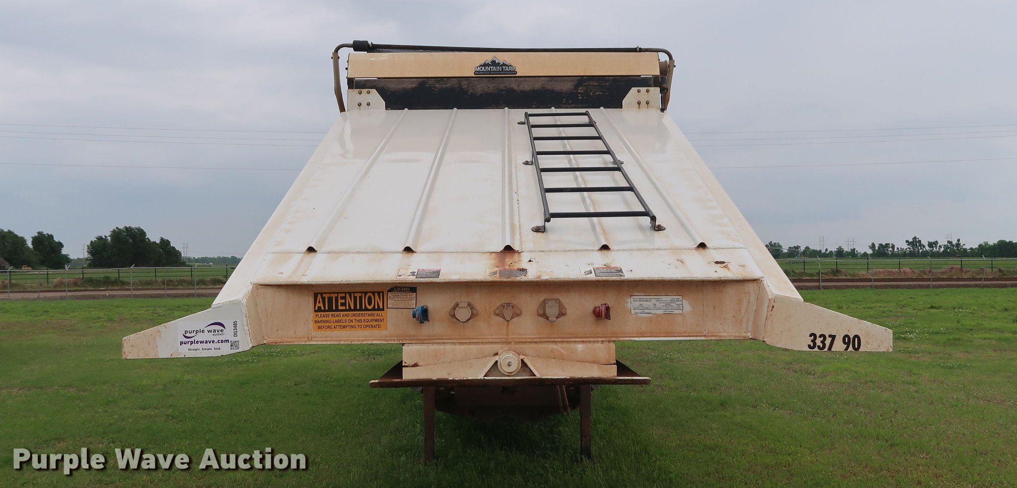 Purple Wave is selling a used Bottom Dump Trailer in Oklahoma. This item is a 2014 CTS BDT-40 bottom dump trailer with the following: 40'L x 96"W overall, 54" side height, 12" side board height, Single hydraulic cylinder, Air operated clamshell gate, Trailer controls, Rear push block, Electric roll tarp, Steel construction, Dual leg landing gear, Air suspension, Air brakes, Tandem axle, Steel wheels, 11R24.5 tires, GVWR 68,000 lbs, GAWR 22,500 lbs, Unit# 337-90