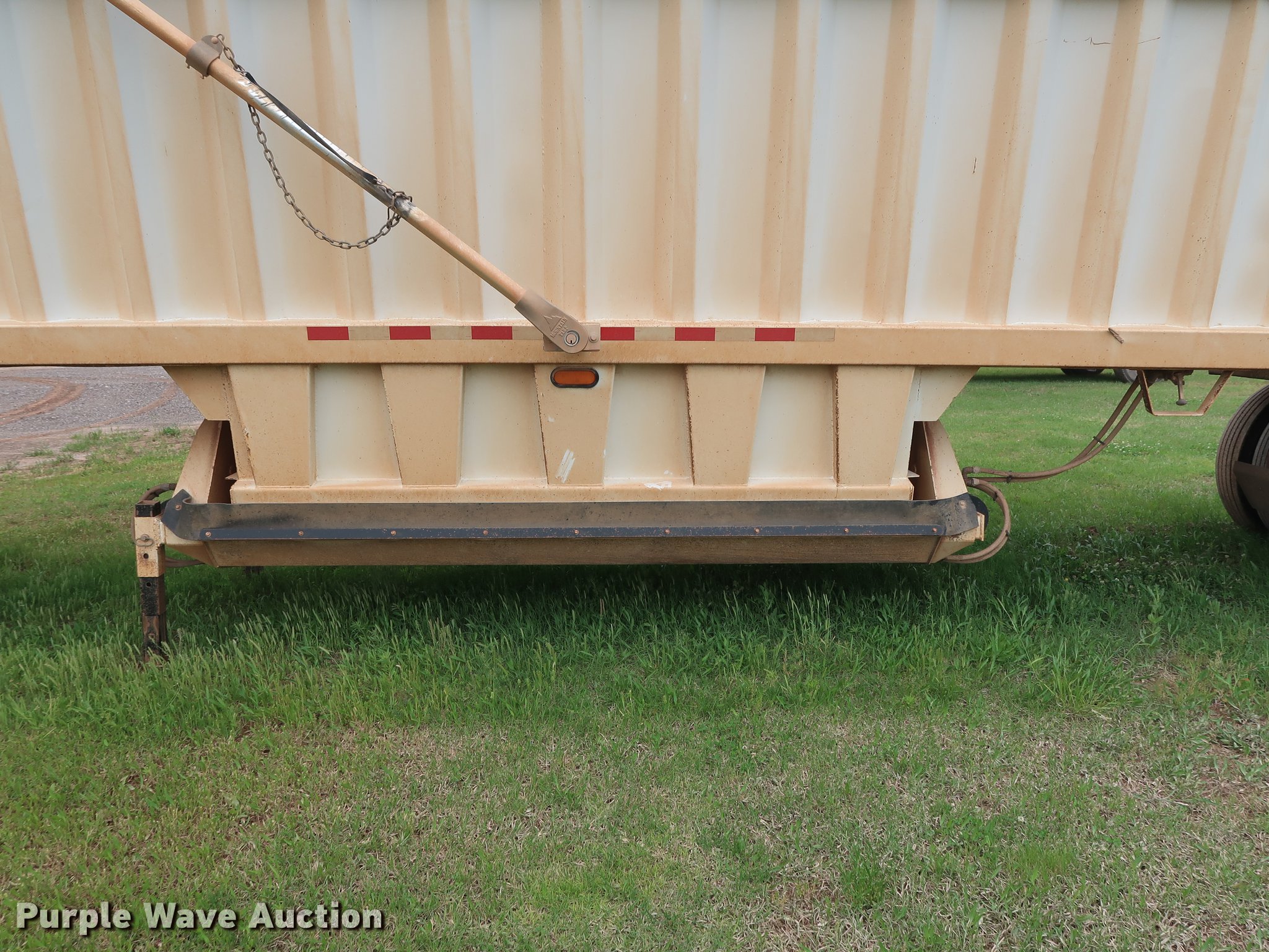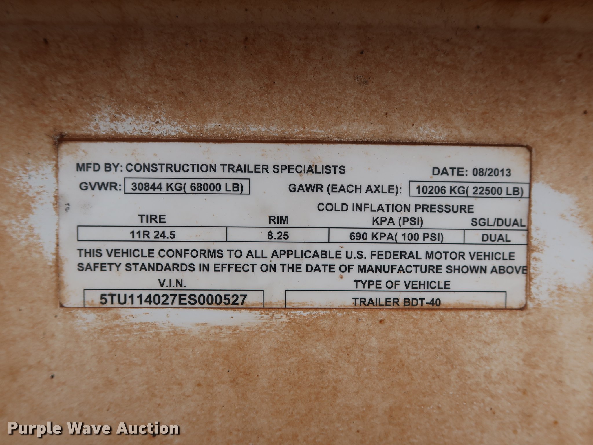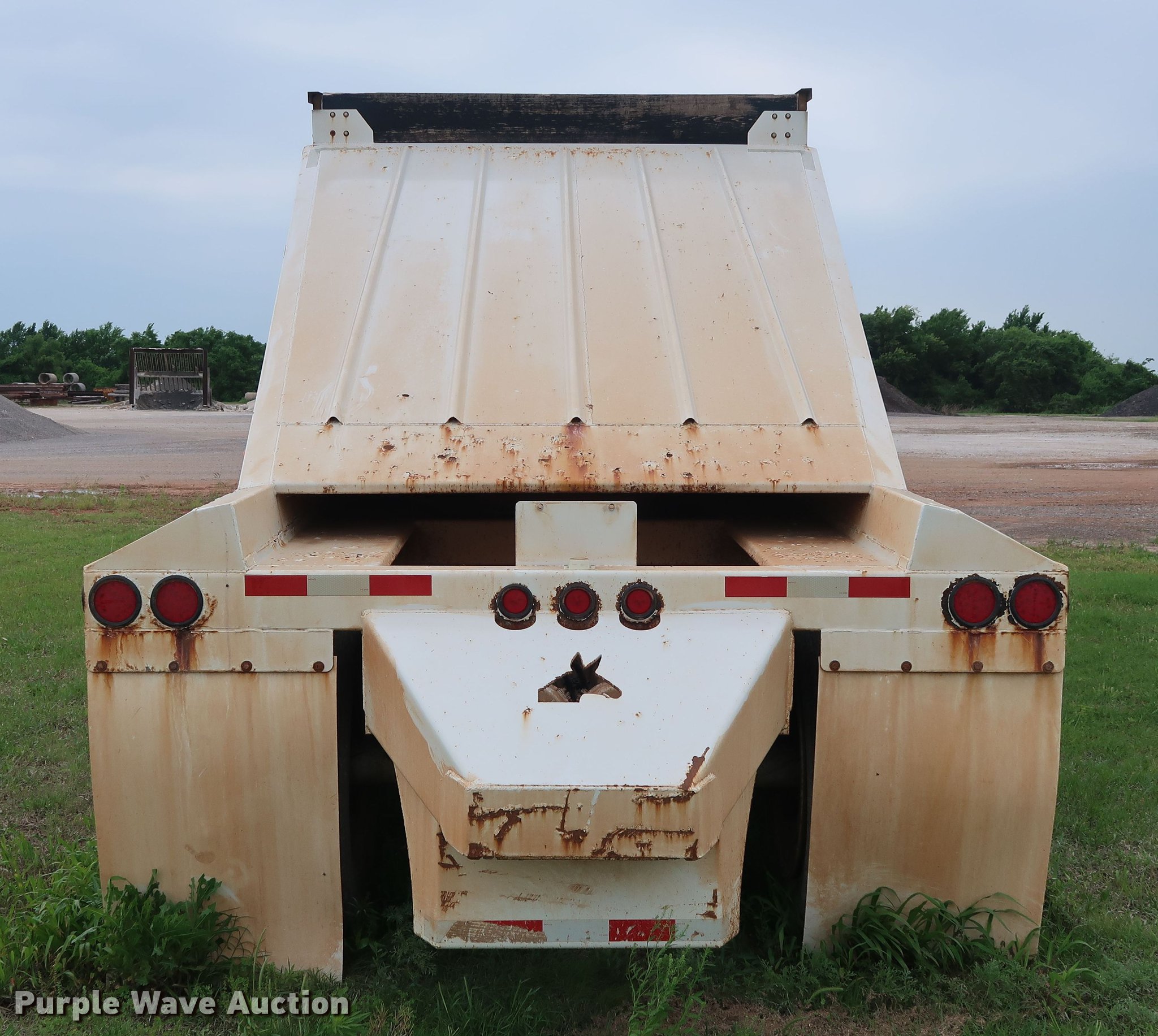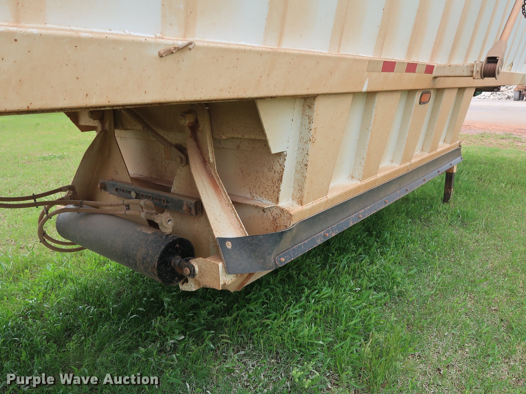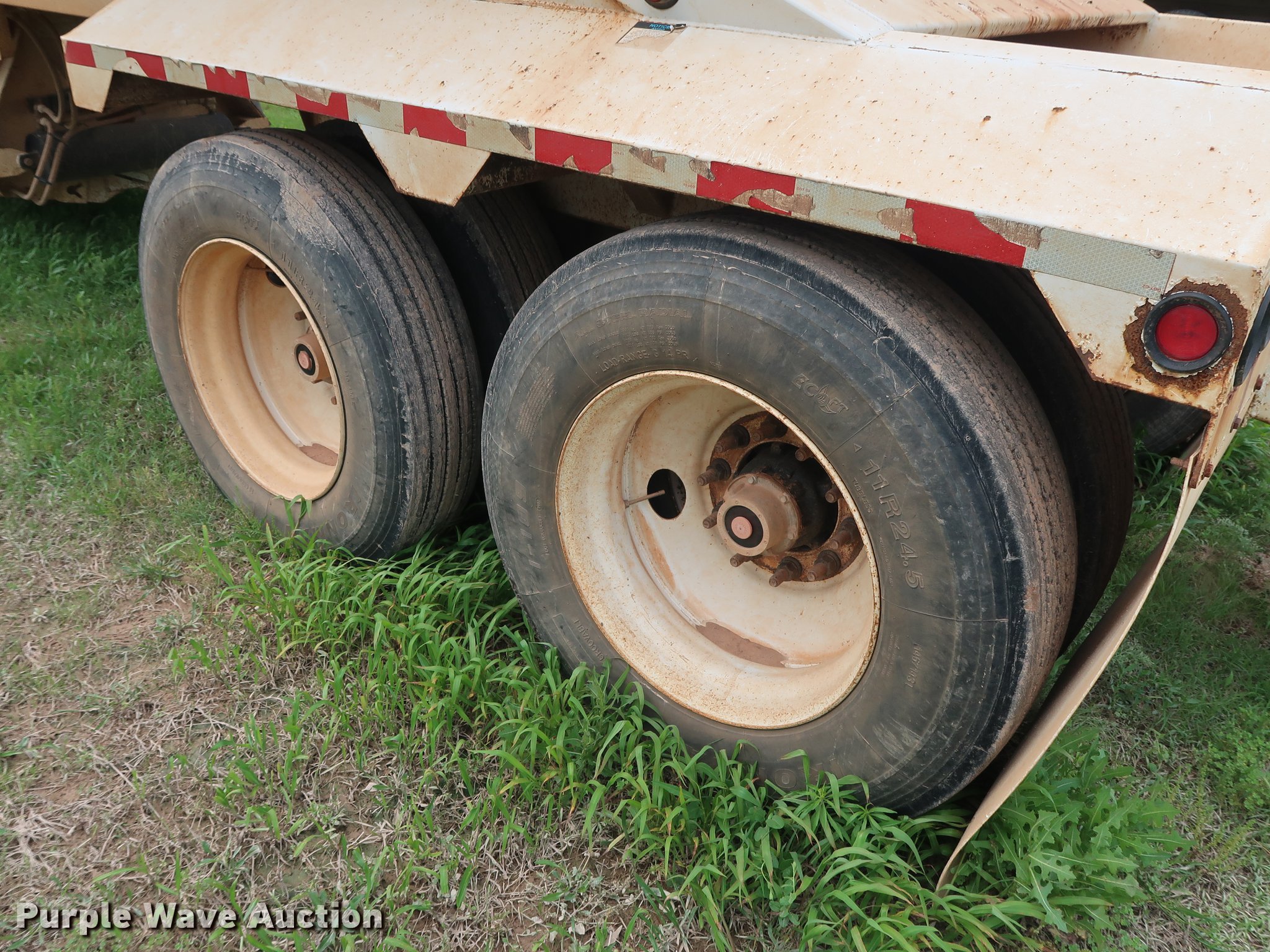 Purple Wave is selling a used Bottom Dump Trailer in Oklahoma. This item is a 2014 CTS BDT-40 bottom dump trailer with the following: 40'L x 96"W overall, 54" side height, 12" side board height, Single hydraulic cylinder, Air operated clamshell gate, Trailer controls, Rear push block, Electric roll tarp, Steel construction, Dual leg landing gear, Air suspension, Air brakes, Tandem axle, Steel wheels, 11R24.5 tires, GVWR 68,000 lbs, GAWR 22,500 lbs, Unit# 337-90