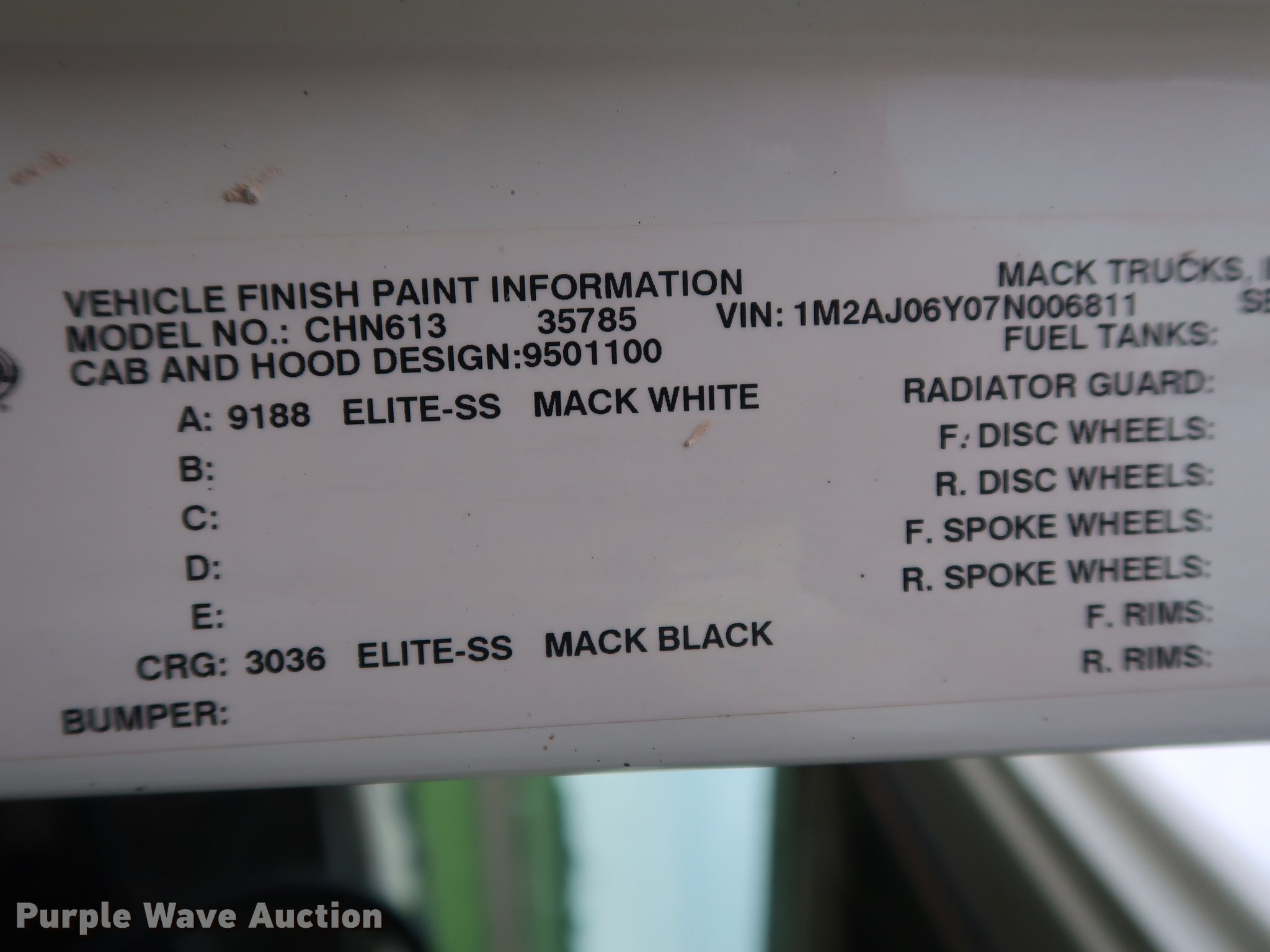 Take a look at this used 2007 Mack CHN613 dump truck being sold on June 18th, 2019 in the SOLD! June 18 Government Auction made by Mack. Take a look at all of the item information below or take a look at similar auctions for Construction Trucks.