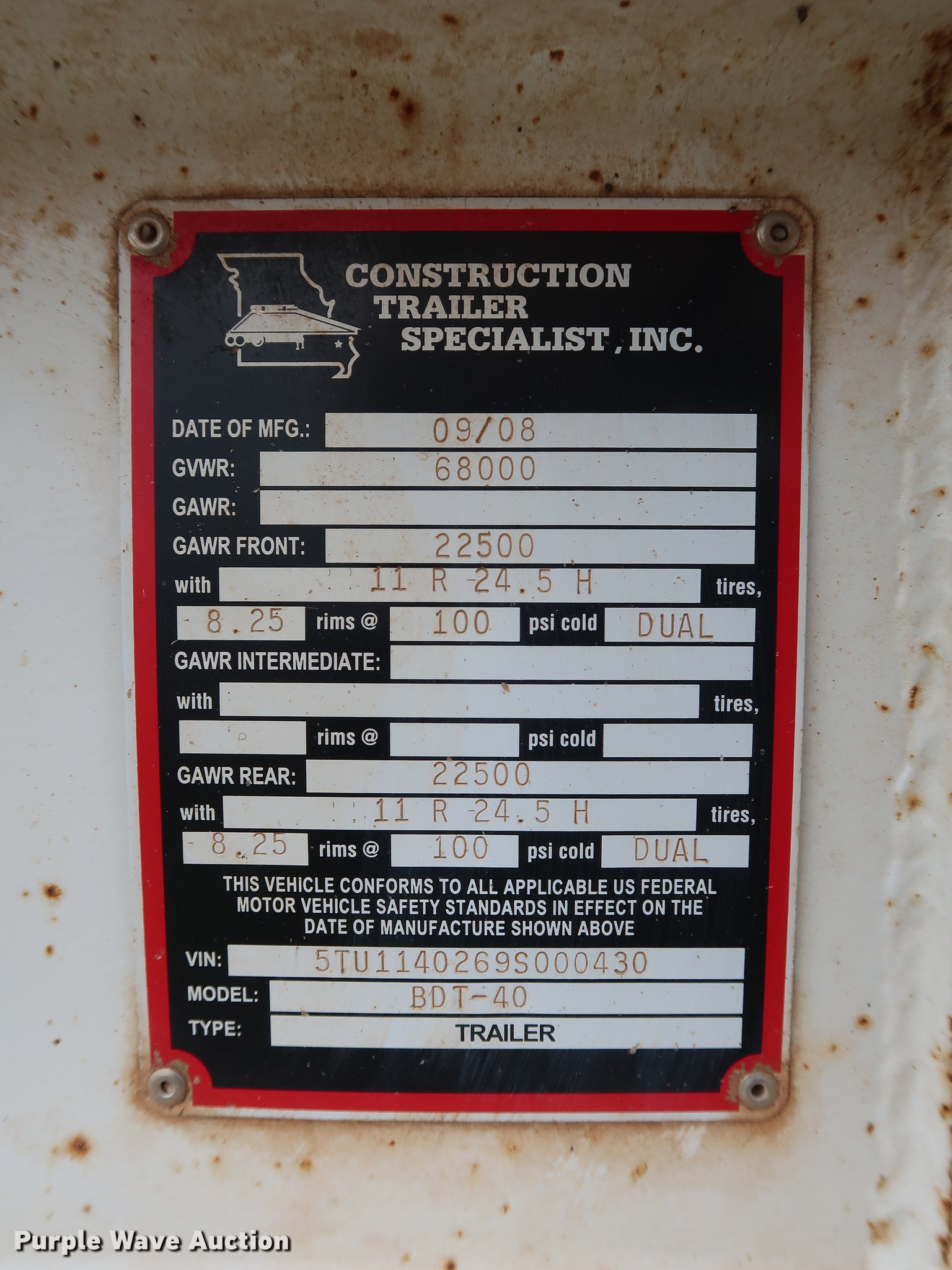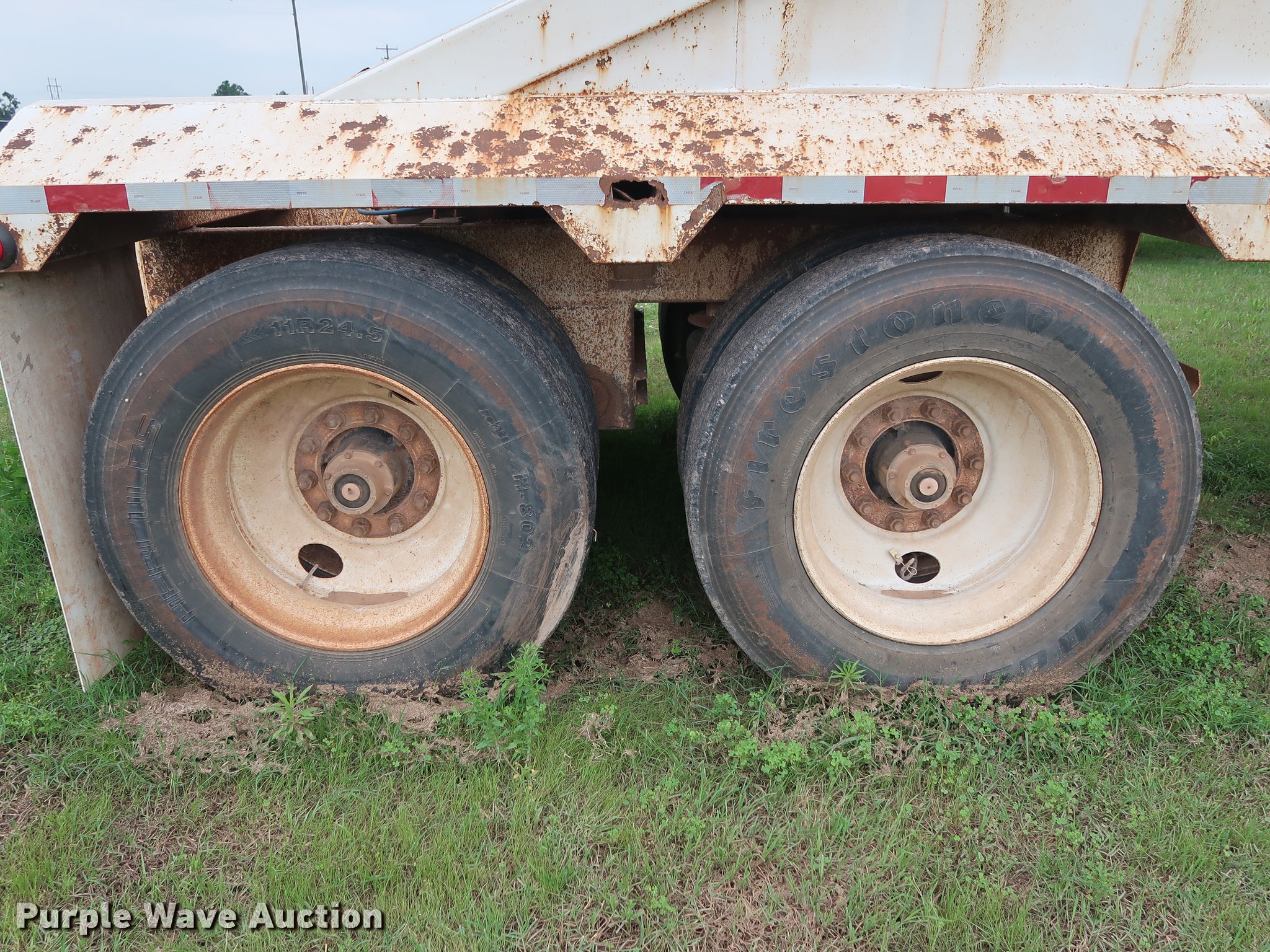 Purple Wave is selling a used Bottom Dump Trailer in Oklahoma. This item is a 2009 CTS BDT-40 bottom dump trailer with the following: 40'L x 96"W overall, 54" side height, 12" side board height, Single hydraulic cylinder, Air operated clamshell gate, Trailer controls, Rear push block, Electric roll tarp, Steel construction, Dual leg landing gear, Air suspension, Air brakes, Tandem axle, Steel wheels, 11R24.5 tires, GVWR 68,000 lbs, GAWR 22,500 lbs, Unit# 337-64