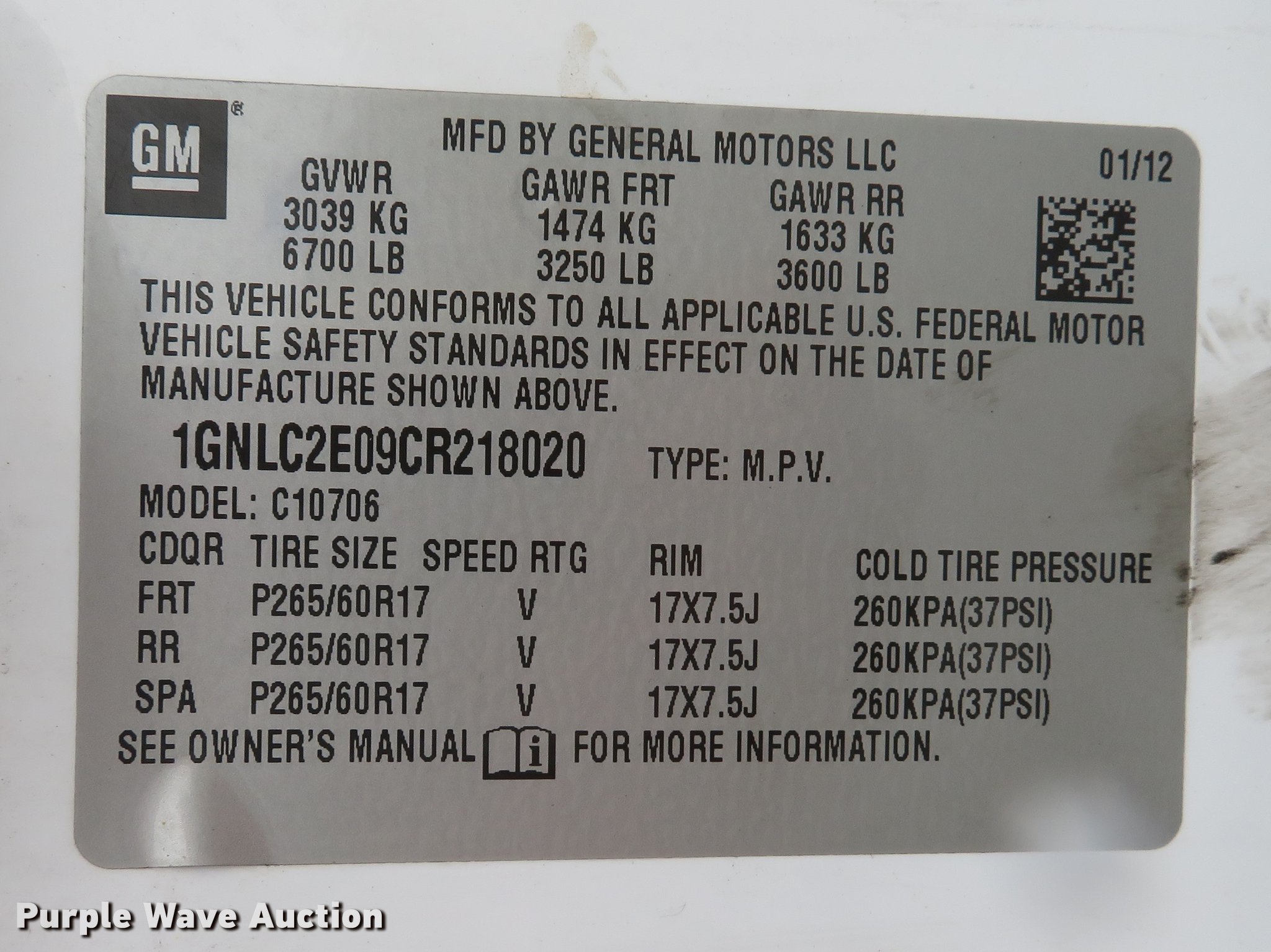 Purple Wave is selling a used Passenger Vehicle in Missouri. This item is a 2012 Chevrolet Tahoe Police SUV with the following: 129,711 miles on odometer, 5.3L V8 OHV 16V FFV gas engine, Automatic transmission, AC and heat, Cruise, Power windows, locks, and seat, 265/60R17 tires, Dead battery, Check airbag light on