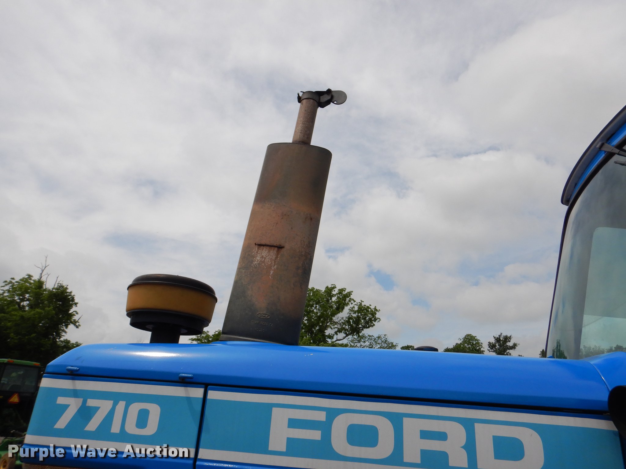 Purple Wave is selling a used Tractor in Missouri. This item is a Ford 7710 tractor with the following: 4,217 hours on meter, Ford four cylinder diesel engine, 97 HP, Manual transmission, 8F-8R gears, AC and heat, Three point, 540/1000 PTO, (2) rear hydraulic remote sets, (6) suitcase weights, Rear wheel weights, 10.00-16 front tires, 18.4-38 dual rear tires, AC does not blow cold, Serial 2709818