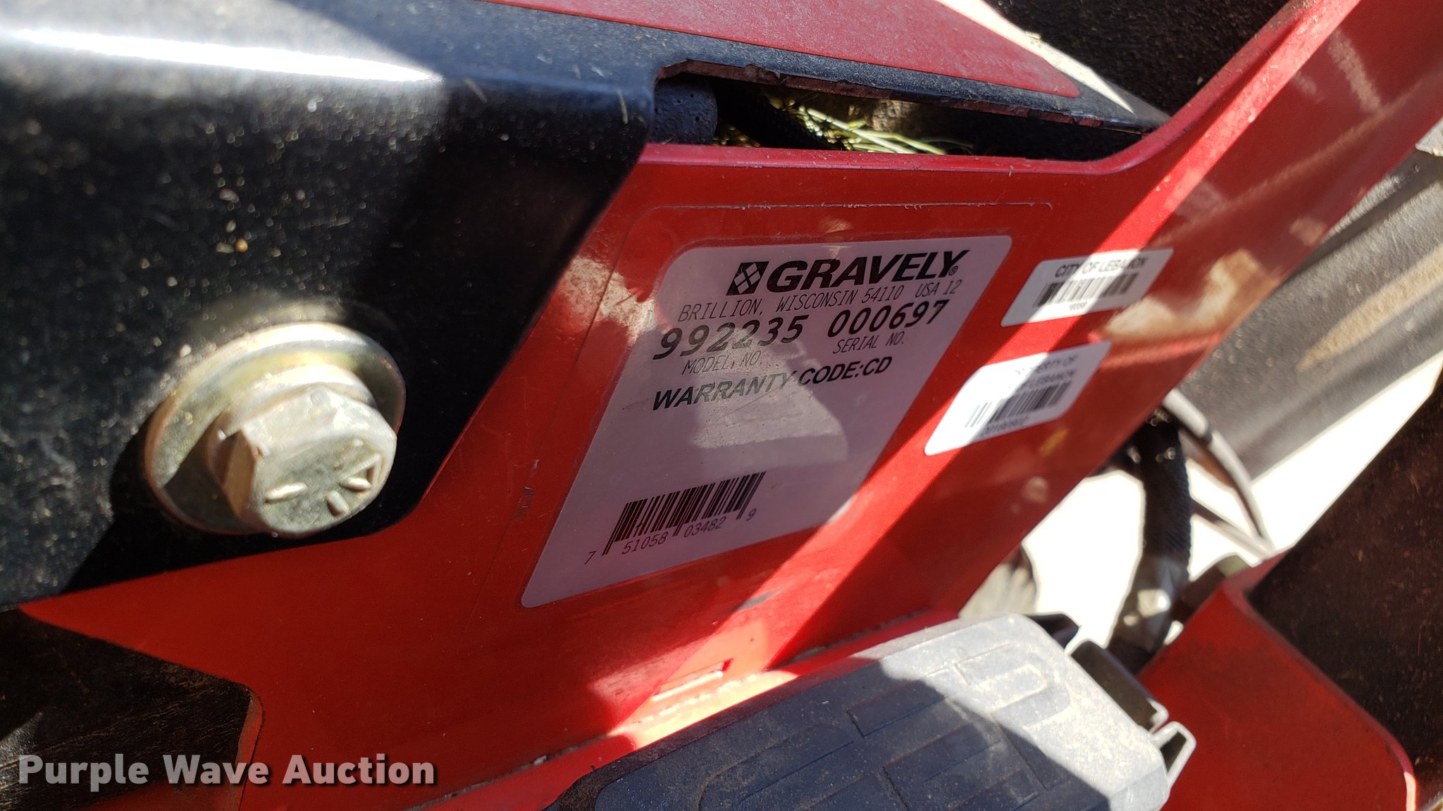 Gravely Pro-Turn 460 ZTR lawn mower. 1,277 hours on meter, 60" cut, Kawasaki 999cc two cylinder gas engine, Hydrostatic transmission, 15x6-6/4.50 front tires, 24x11.50-12 rear tires, Serial 000697. City of Lebanon. Lebanon, MO 65536