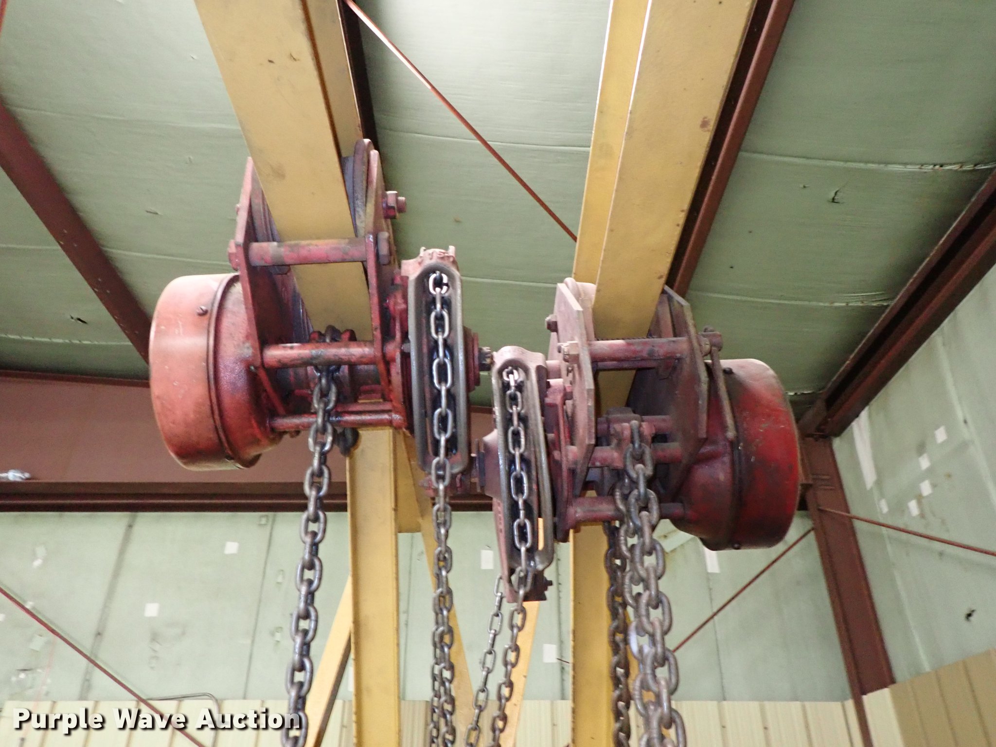 Purple Wave is selling a used Tools in Kansas. This item is a (2) A-frame hoists with the following: 10'W x 8'H, National hoists, One ton capacity