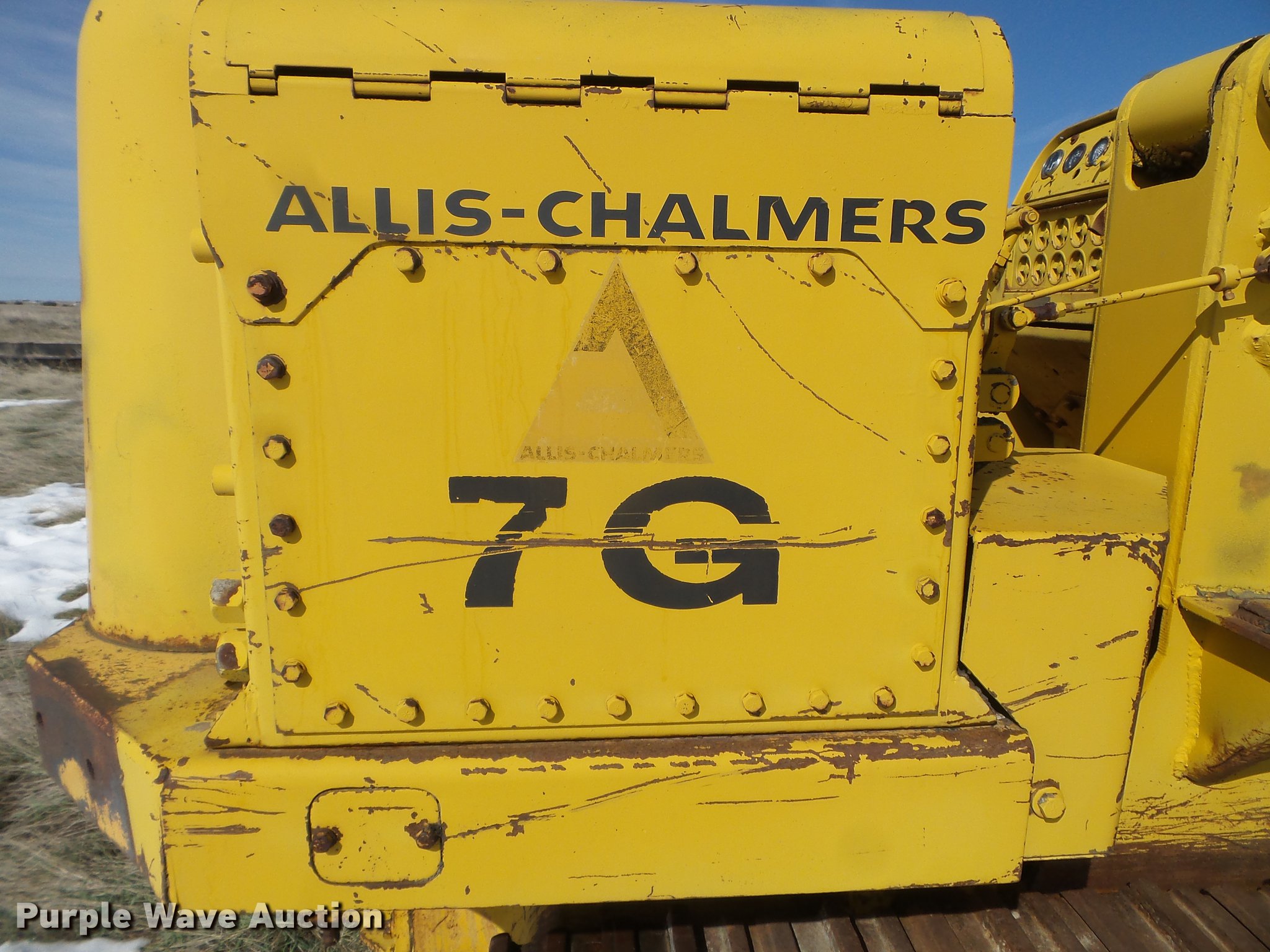 Purple Wave is selling a used Crawler Loader in South Dakota. This item is a 1965 Allis Chalmers HD-7G track loader with the following: 187 hours on meter, Four cylinder diesel engine, Powershift transmission, 2F-2R gears, Clutch brake steering, 80"W bucket, (7) bolt-on teeth, Six bottom rollers, Track guards, 15"W triple grouser track pads, Unknown operating condition, Serial HD7G-24510