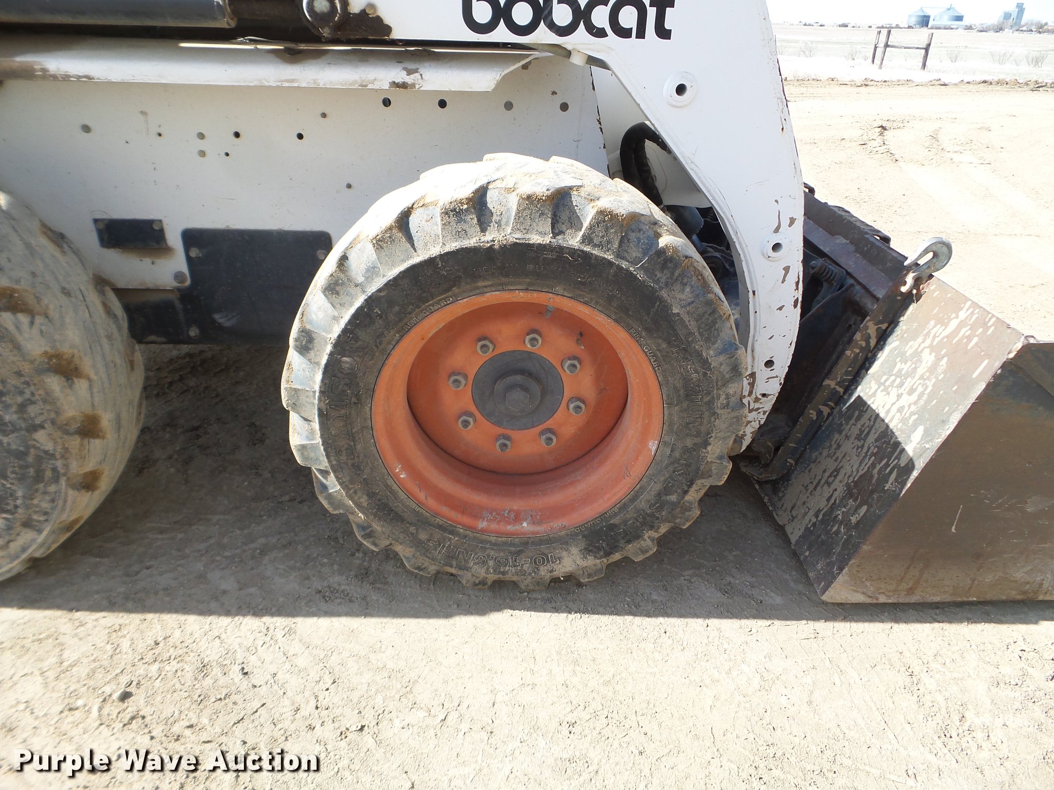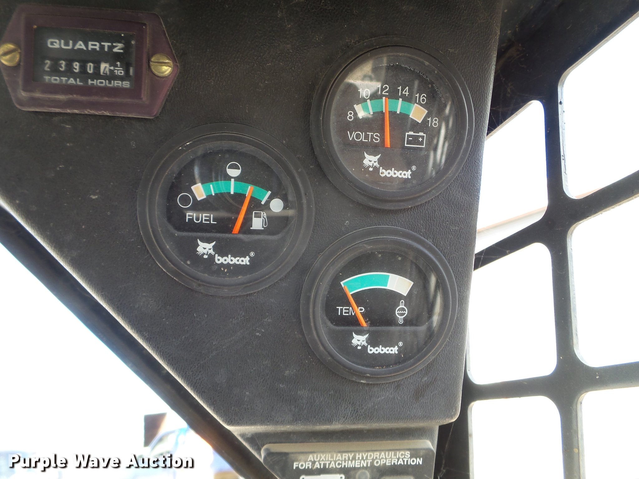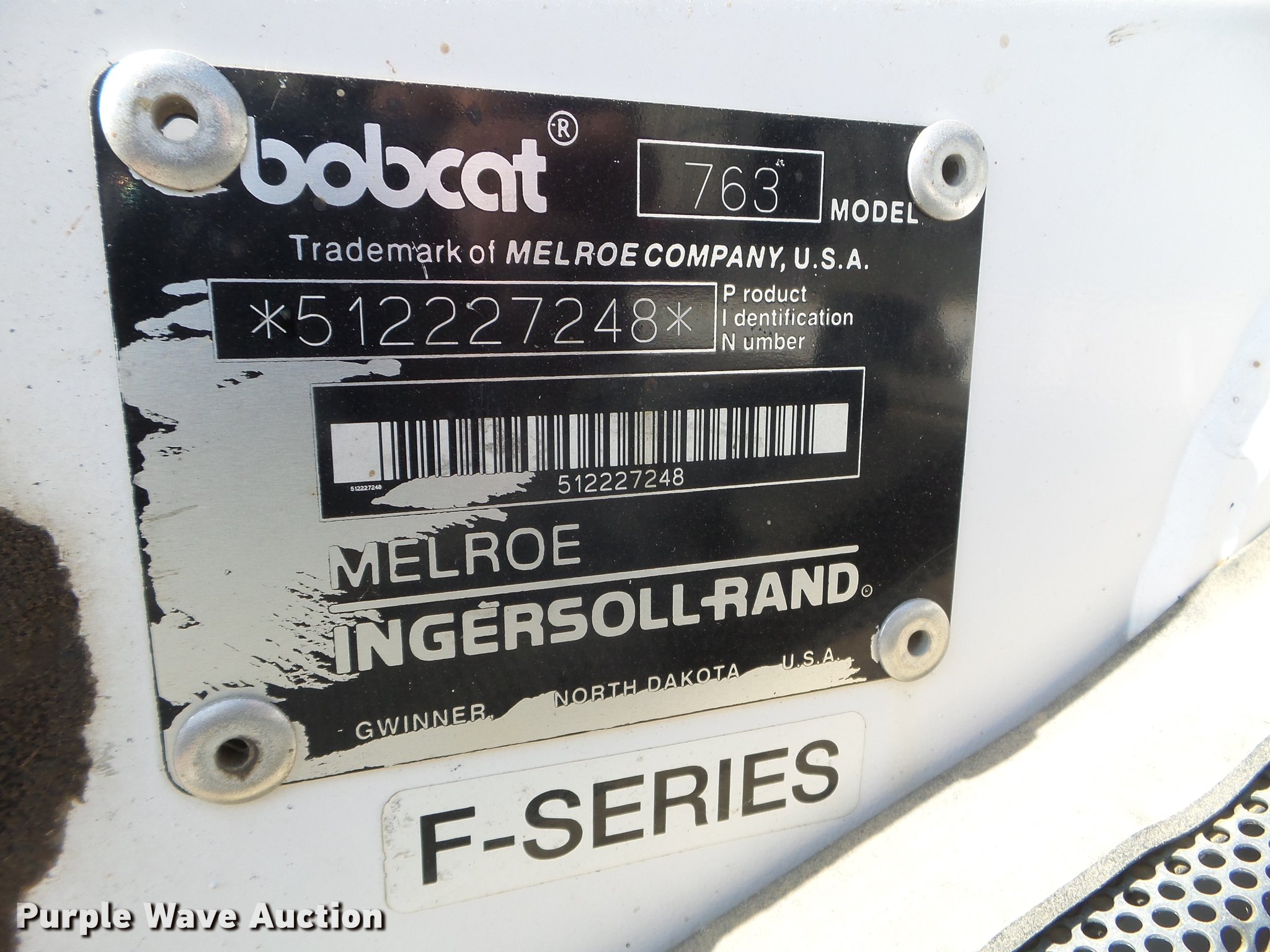 Purple Wave is selling a used Skid Steer Loader in South Dakota. This item is a 1997 Bobcat 763 skid steer with the following: 2,390 hours on meter, Ingersoll Rand four cylinder diesel engine, Hydrostatic transmission, Enclosed cab, Foot bucket controls, Front and rear work lights, Auxiliary hydraulics, 68"W bucket, Bolt-on cutting edge, 10-16.5 tires, Serial 512227248