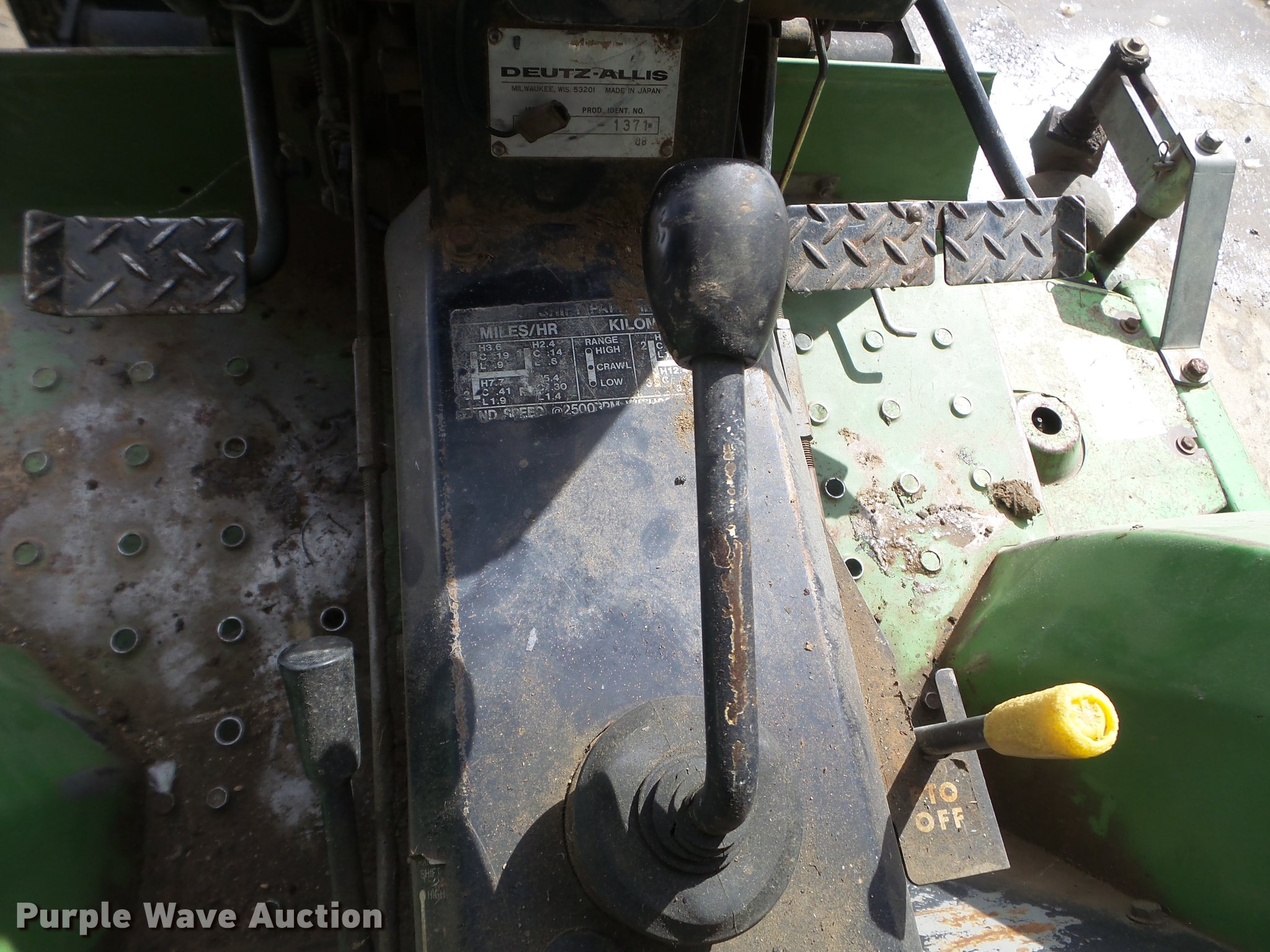 Purple Wave is selling a used Tractor in South Dakota. This item is a Deutz Allis 5215 tractor with the following: 59 hours on meter, Three cylinder diesel engine, 18 HP, Synchro shift transmission, 12F-3R gears, 62"W mower deck, Three point, 540 PTO, Sovema tiller, 48"W, Three point, 5.00-10 front tires, 9.5-16 rear tires, Serial 1371