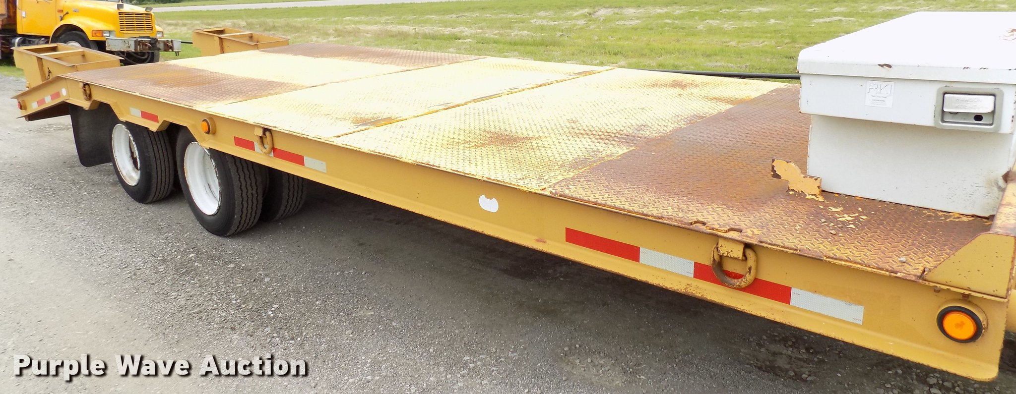 Purple Wave is selling a used Equip. Trailer in Oklahoma. This item is a 2007 Belshe DT255 equipment trailer with the following: 31' overall length, 25'L x 96"W deck, 5'L ramps, Single leg landing gear, Spring suspension, Air brakes, Tandem axle, Steel wheels, 215/75R17.5 tires