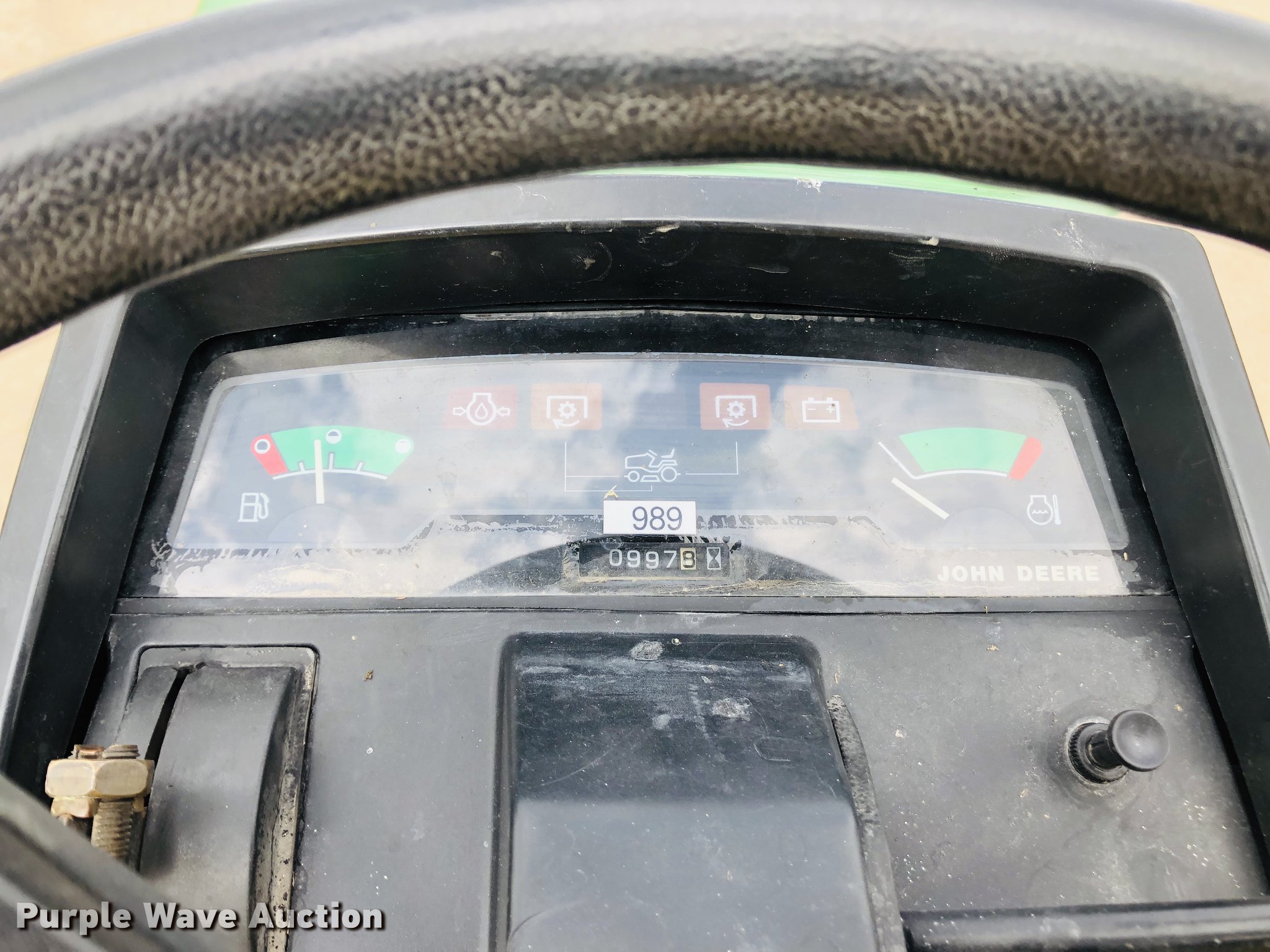 Purple Wave is selling a used Commercial Turf Mower in Illinois. This item is a 1996 John Deere 445 lawn mower with the following: 998 hours on meter, 60" cut, Kawasaki 617cc two cylinder gas engine, Serial SKA61765G2RA, Automatic transmission, Cruise, Multitrac 18x8.50-8 NHS front tires, Multitrac 12.00-12 NHS rear tires, Serial 400445C045651