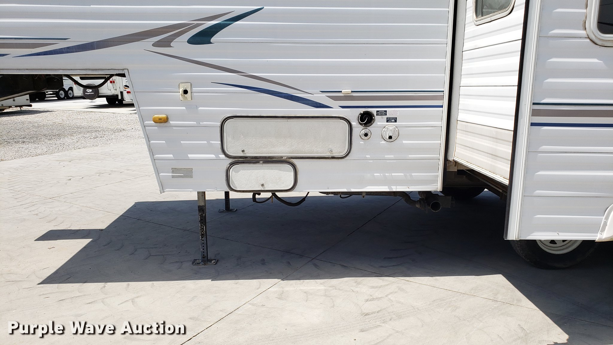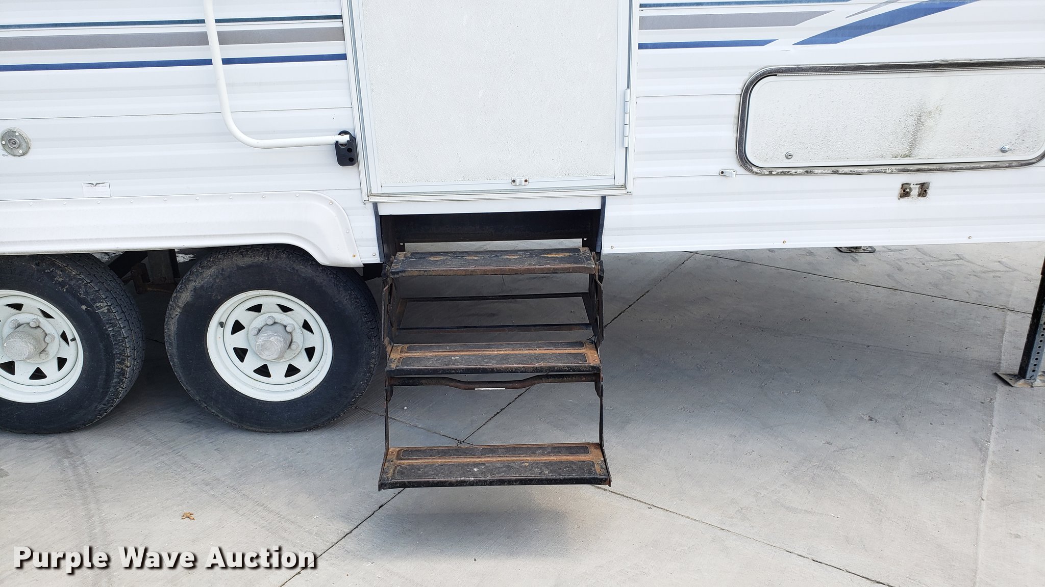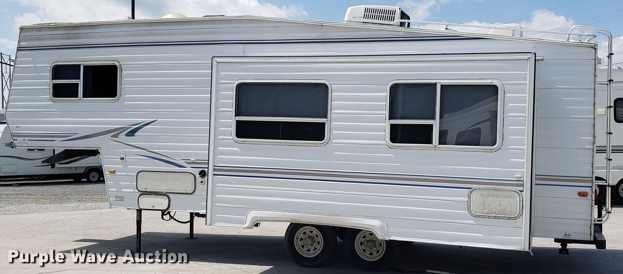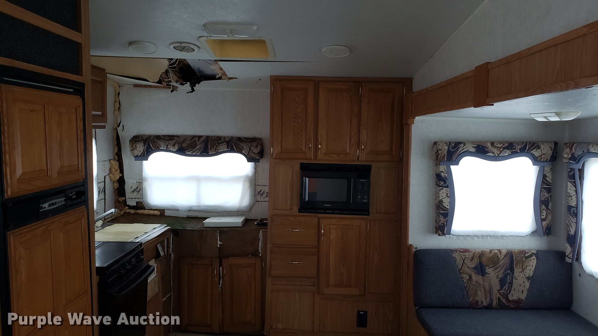 Purple Wave is selling a used RV in Missouri. This item is a 2000 Dutchman camper with the following: 28'L, Slide-out, Kitchen, Sink, Refrigerator/freezer, Oven, Propane stove, Bathroom, Spring suspension, Electric brakes, Tandem axle, 225/75R15 tires, Roof/water damage, Unknown operating condition of appliances and accessories