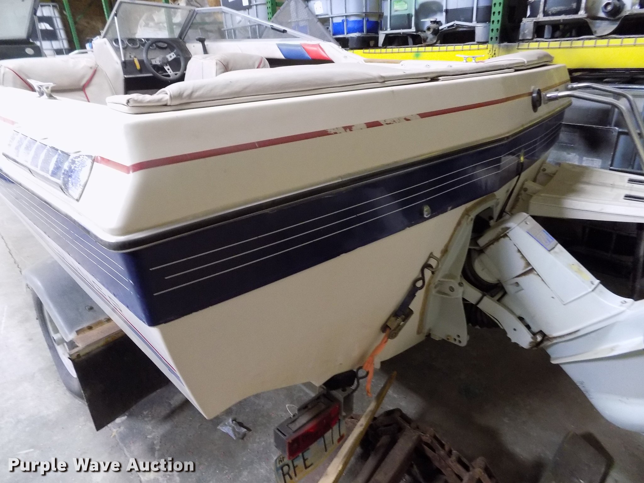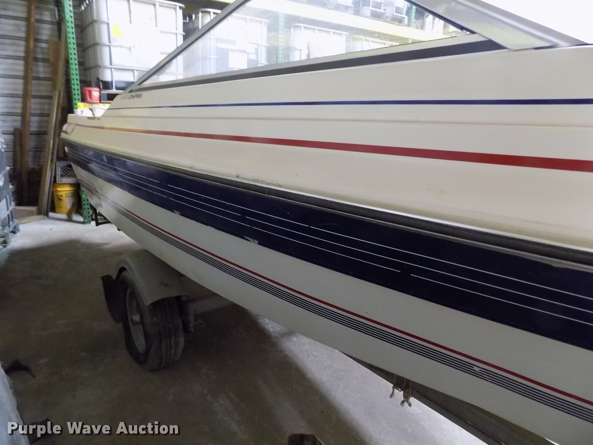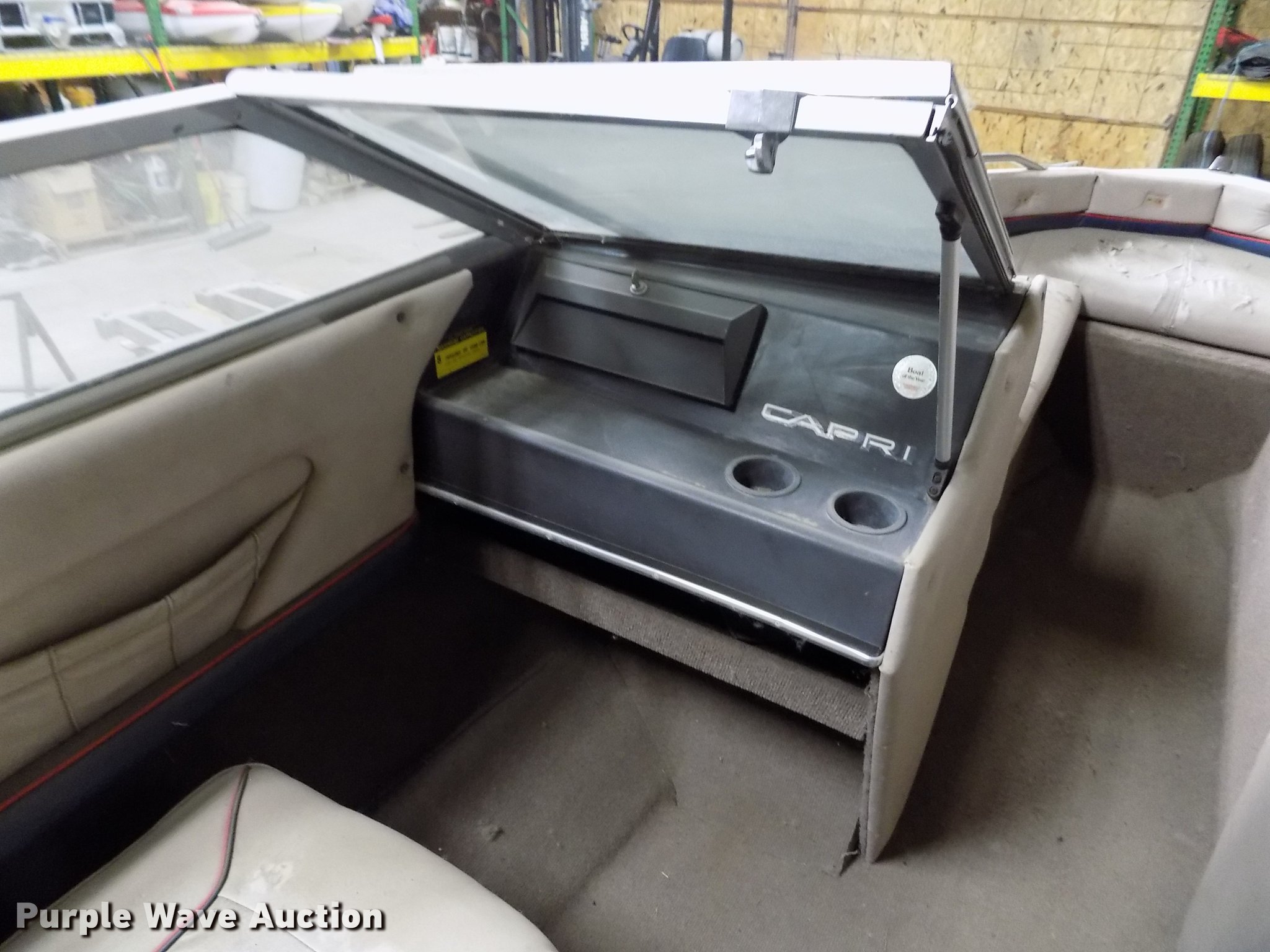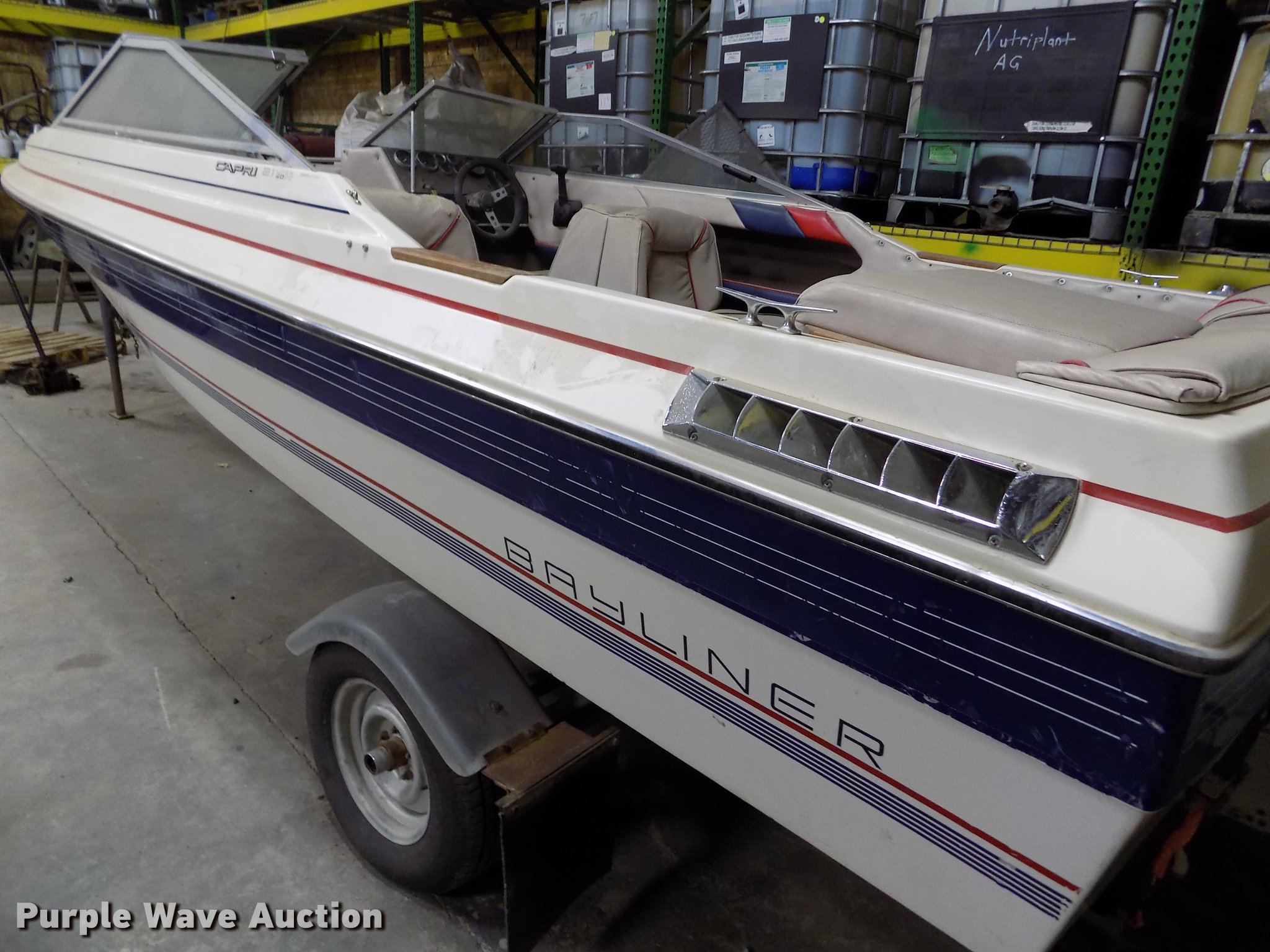 Purple Wave is selling a used Boat in Kansas. This item is a 1985 Bayliner Capri boat with trailer with the following: 18.5'L, Volvo Penta AQ125A 2.1L four cylinder inboard gas engine, 117 HP, Eight person capacity, Power trim, Unit has not been used in approx. 10 years, Hull ID BLIB86CXG485, Escort boat trailer, 195/75R14 tires