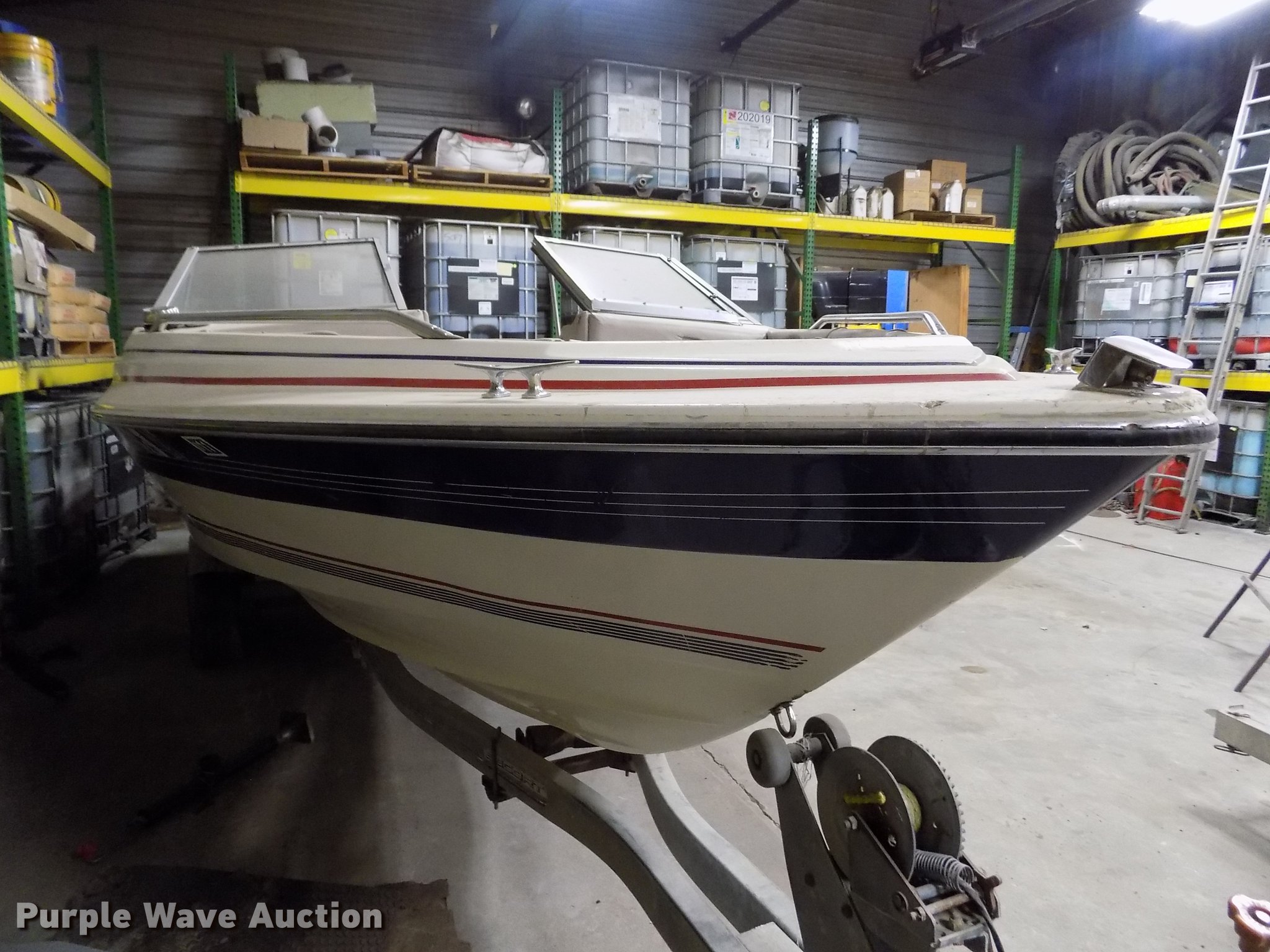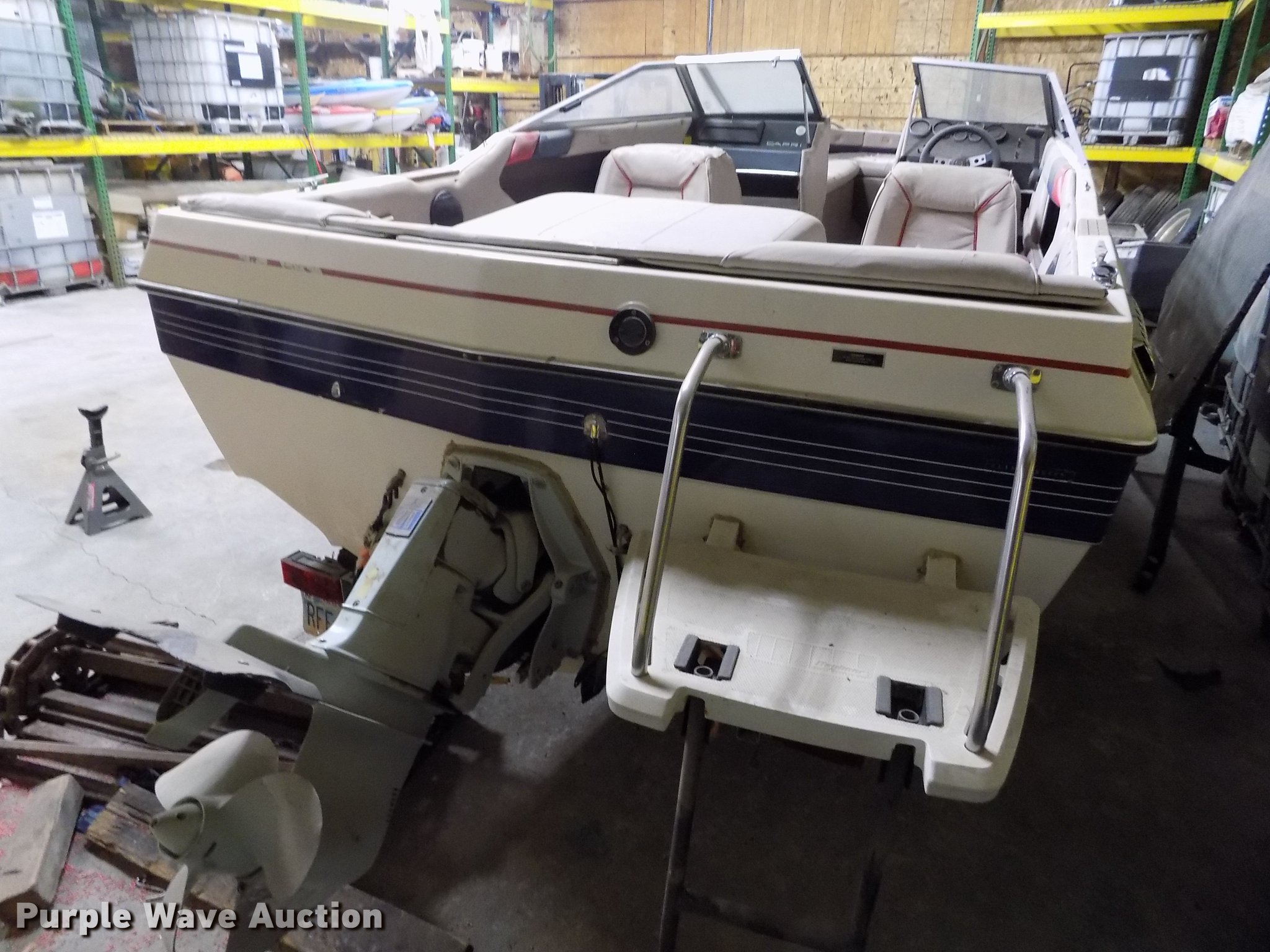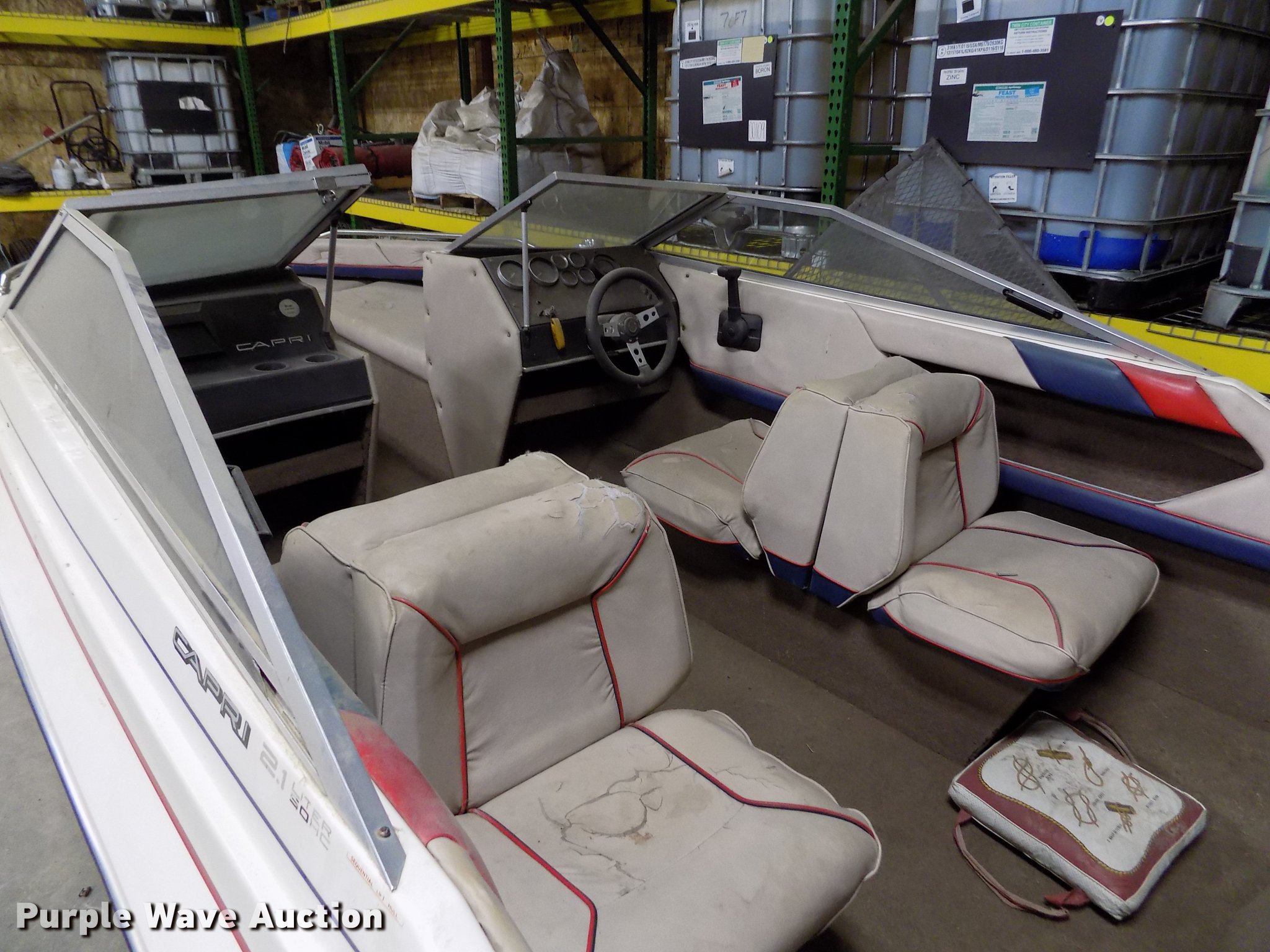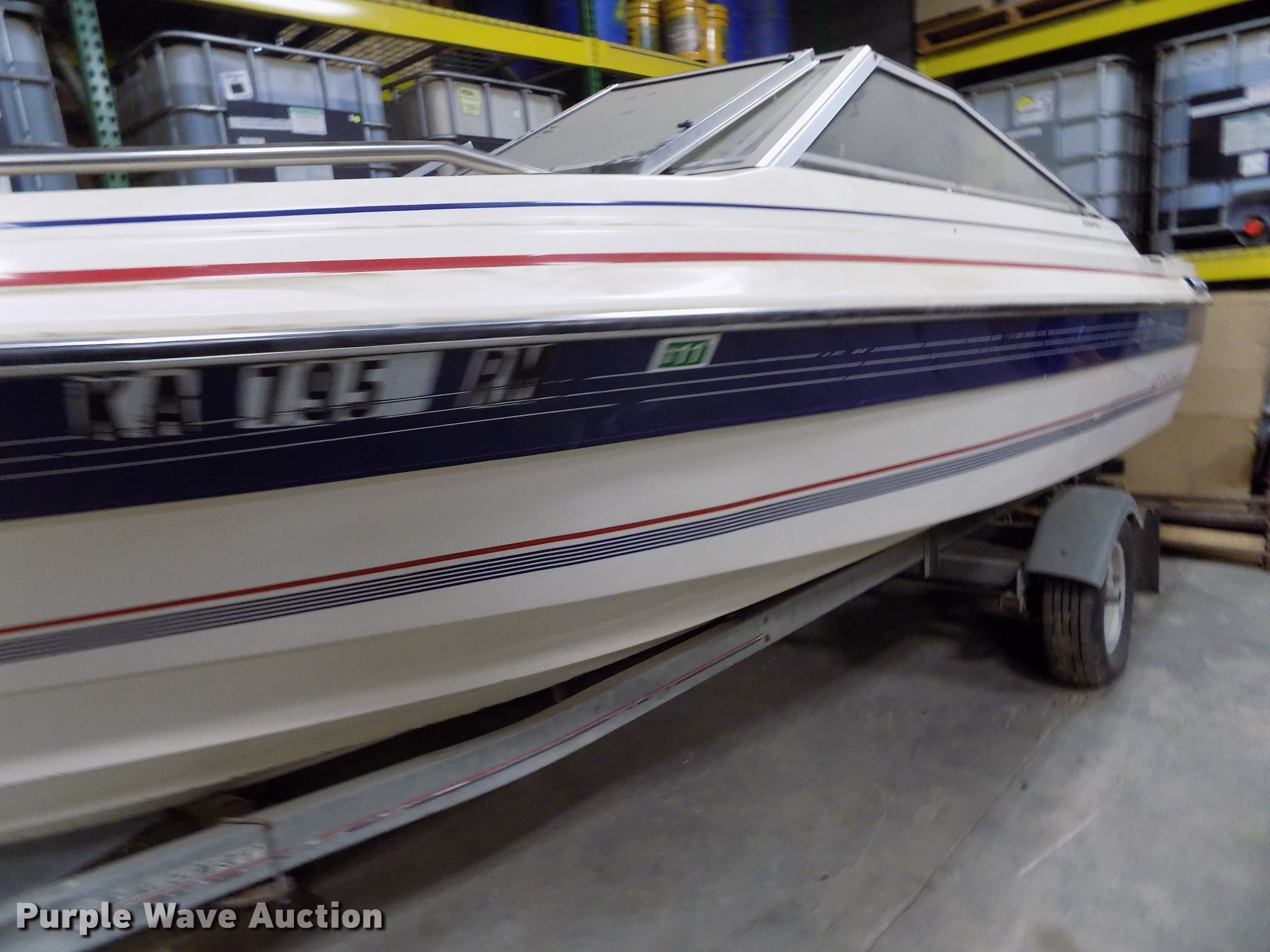 Purple Wave is selling a used Boat in Kansas. This item is a 1985 Bayliner Capri boat with trailer with the following: 18.5'L, Volvo Penta AQ125A 2.1L four cylinder inboard gas engine, 117 HP, Eight person capacity, Power trim, Unit has not been used in approx. 10 years, Hull ID BLIB86CXG485, Escort boat trailer, 195/75R14 tires