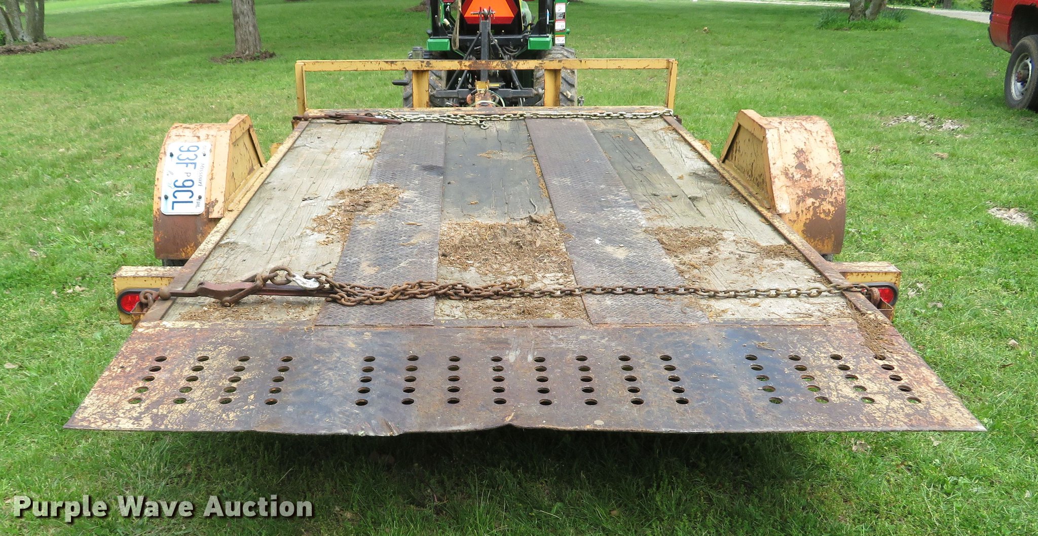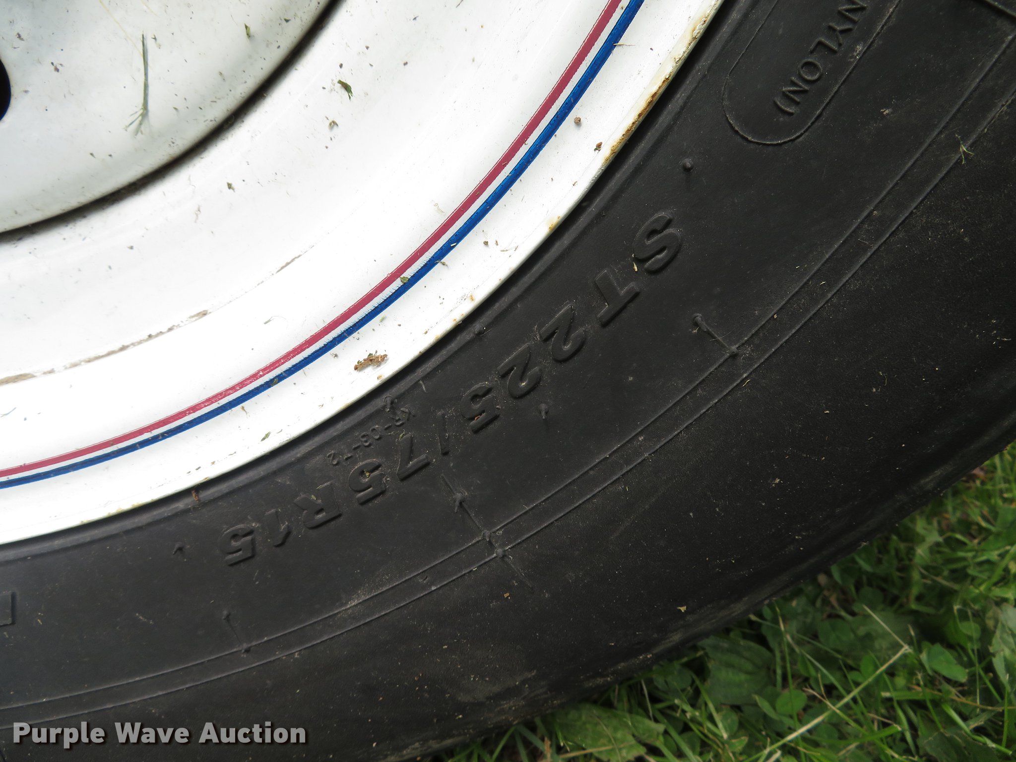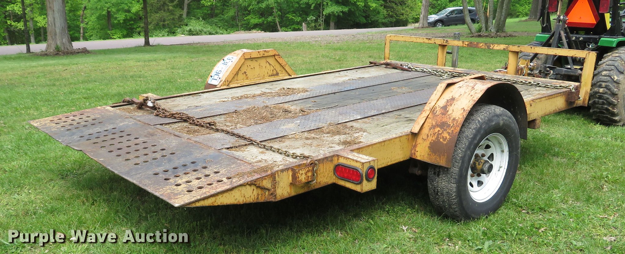 Purple Wave is selling a used Car or Utility Trailer in Missouri. This item is a 2006 Region Welding JJT utility trailer with the following: 11'9"L x 76.5"W wood deck, 2" ball hitch, Jack stand, Spring suspension, Hydraulic brakes, Steel wheels, ST225/75R15 tires, GVWR 6,000 lbs, (2) chains and binders included, Jack stand caster damaged