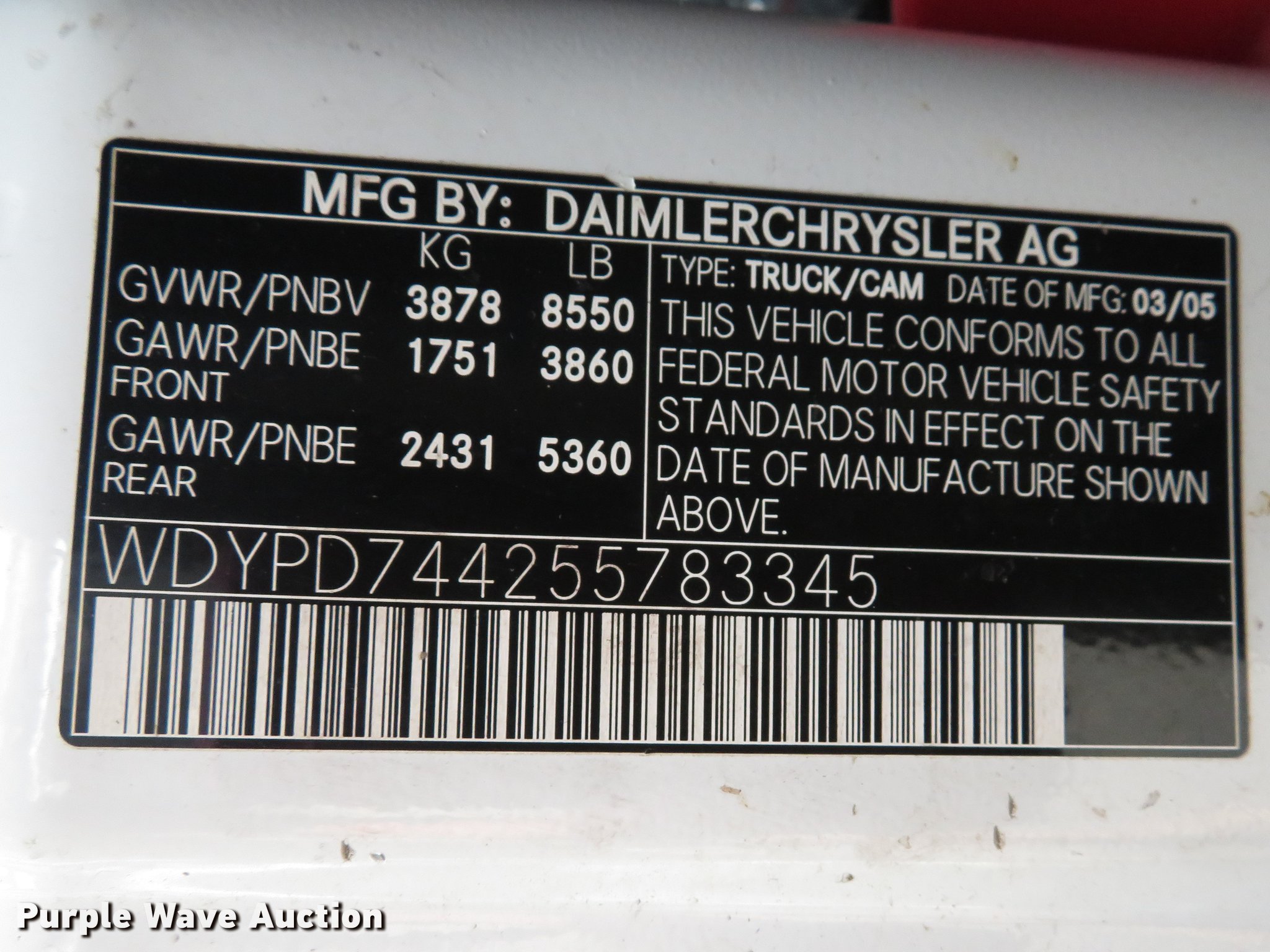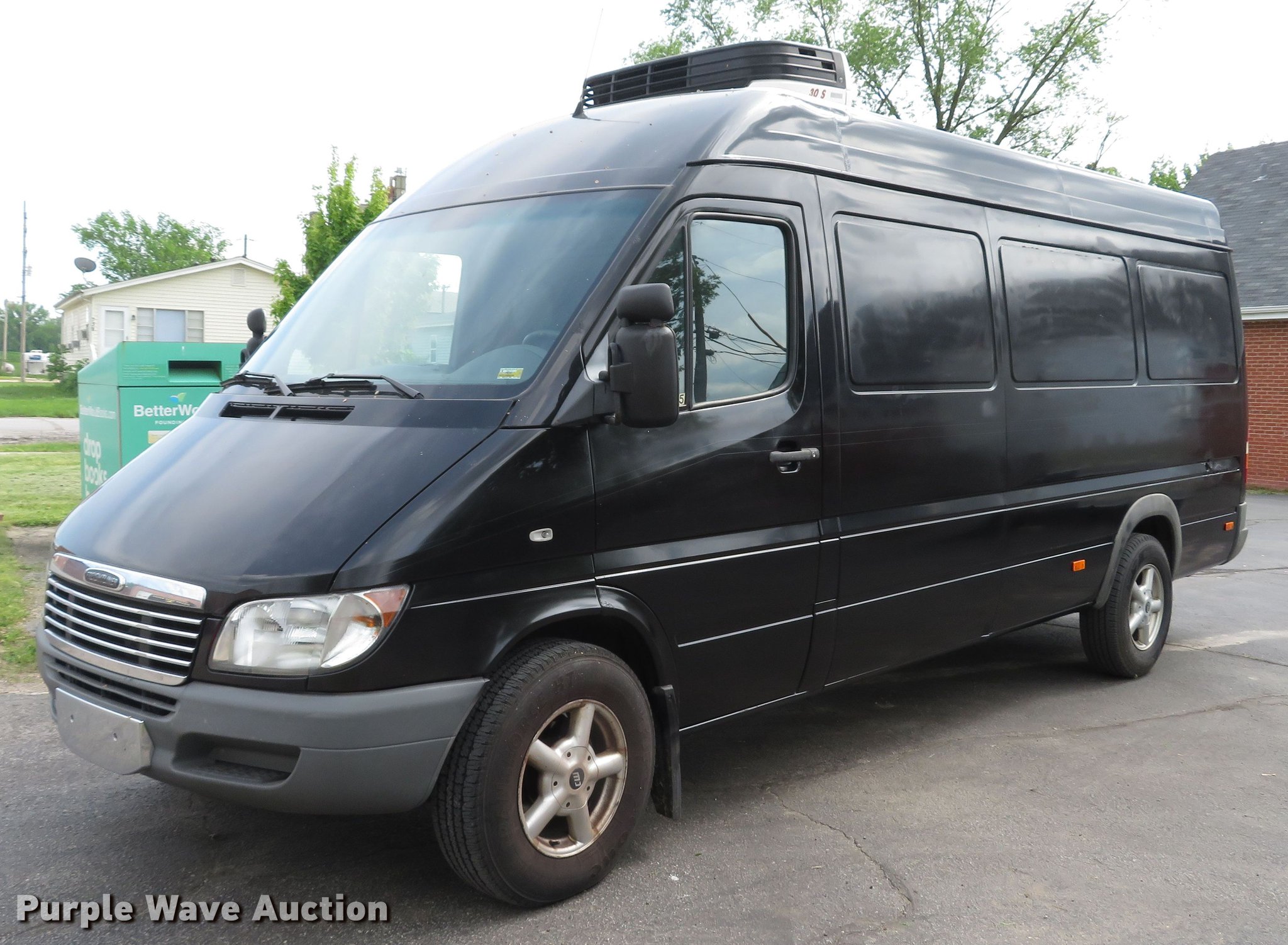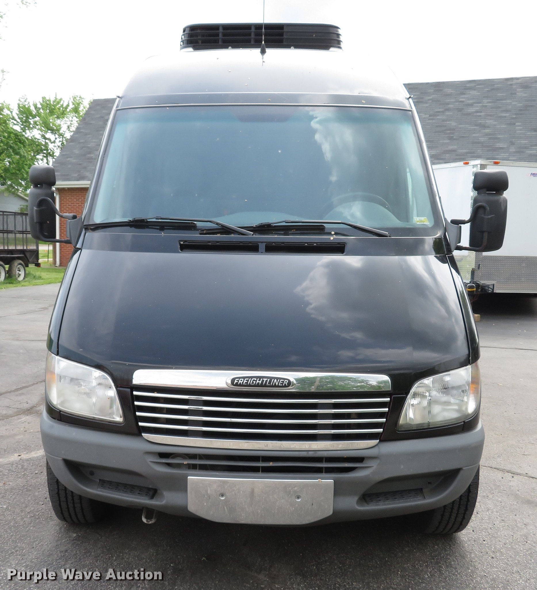Purple Wave is selling a used Delivery Truck or Van in Missouri. This item is a 2005 Freightliner Sprinter refrigerated delivery van with the following: 282,650 miles on odometer, Mercedes-Benz 2.7L L5 diesel engine, Automatic transmission, Single axle, AC and heat, Carrier cooling unit, Spring suspension, Hydraulic brakes, 158" wheelbase, LT225/75R16 tires, GVWR 8,550 lbs, Rear doors do not seal, Check engine light on, SRS/check airbag light on
