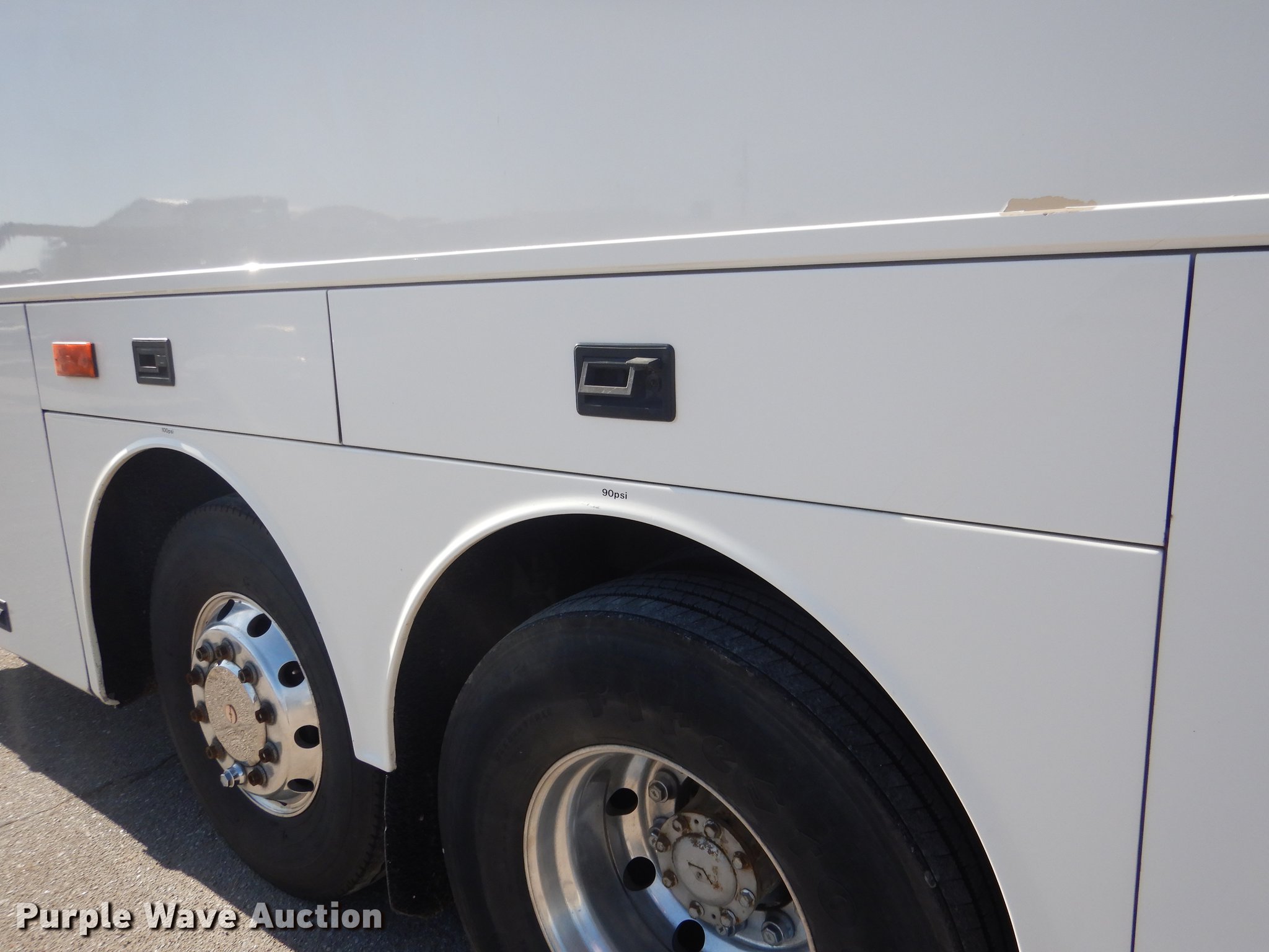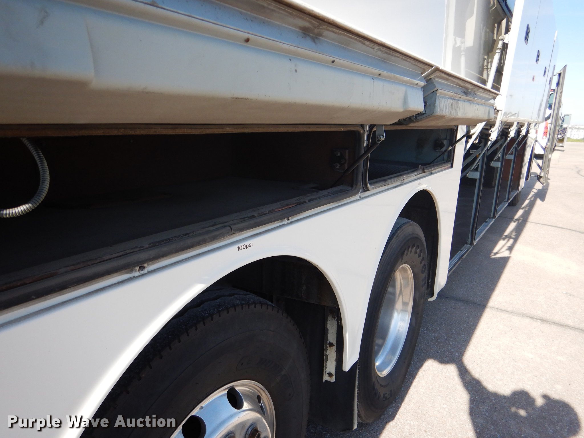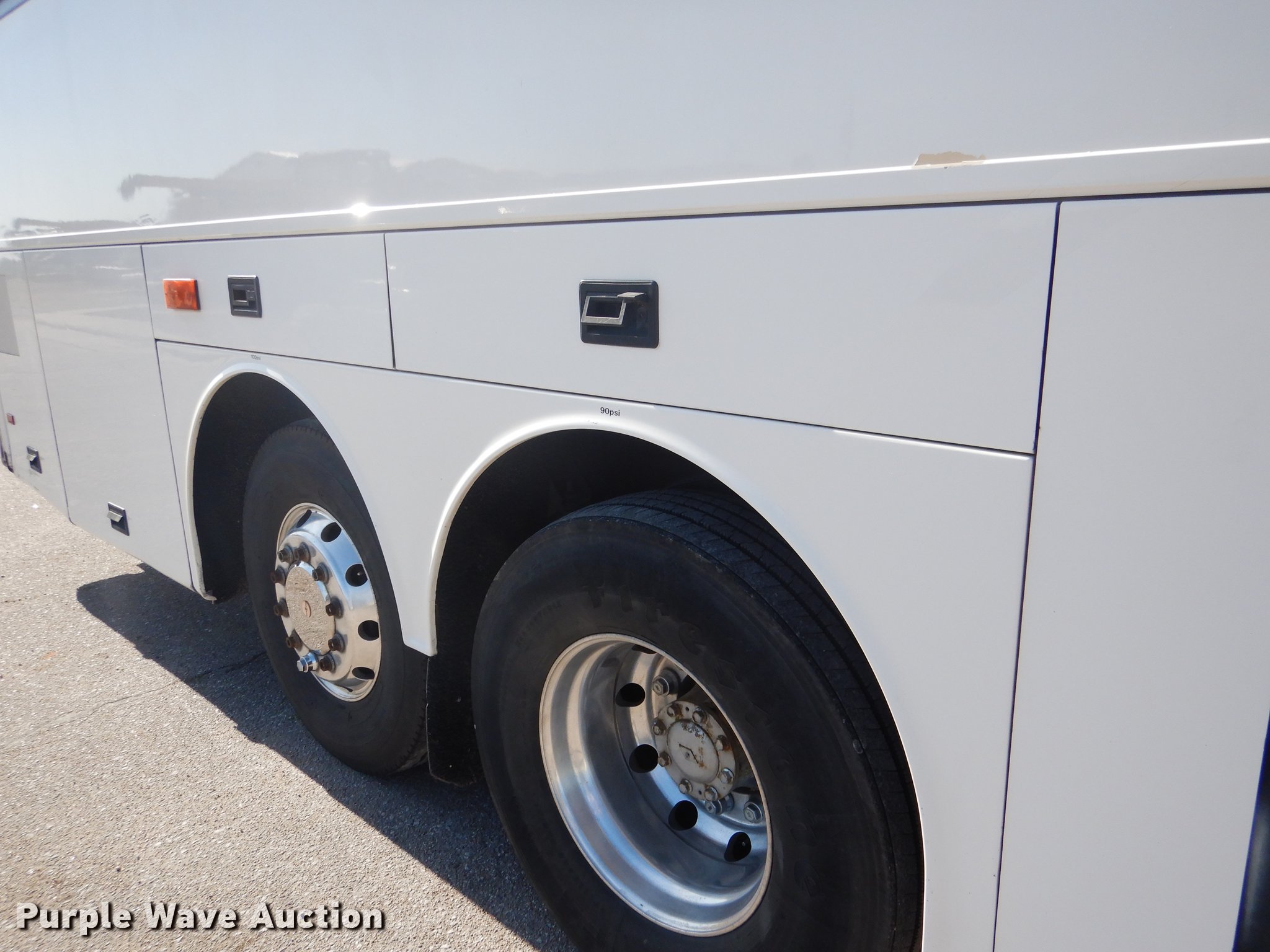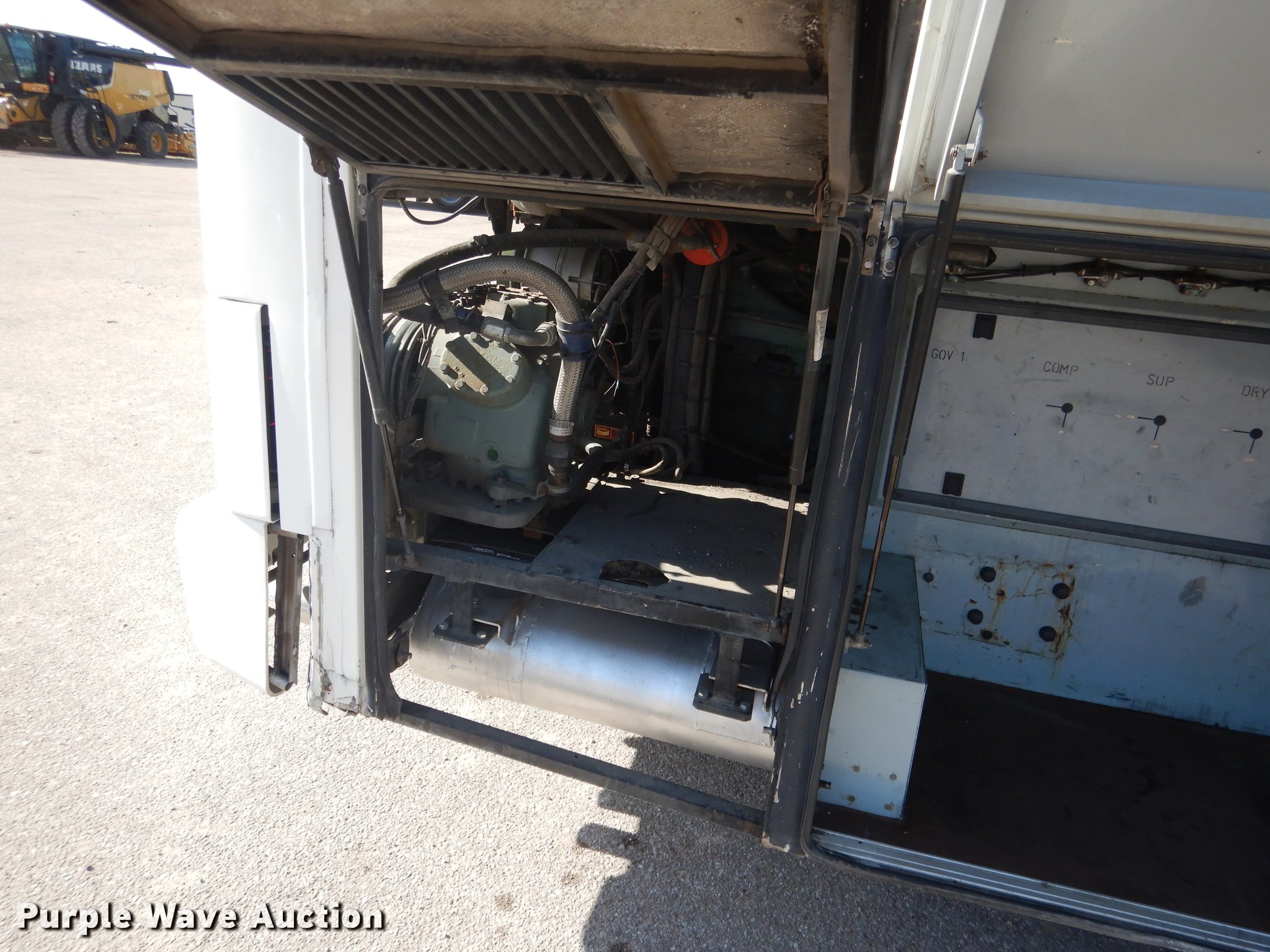 2000 Van Hool T2145 coach bus. 841,881 miles on odometer, 1,859 hours on meter, Detroit Diesel Series 60 12.7L L6 diesel engine, Allison automatic transmission, Tandem axle, AC and heat, Power heated mirrors, Auxiliary controls, Brake controls, Electric passenger sliding door, On-board restroom, Overhead storage, 57 passenger capacity, (30) adult seats, Intercom, Televisions, Underside luggage storage, 289" wheelbase, Air suspension, Air brakes, 315R22.5 tires, GVWR 49,350 lbs, Unknown operating condition of restroom, Unknown operating condition of televisions, Unknown operating condition of intercom, Hour meter replaced. Nebraska title. YE2TC12B2Y2043916. Coach Masters. 6410 US-30. Kearney, NE 68847
