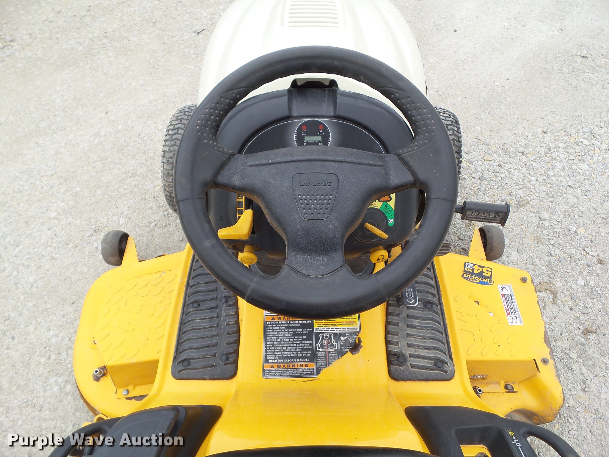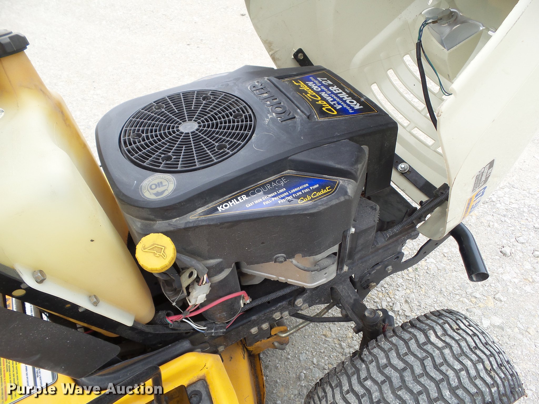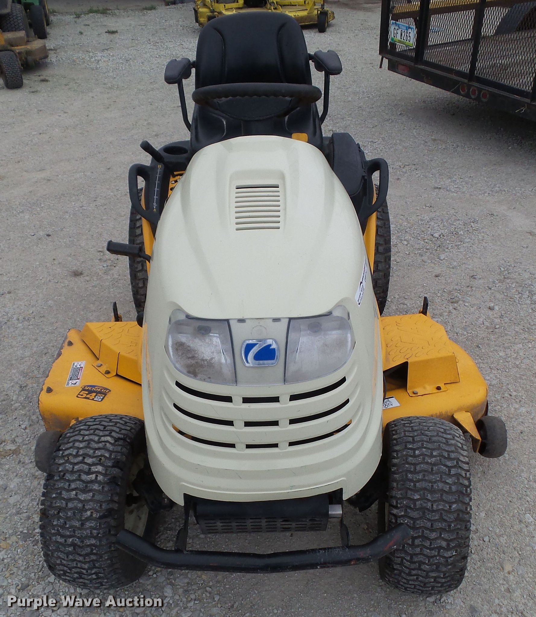 Purple Wave is selling a used Lawn Mower in Iowa. This item is a 2008 Cub Cadet GT1554 lawn mower with the following: 153 hours on meter, 54" cut, Kohler two cylinder gas engine, 27 HP, Hydrostatic transmission, 16x7.50-8 NHS front tires, 23x10.50-12 NHS rear tires