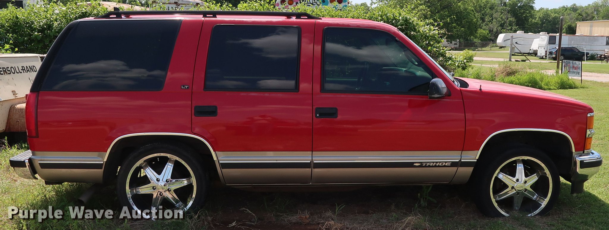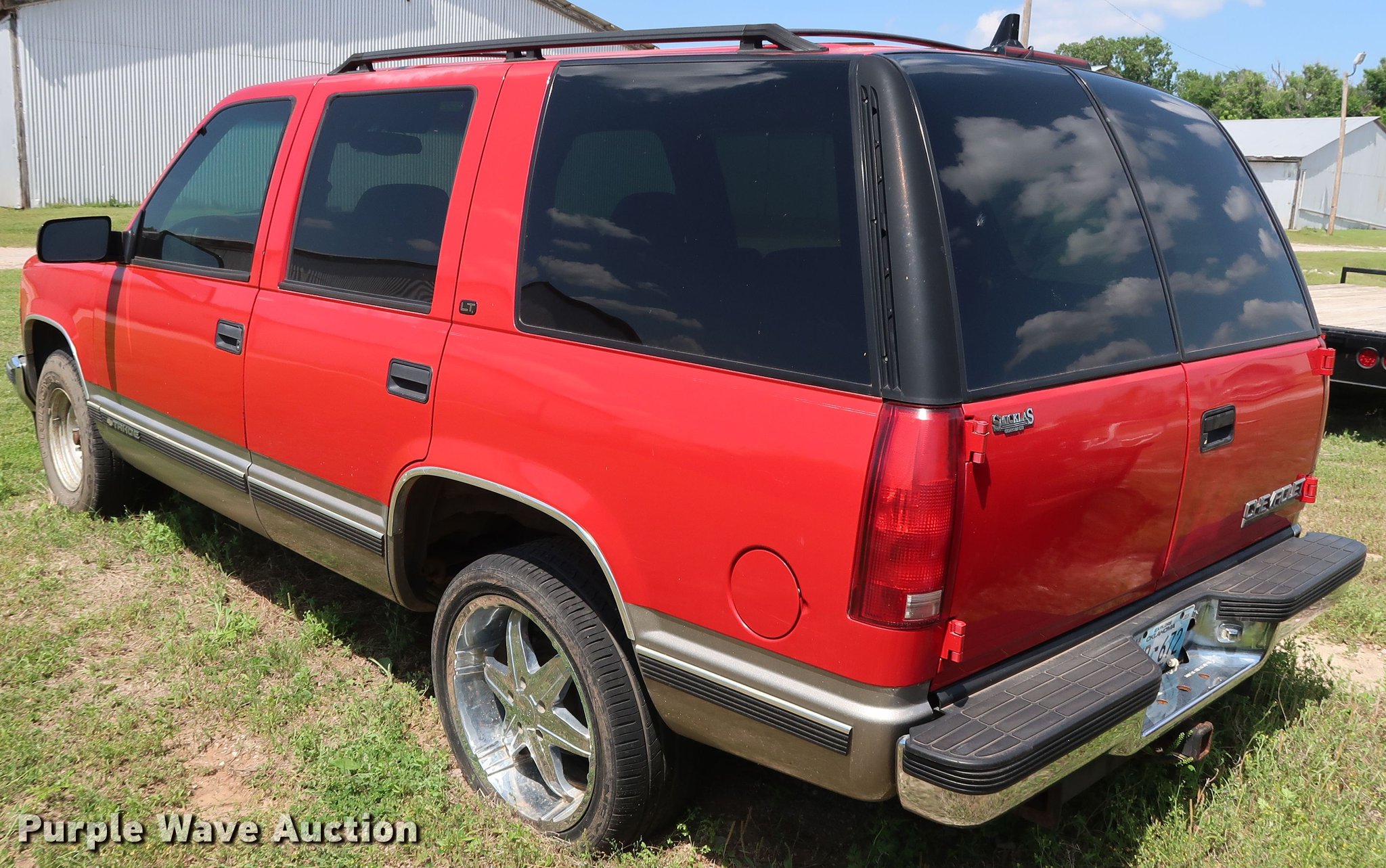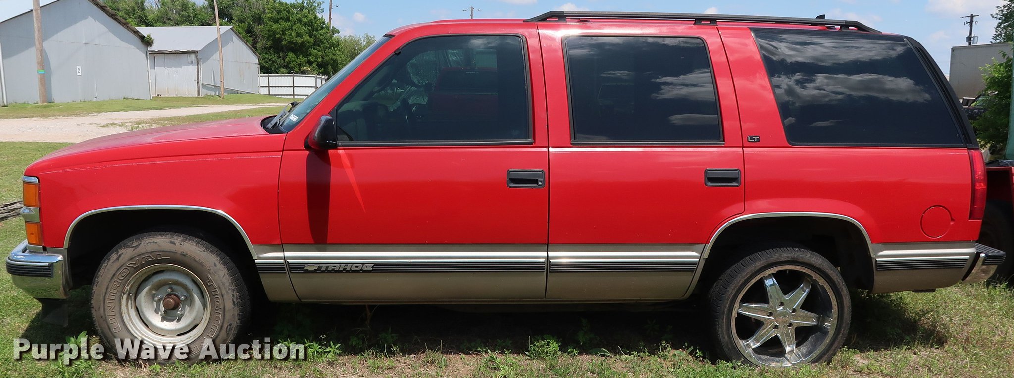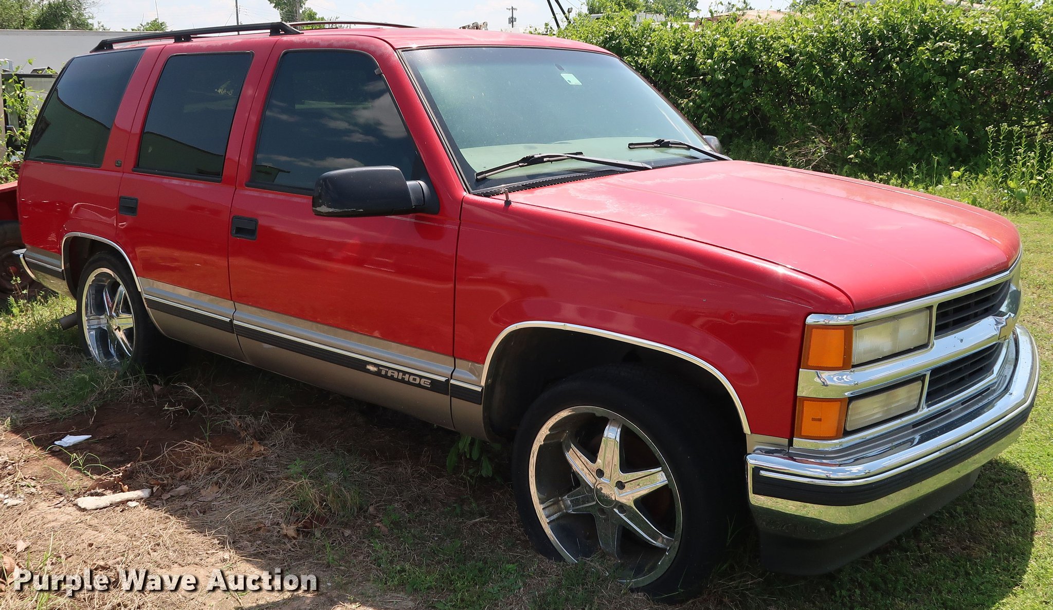 Purple Wave is selling a used Passenger Vehicle in Oklahoma. This item is a 1999 Chevrolet Tahoe LT SUV with the following: 230,564 miles on odometer, 5.7L V8 OHV 16V gas engine, Automatic transmission, AC and heat, Cruise, Power windows, locks, and seat, Milanni wheels, 275/40ZR20 tires, Unknown operating condition