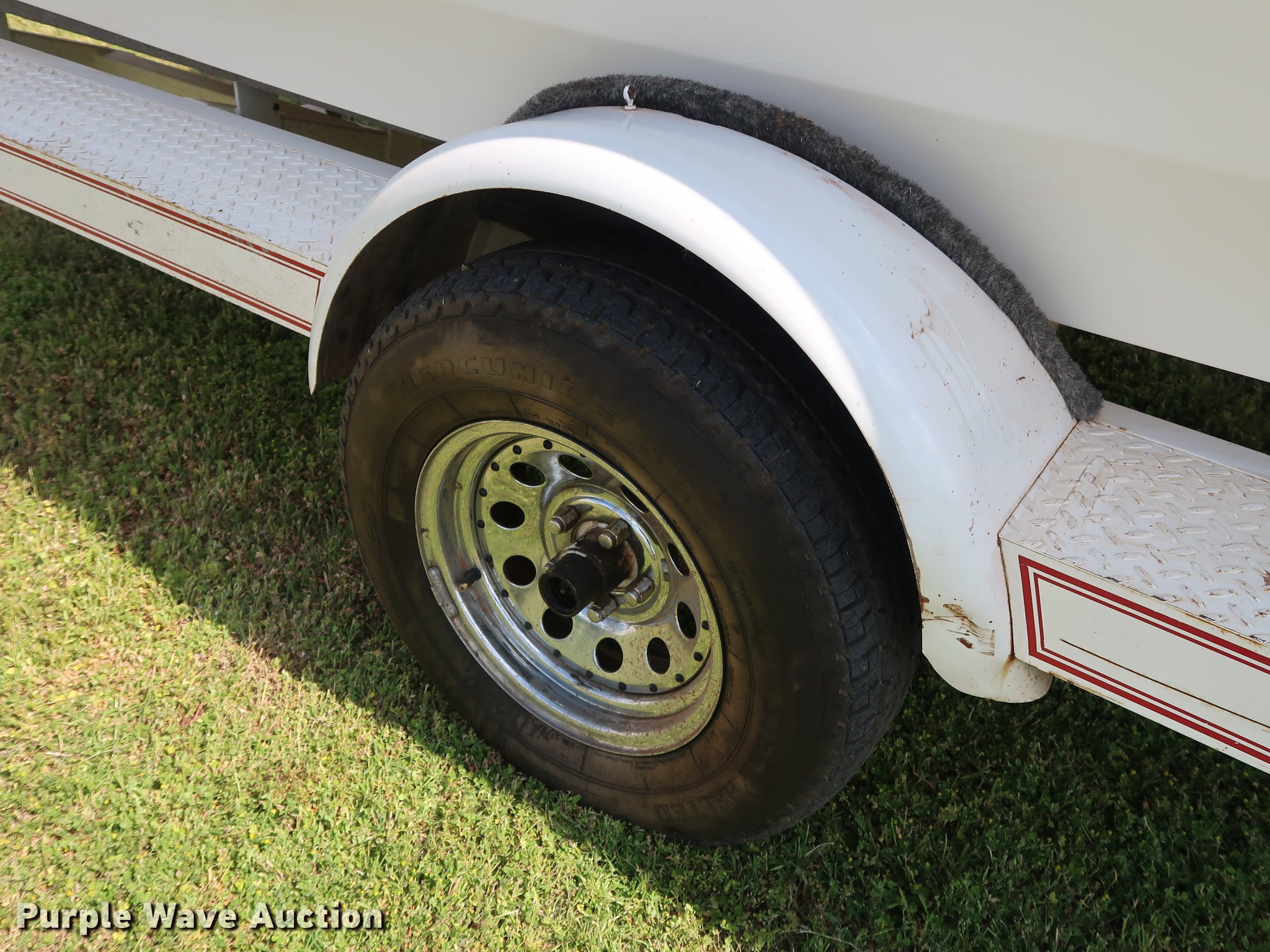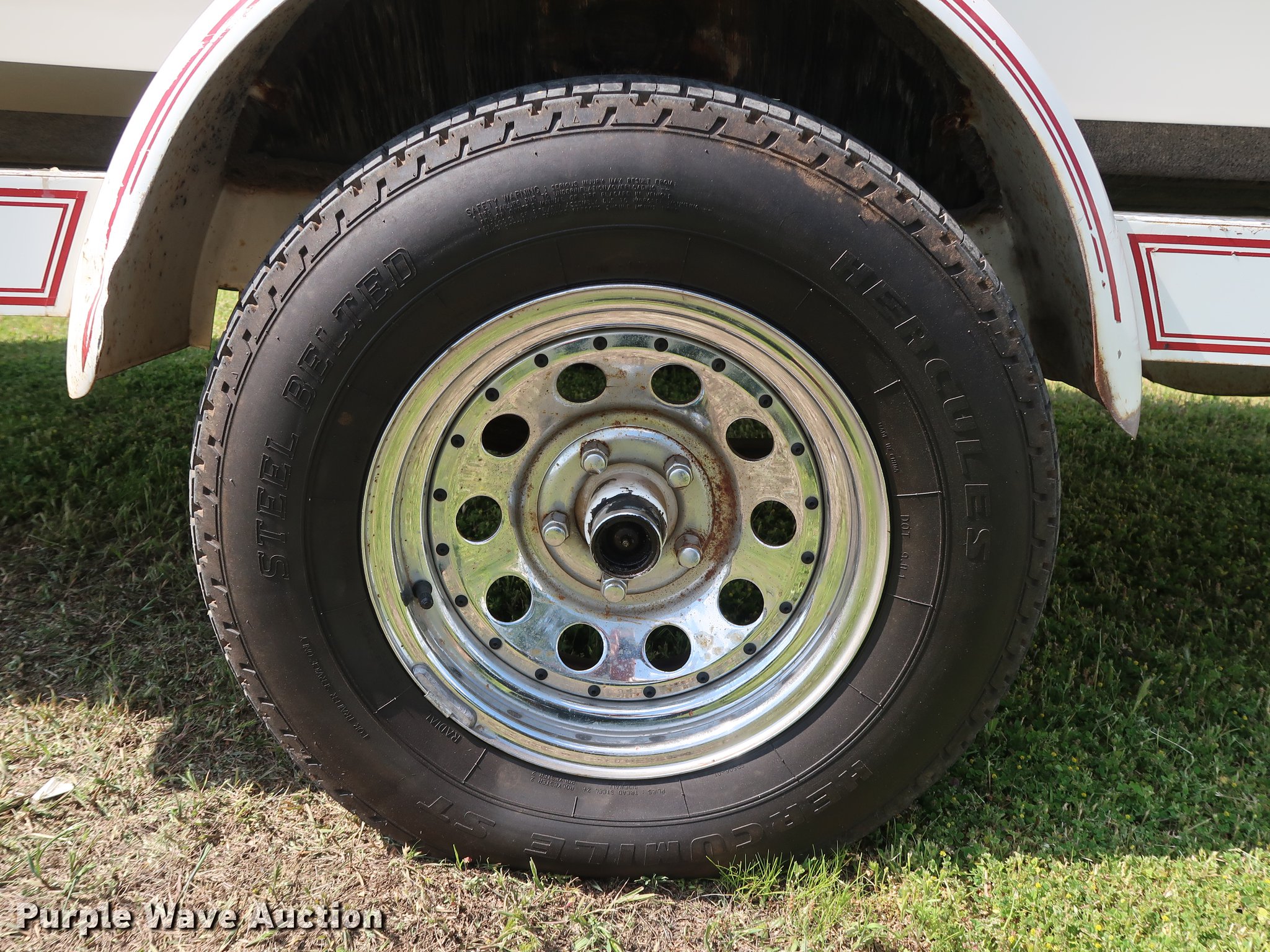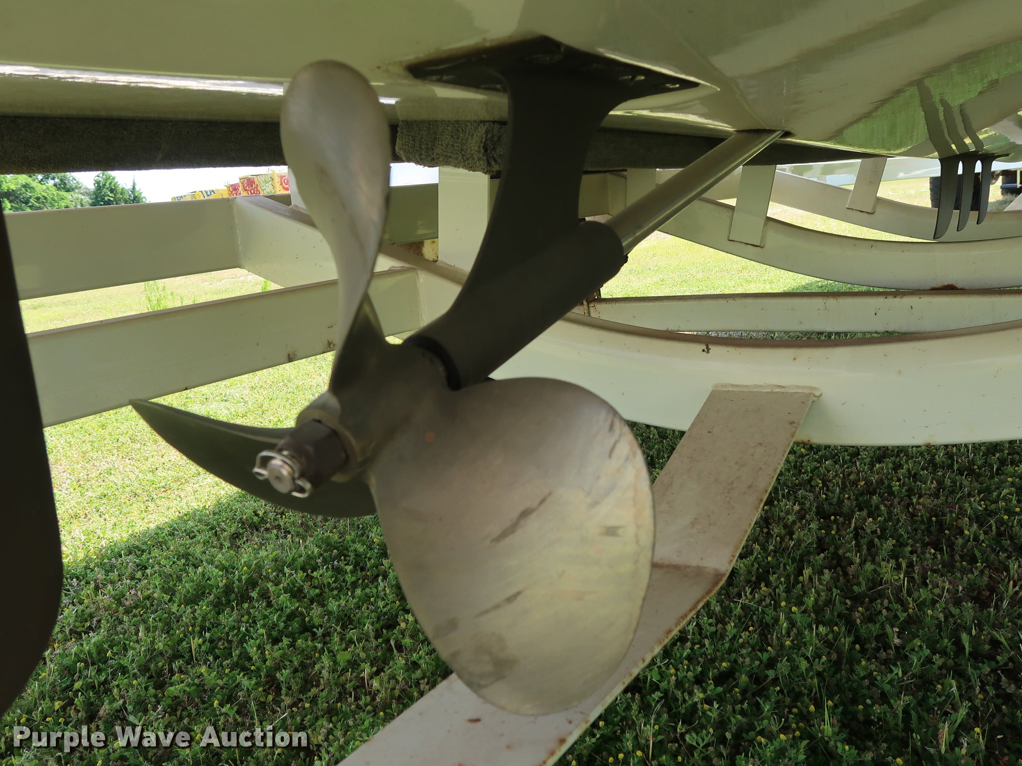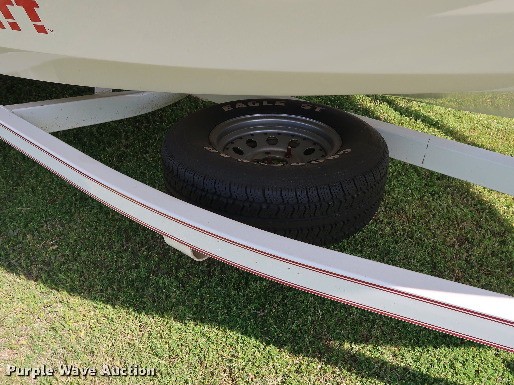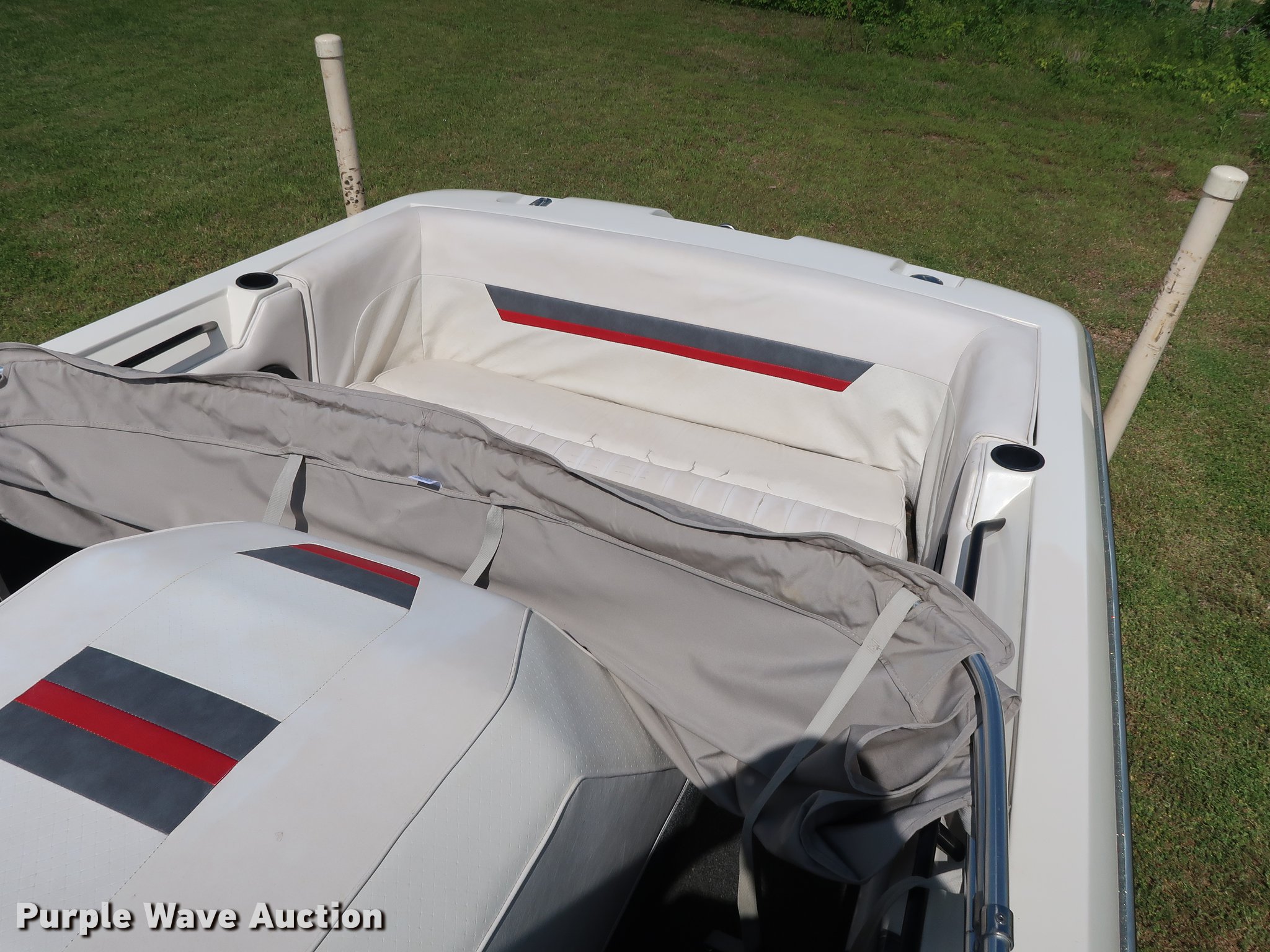 Purple Wave is selling a used Boat in Oklahoma. This item is a 1988 Mastercraft Platinum Prostar 190 20th Anniversary boat with the following: 349 hours on meter, Indmar 351 eight cylinder gas engine, 300 HP, Serial 1F-871962, 19'L, Eight person or 1,085 lbs capacity, Anchor, Sony 5.1 audio system, Sony Xplod AM/FM/CD, Bazooka tube subwoofer, Rear swim platform, Bimini top, Cover, Unit# 004 of 200 manufactured, Hull ID MBCPAAE5G788, Trailer, 21'L, 2" ball hitch, Jack stand, Winch, Single axle, Hercules ST205/75R14 tires