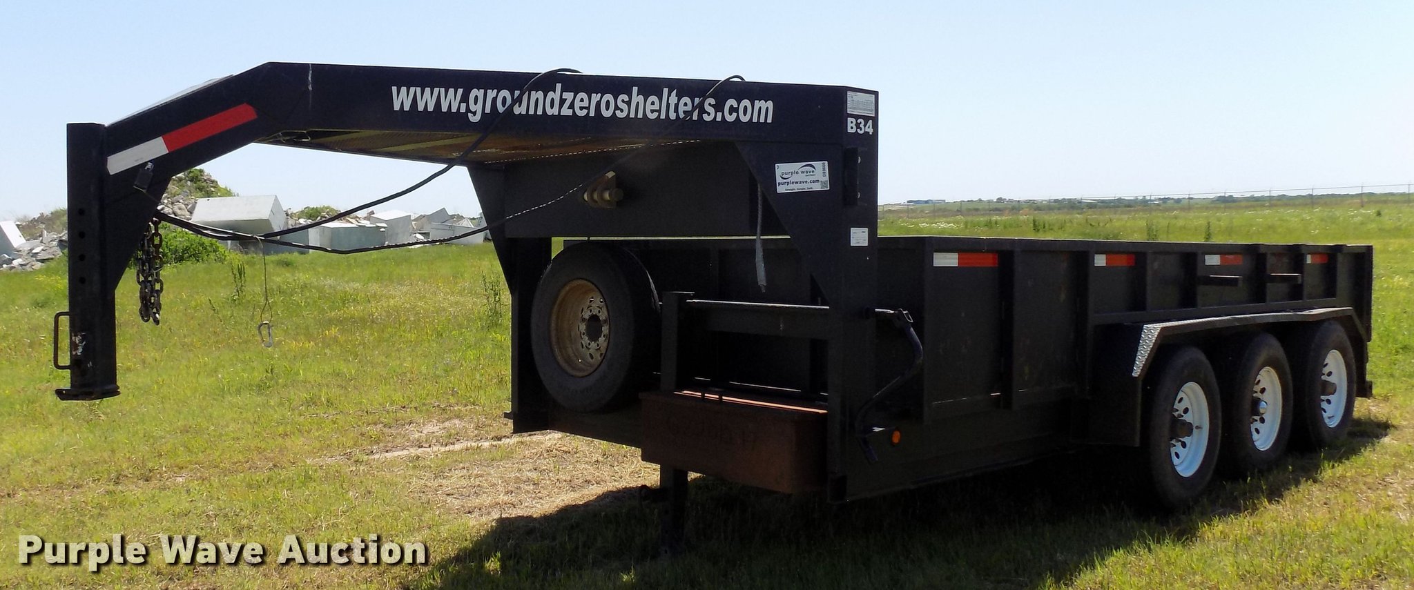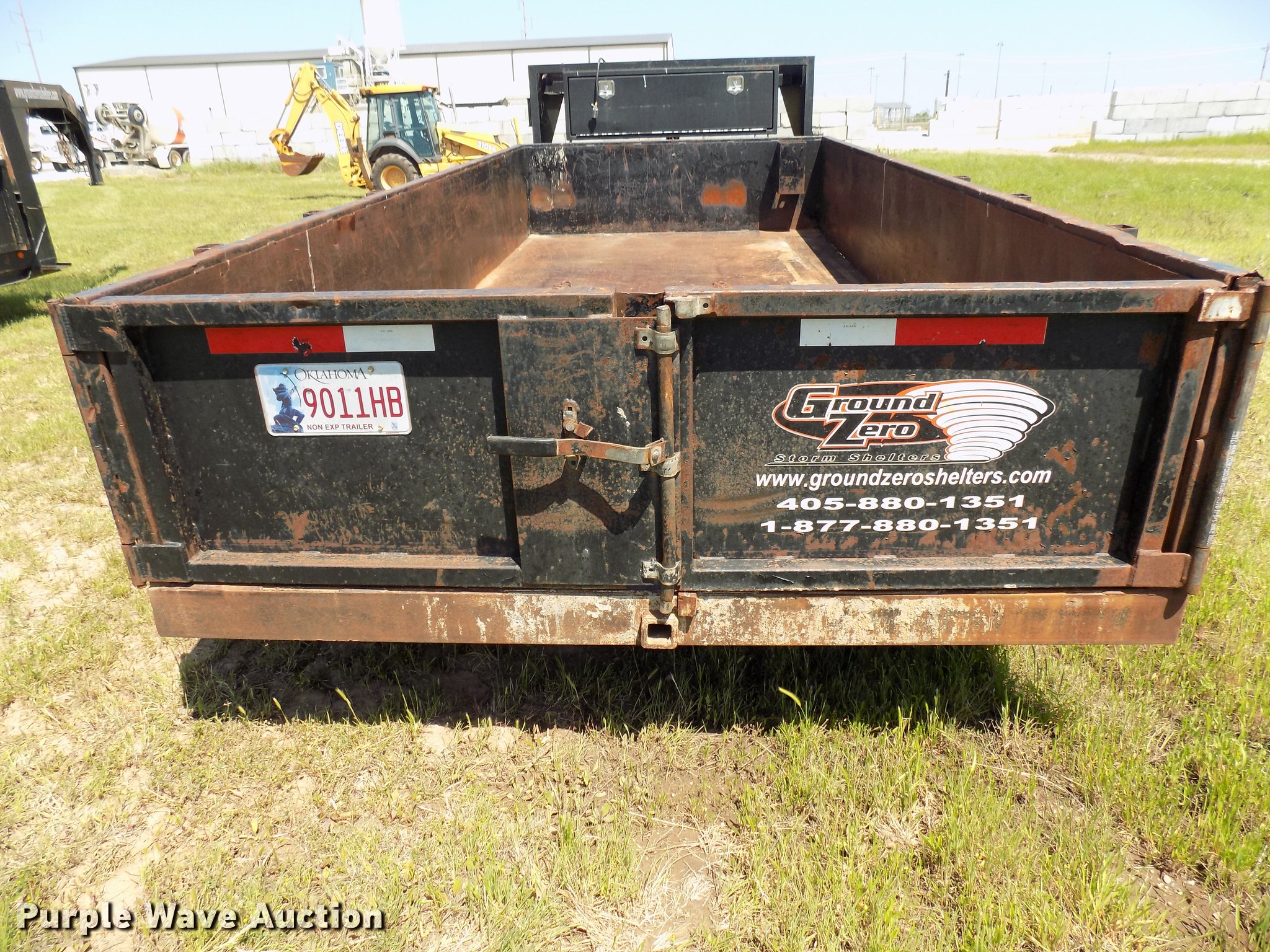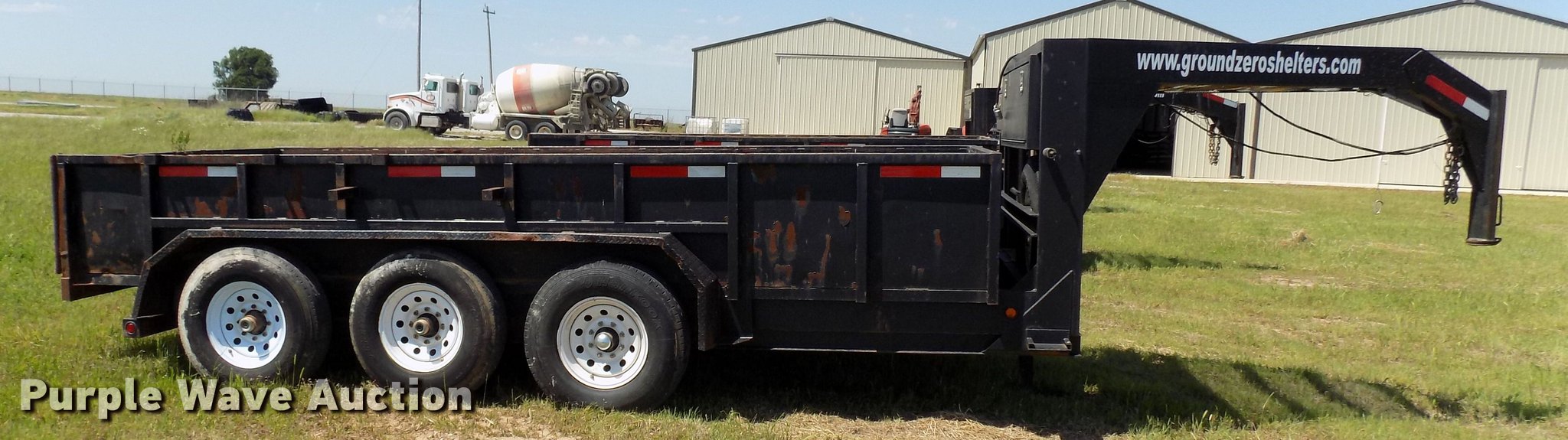 Purple Wave is selling a used End Dump Rock Trailer in Oklahoma. This item is a 2012 Ground Zero end dump trailer with the following: 25' overall length, 16'L x 86"W steel dump bed, 24" side height, 24" side board height, 24" floor height, Single cylinder hoist, Manual operated end gate, Single leg landing gear, Spring suspension, Electric brakes, Triple axle, Steel wheels, 7.50R16 tires, GVWR 16,300 lbs