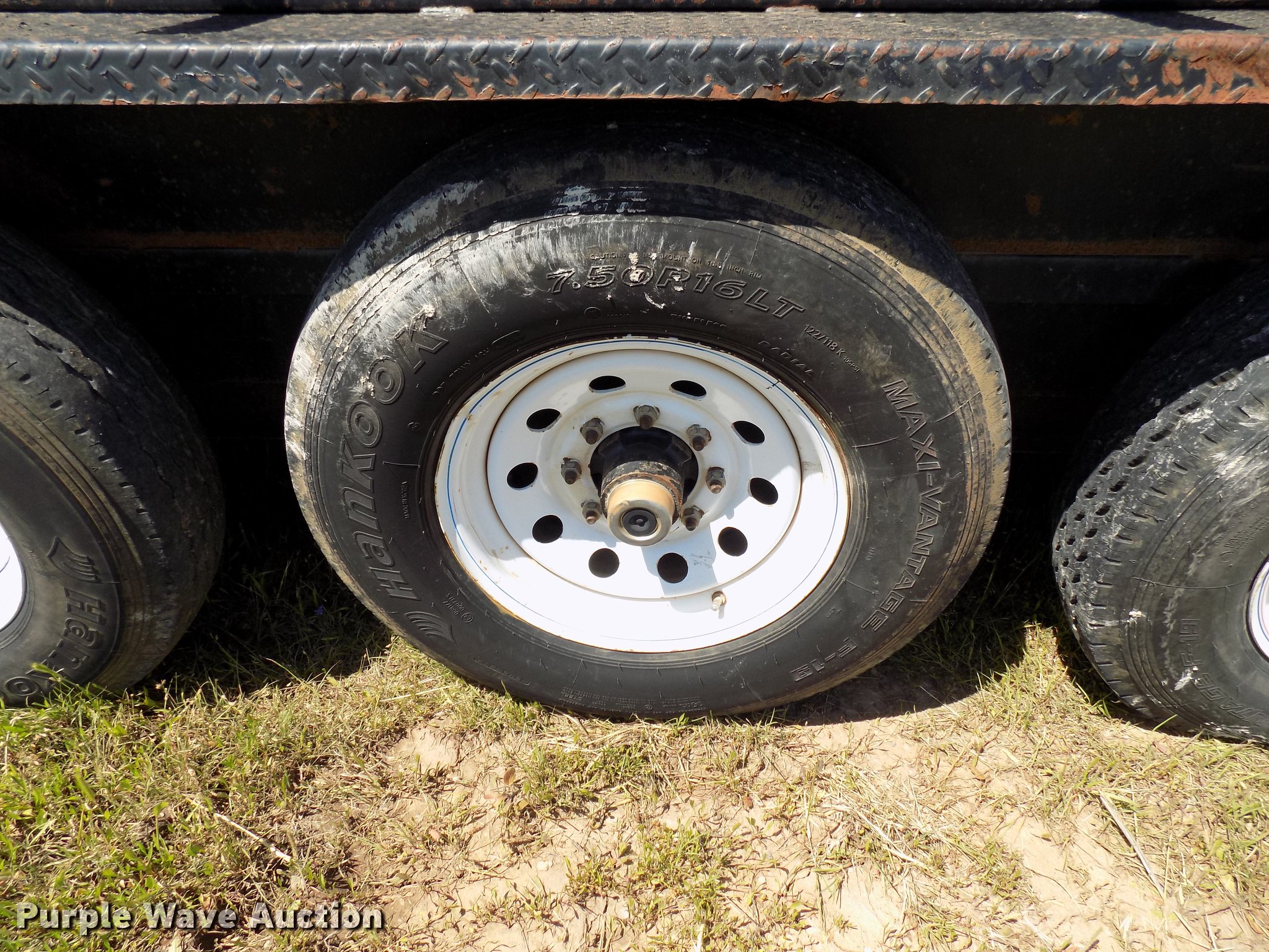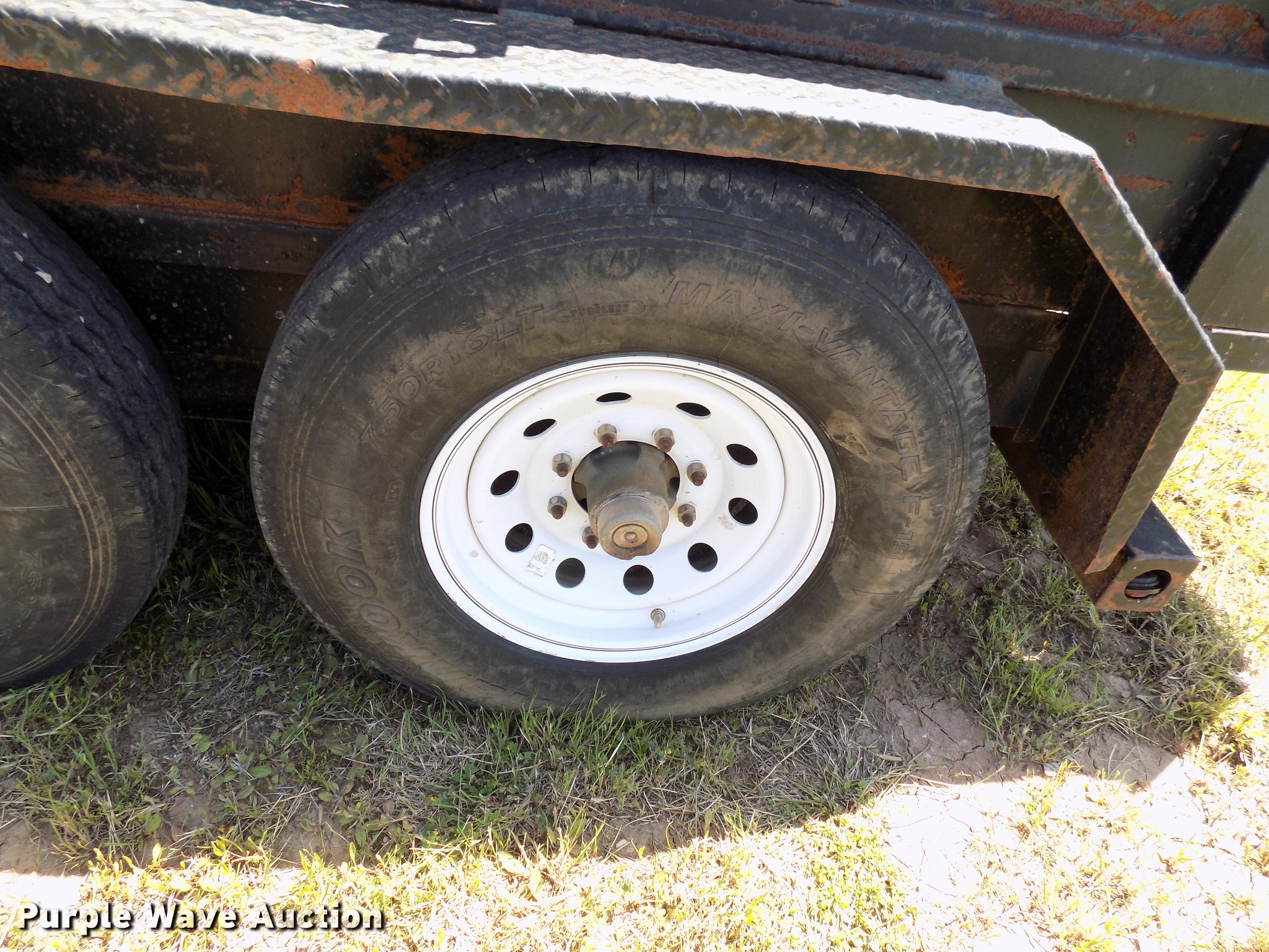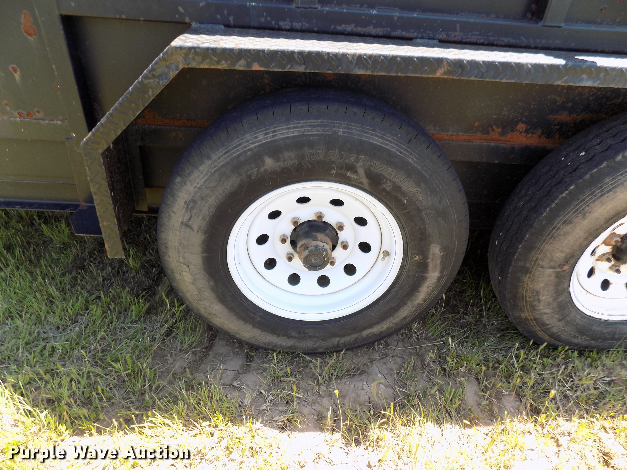 Purple Wave is selling a used End Dump Rock Trailer in Oklahoma. This item is a 2012 Ground Zero end dump trailer with the following: 25' overall length, 16'L x 86"W steel dump bed, 24" side height, 24" side board height, 24" floor height, Single cylinder hoist, Manual operated end gate, Single leg landing gear, Spring suspension, Electric brakes, Triple axle, Steel wheels, 7.50R16 tires, GVWR 16,300 lbs